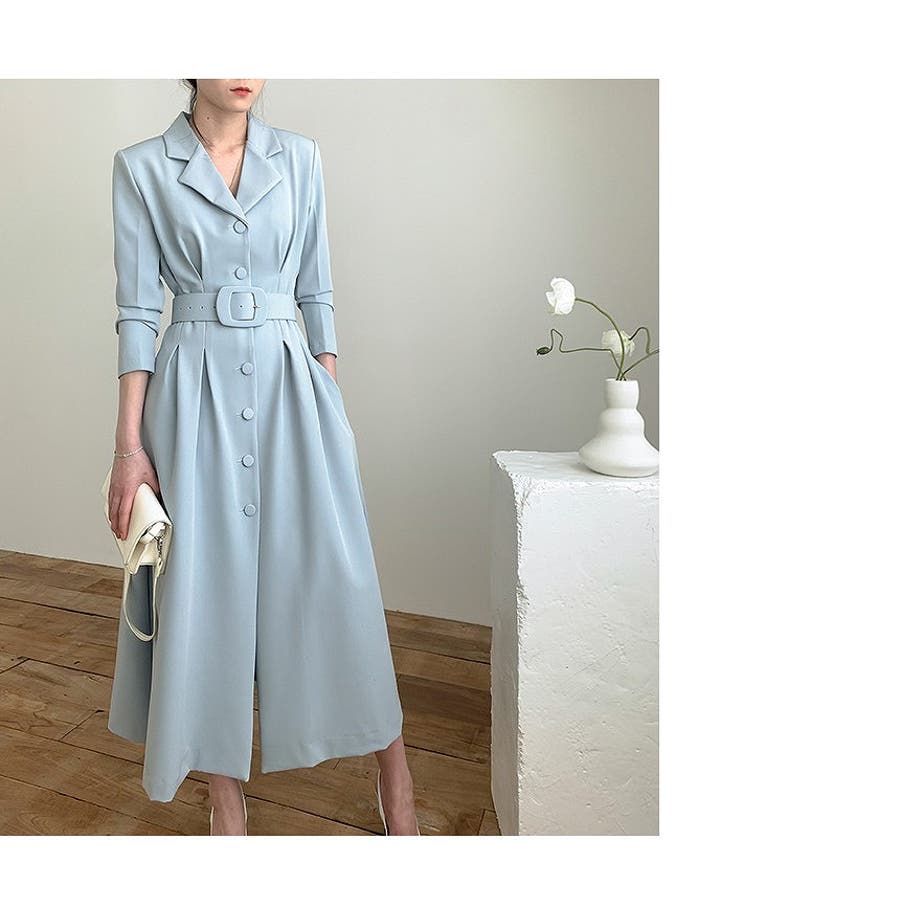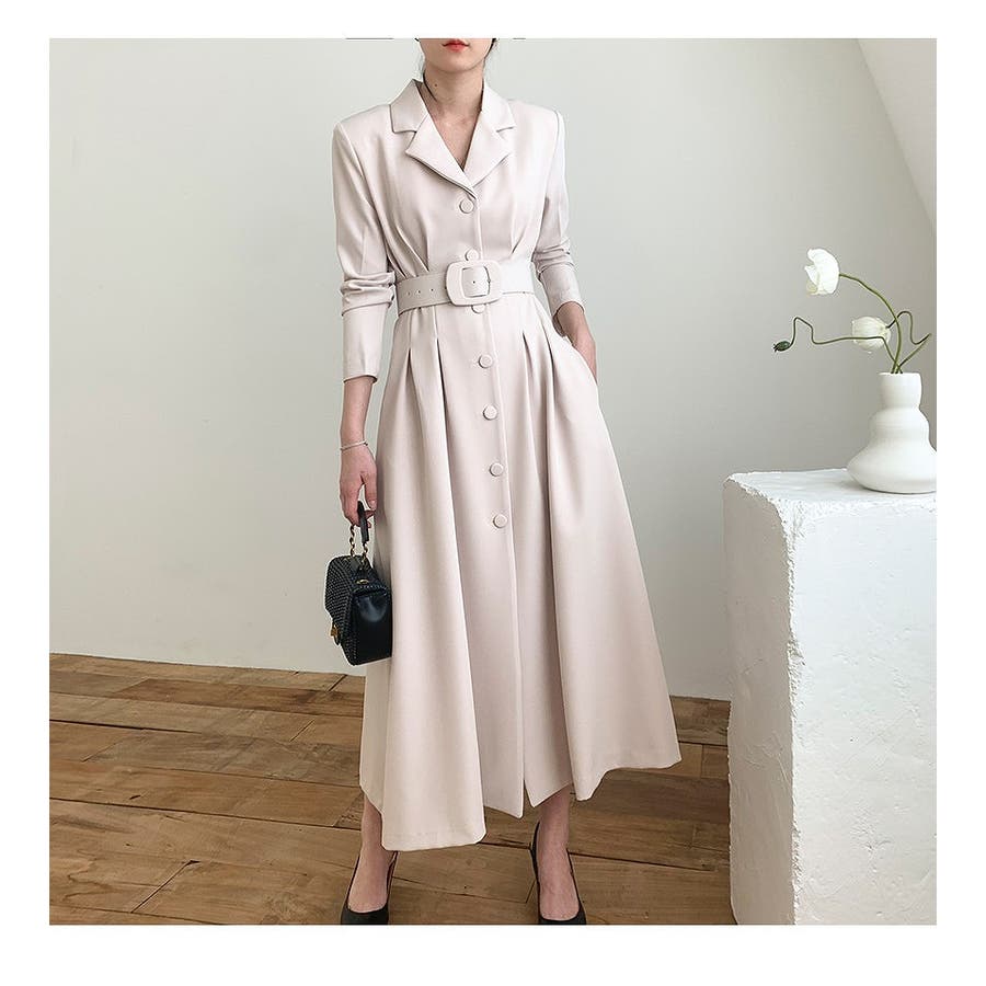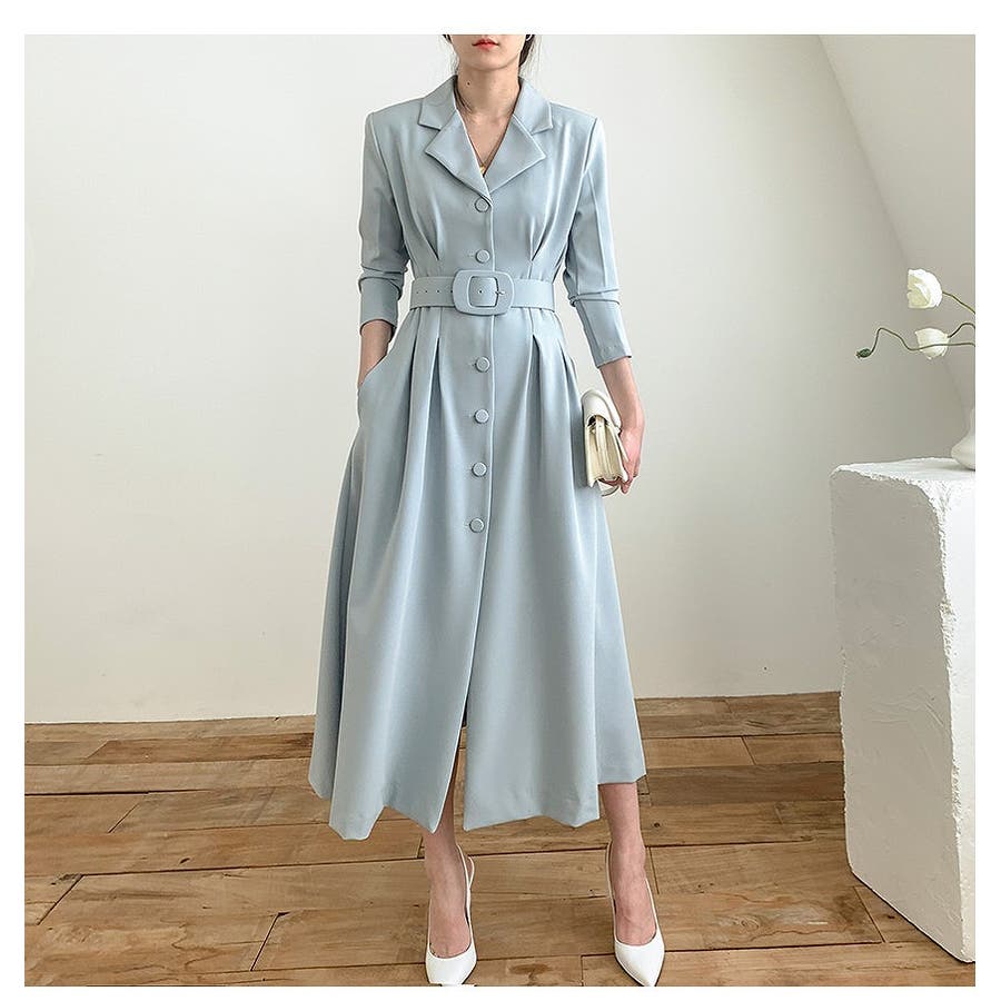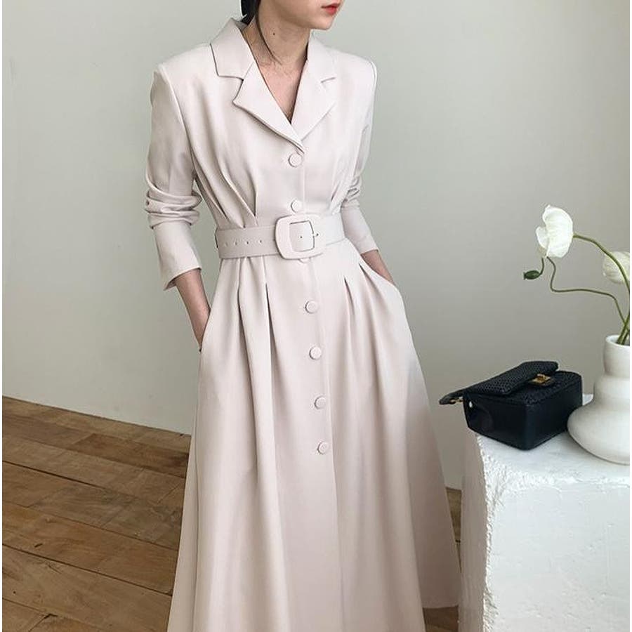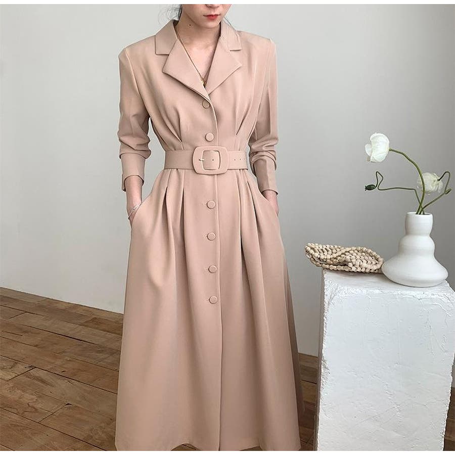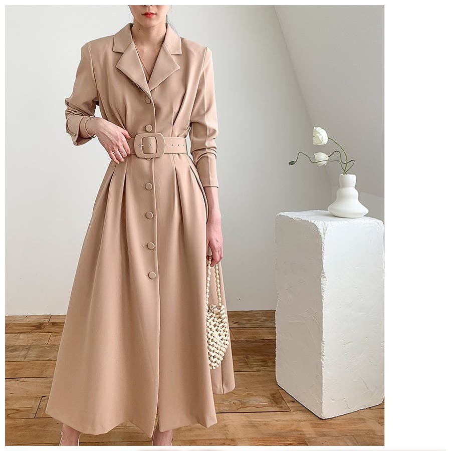 ロング襟付きシングルブレストワンピース