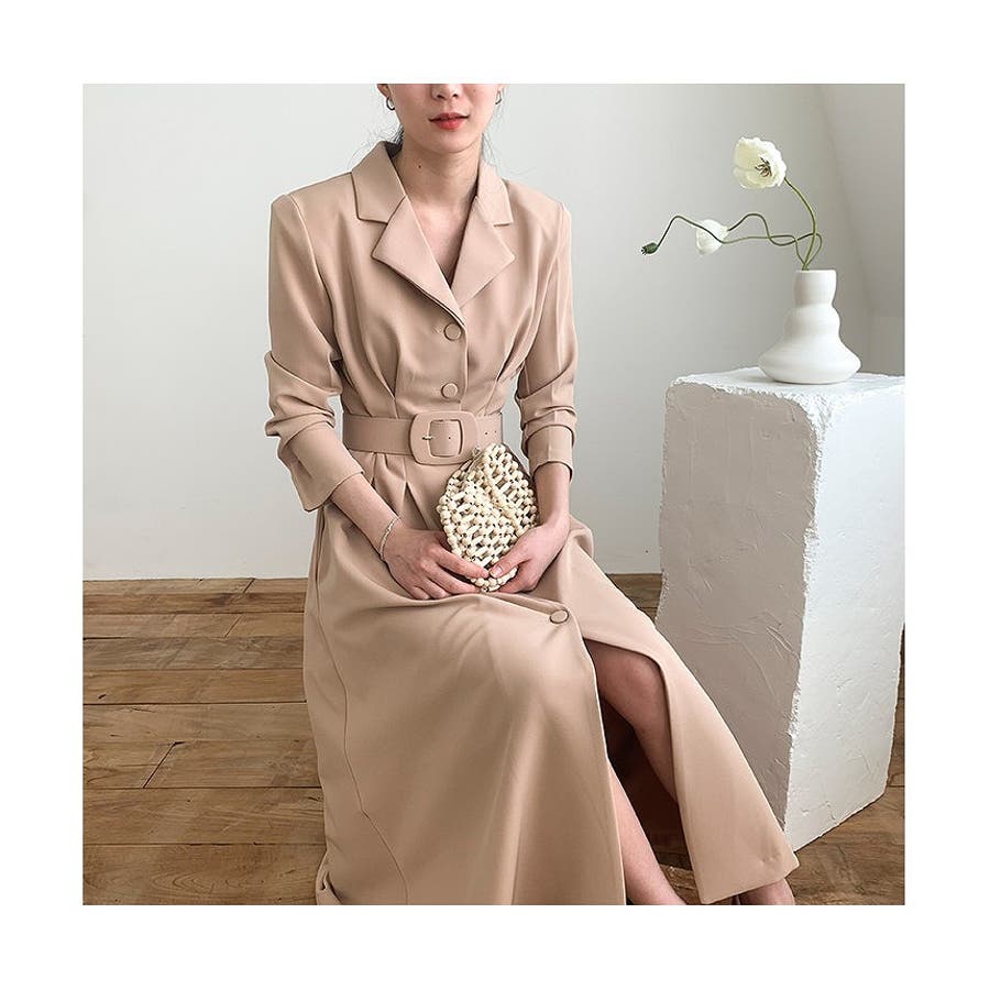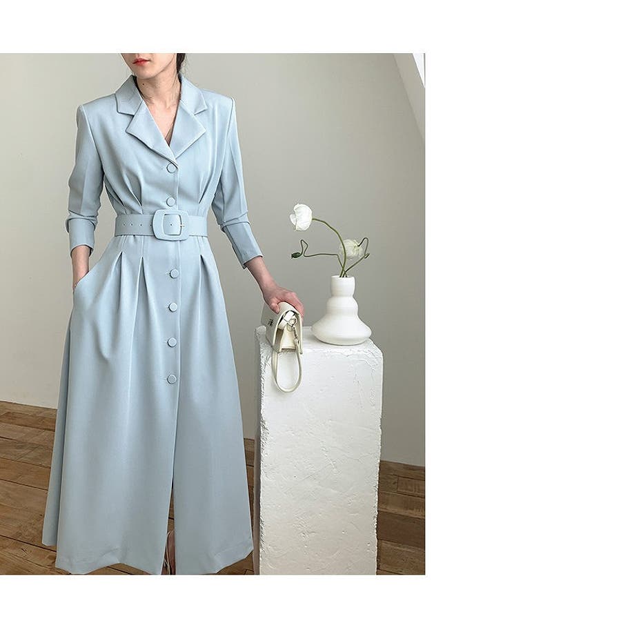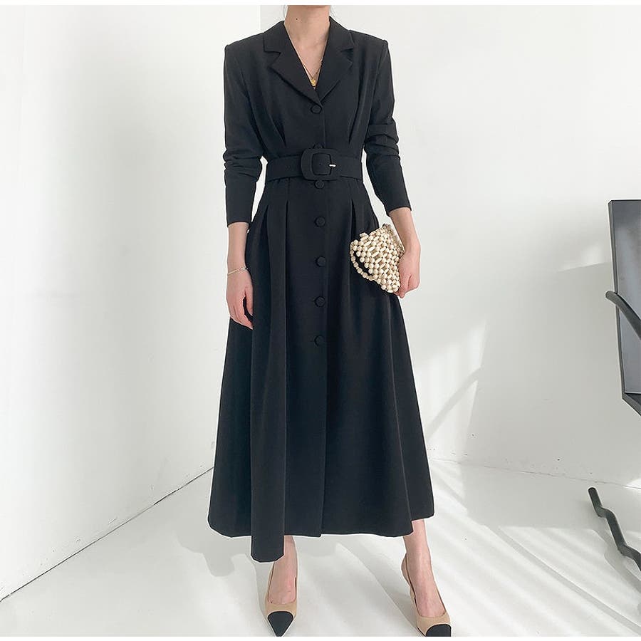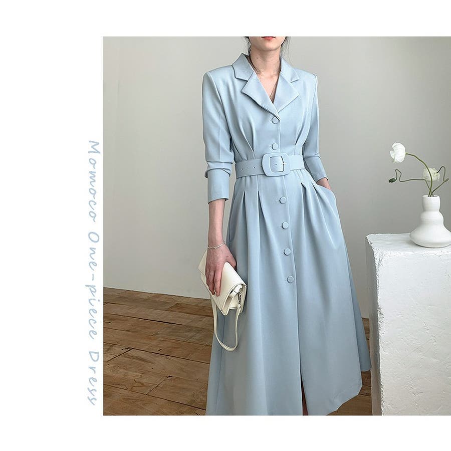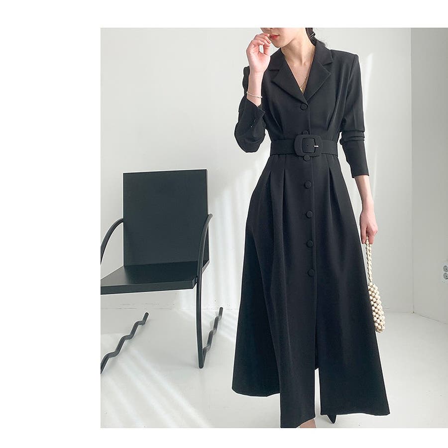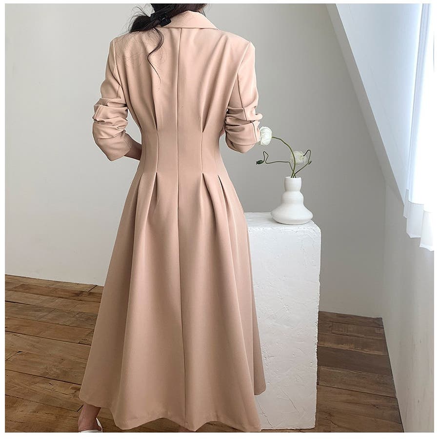 ロング襟付きシングルブレストワンピース