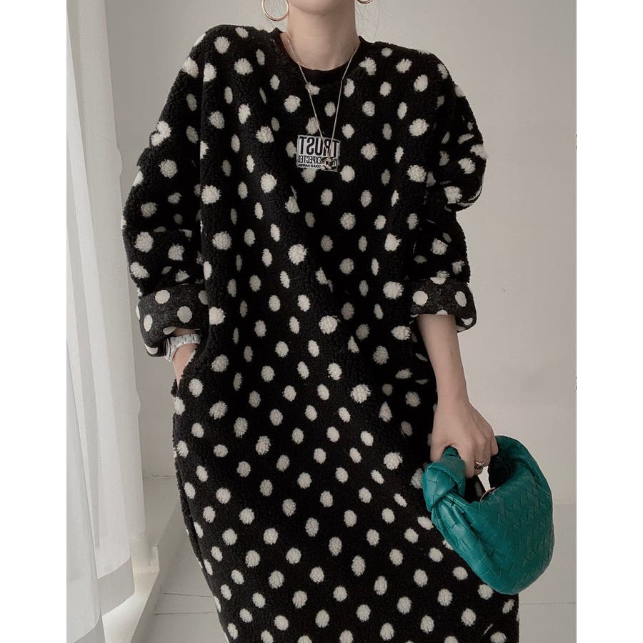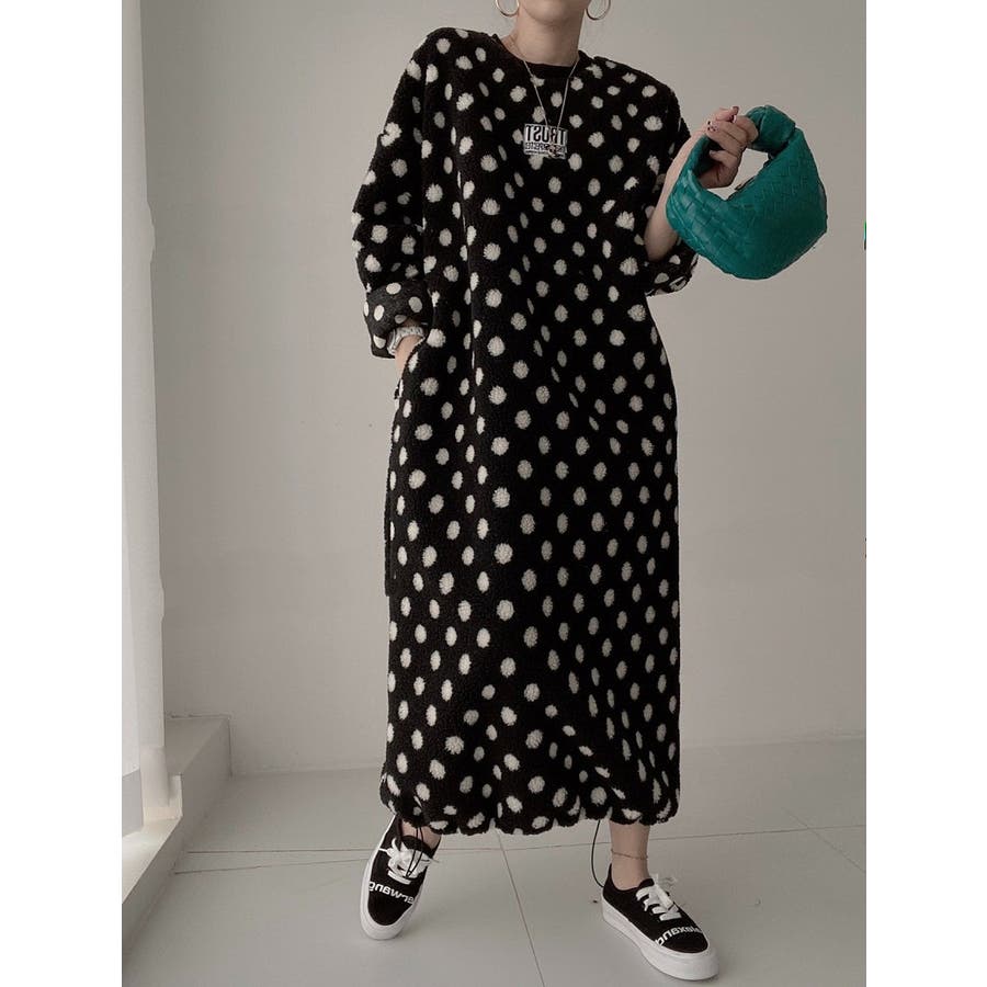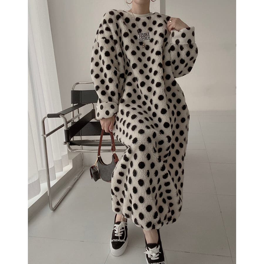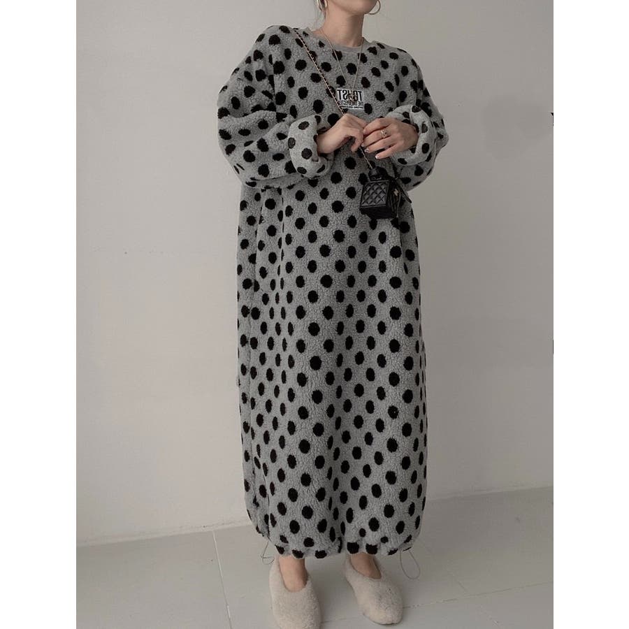 ドット柄ボアワンピース