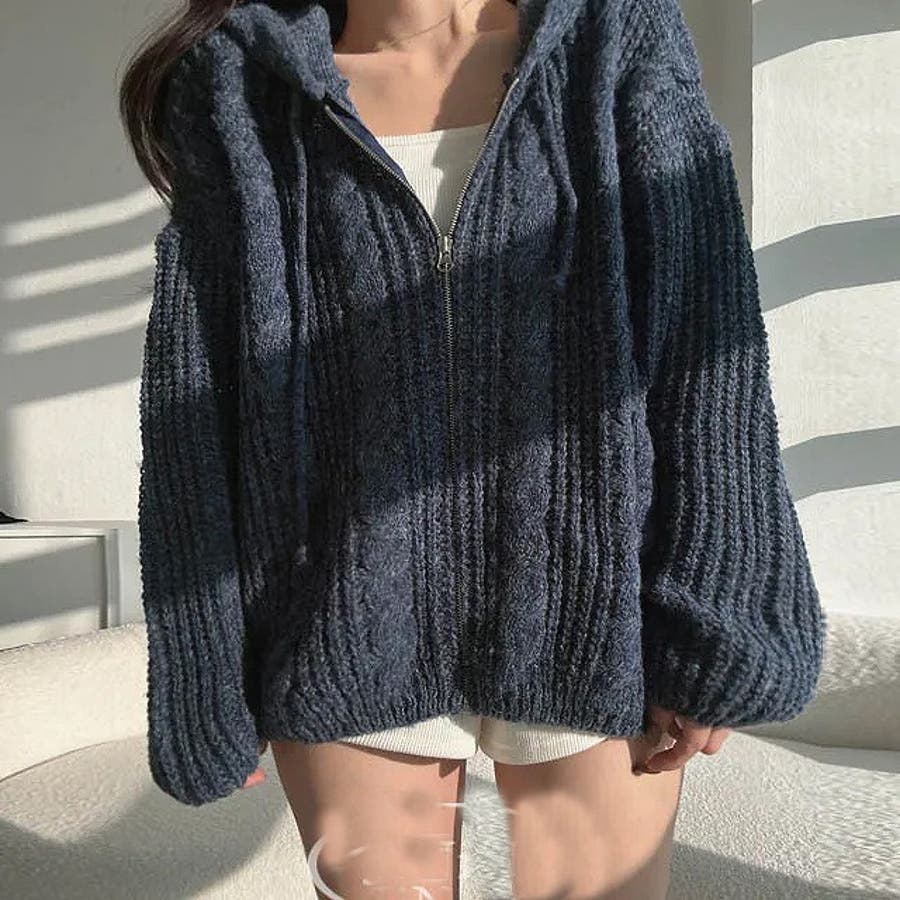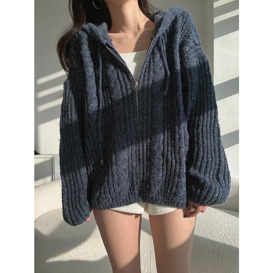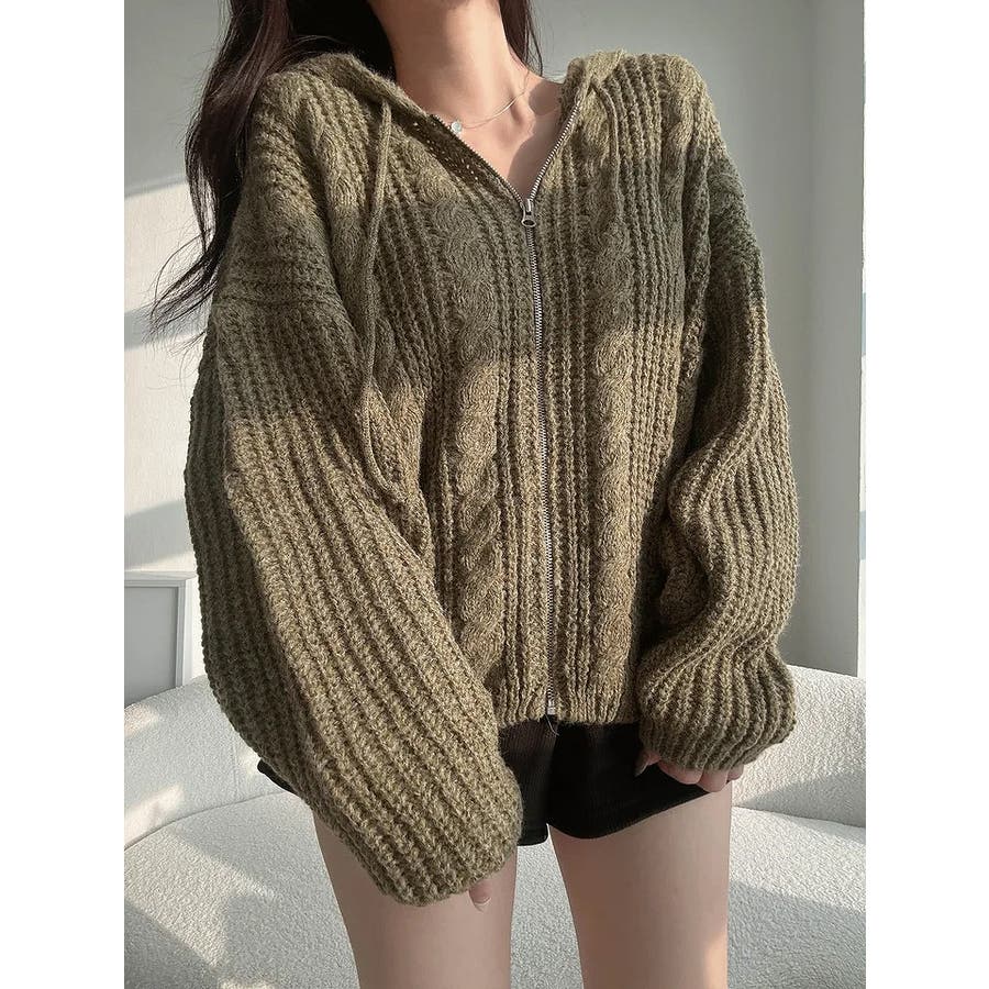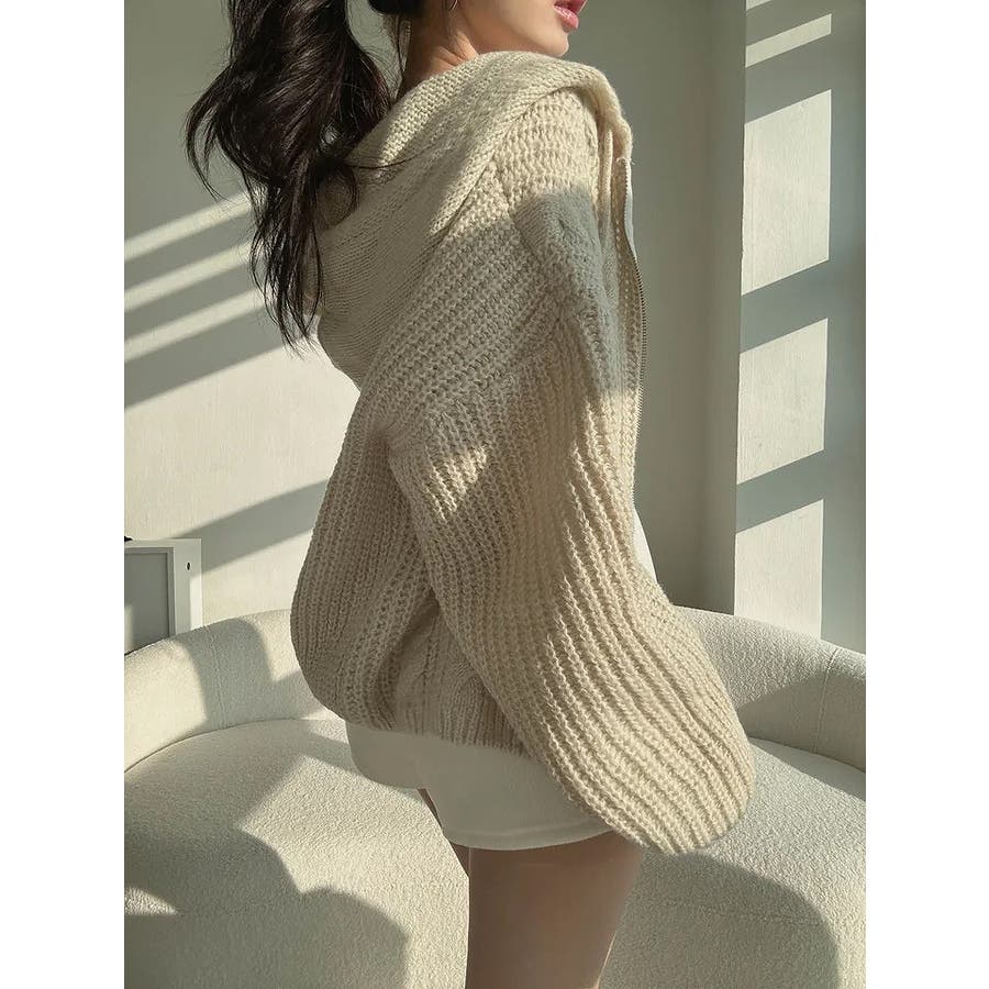 フード付きジップ付きセータージャケット