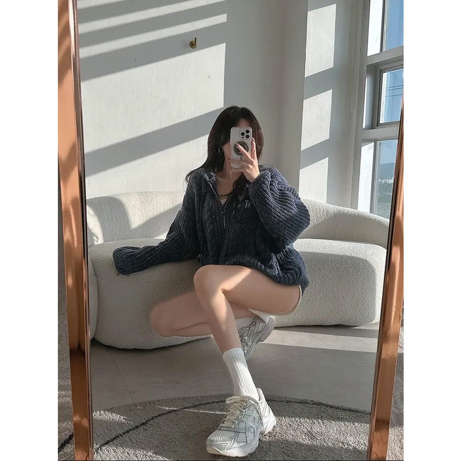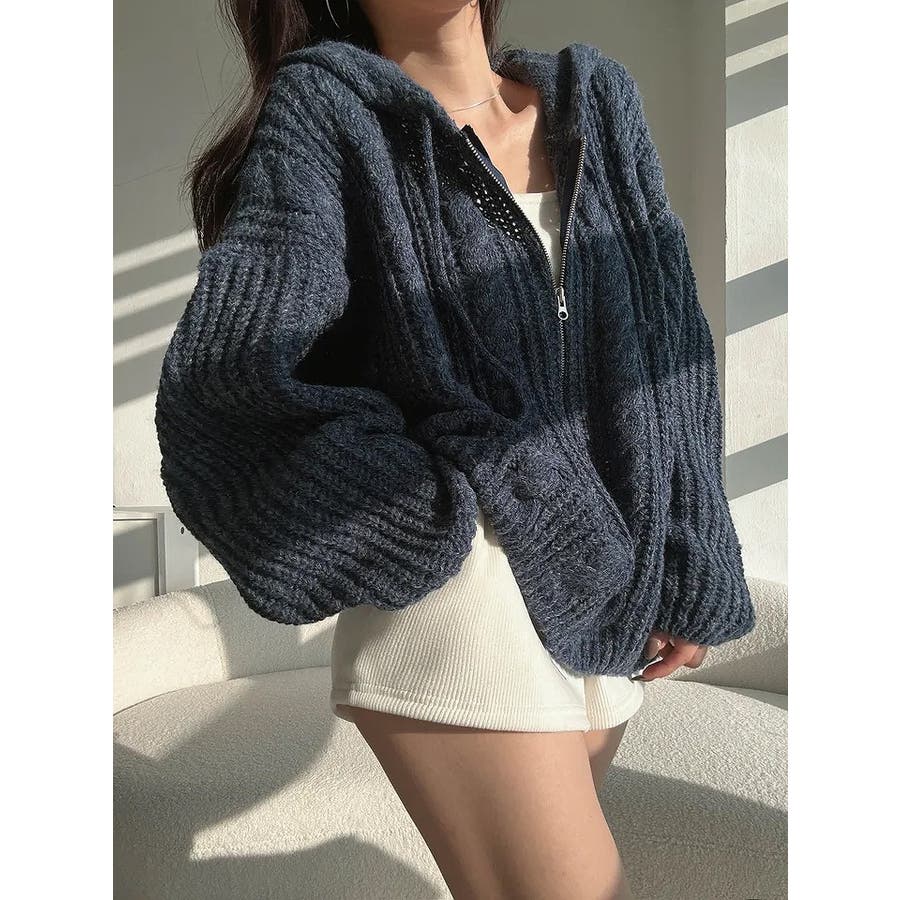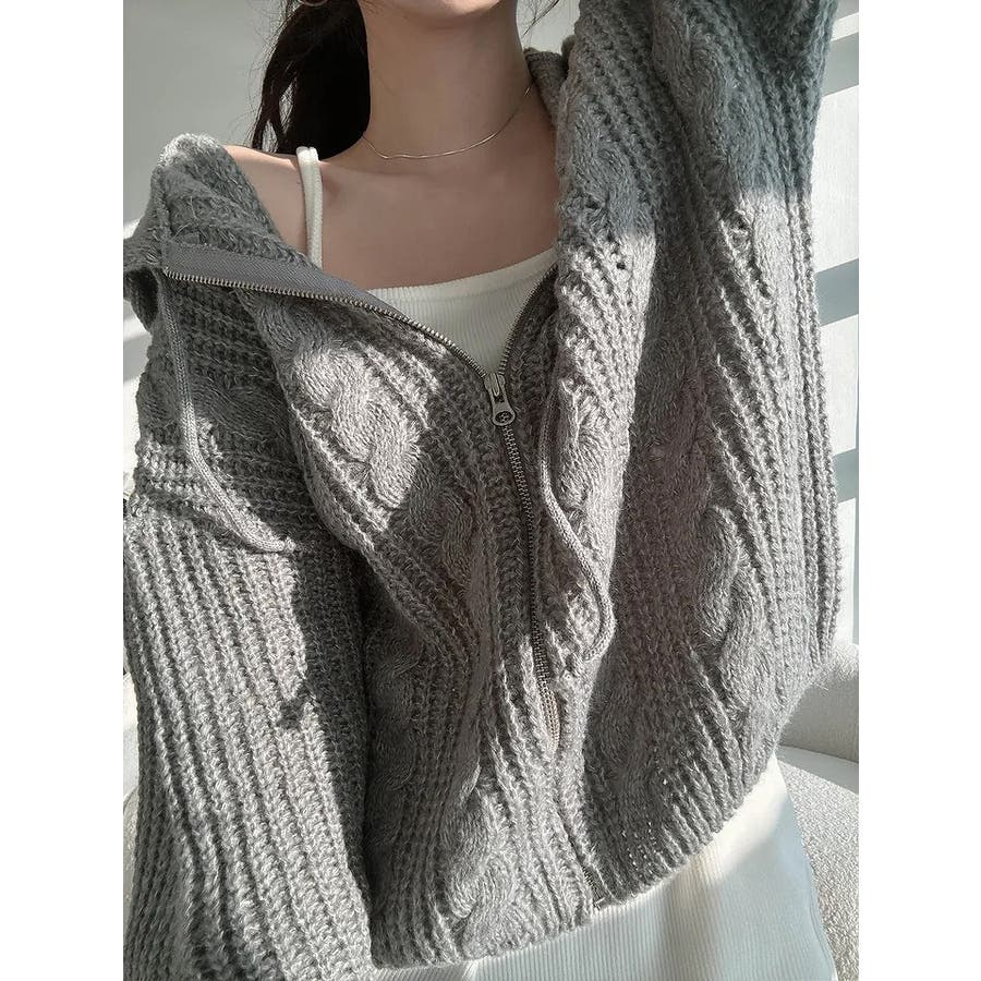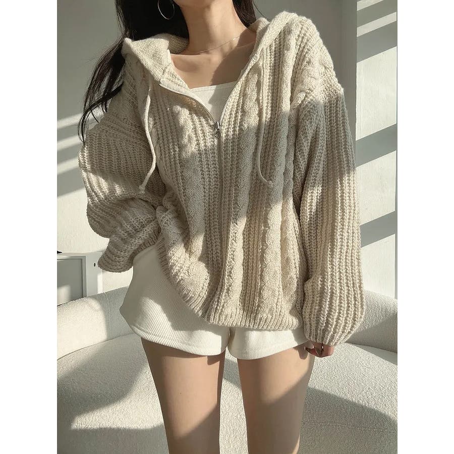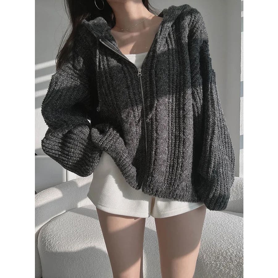 フード付きジップ付きセータージャケット