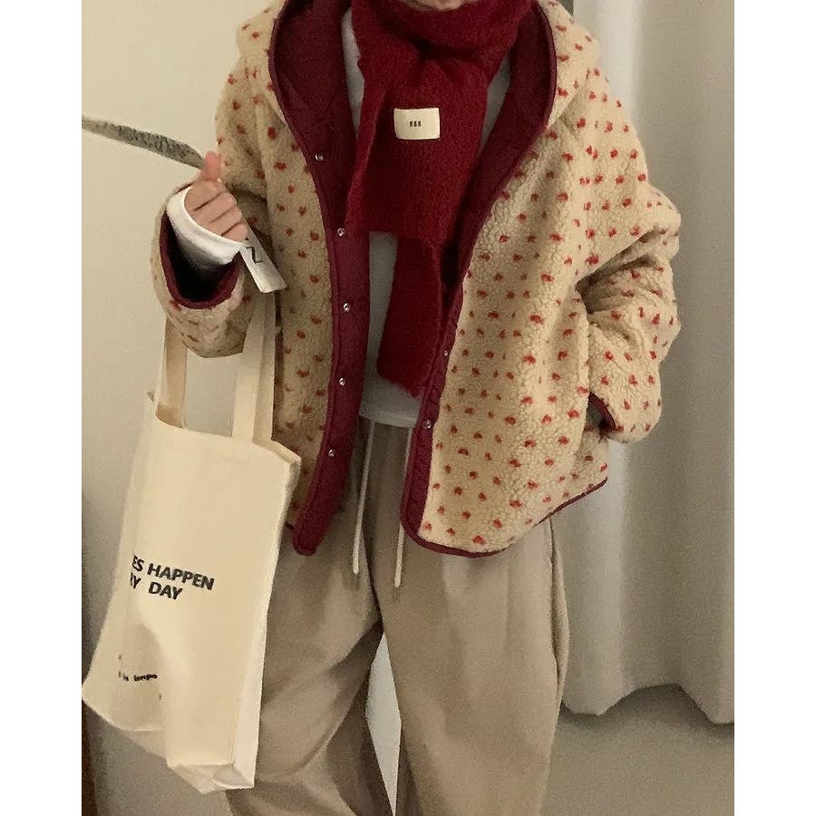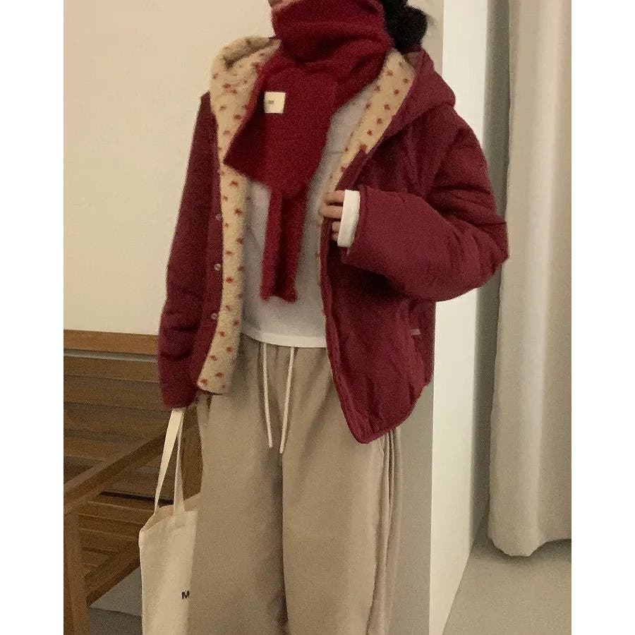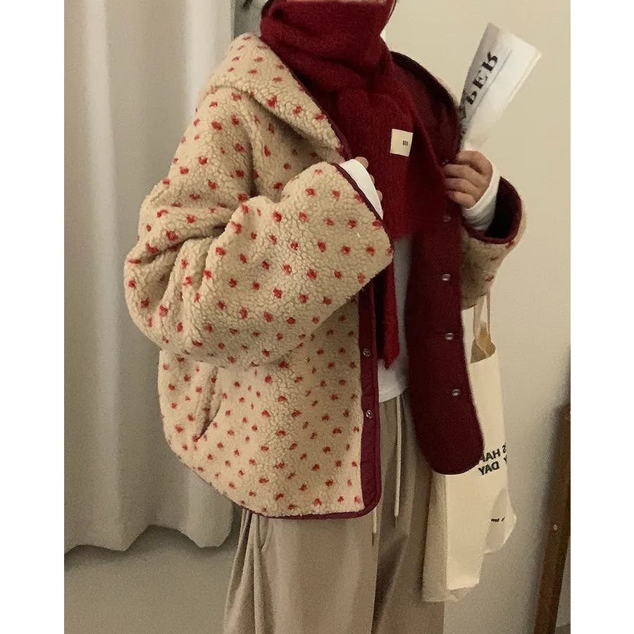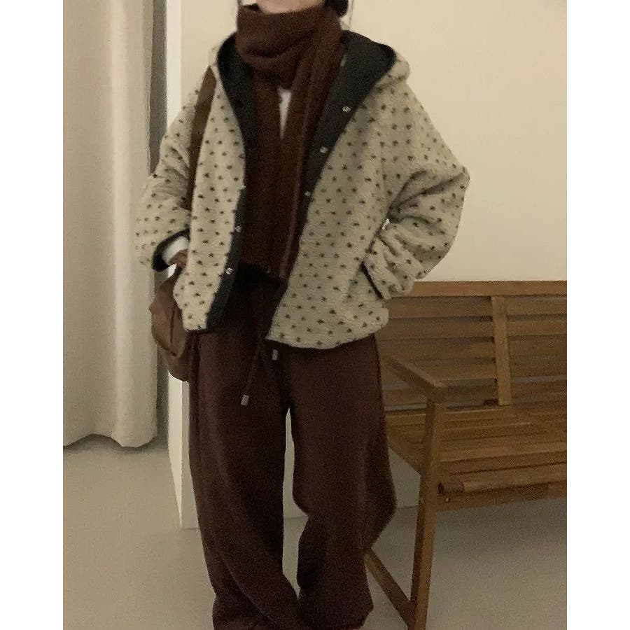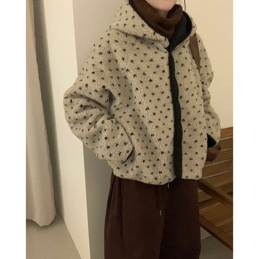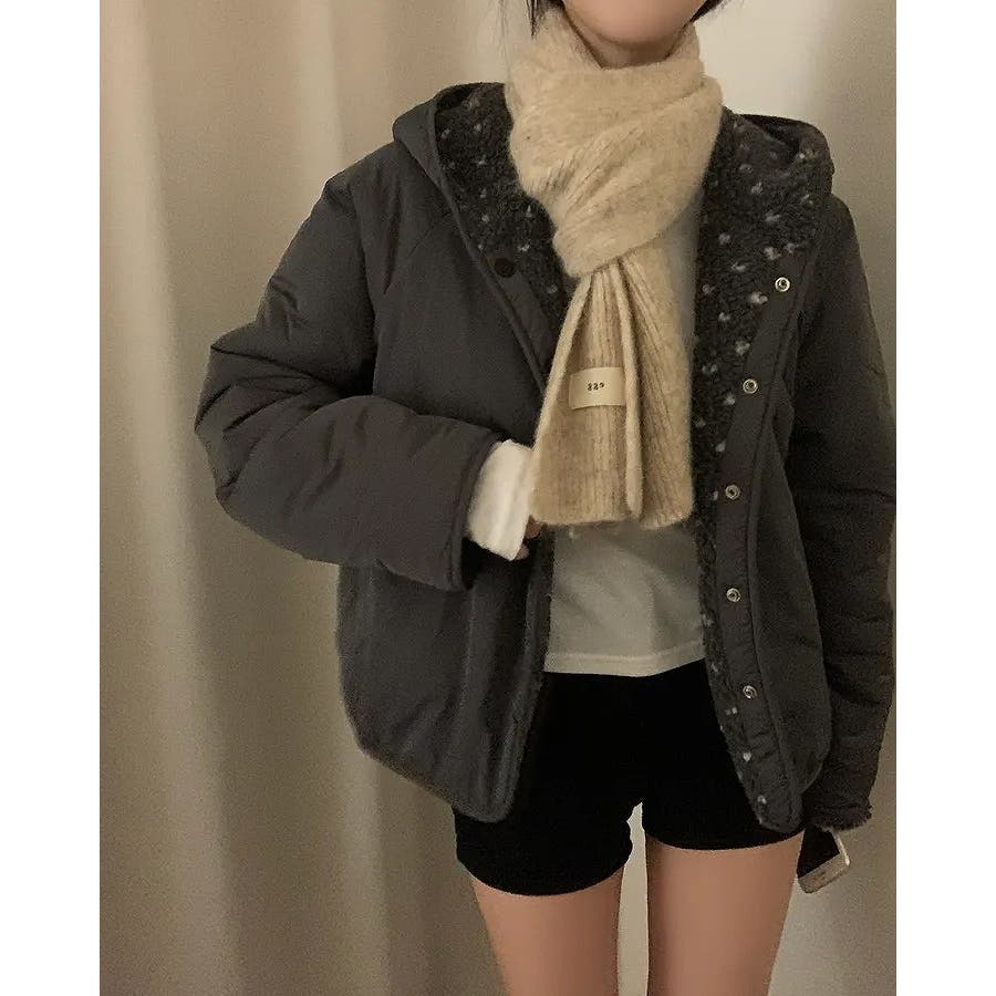 フード付きリバーシブルボアジャケット