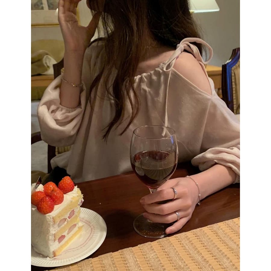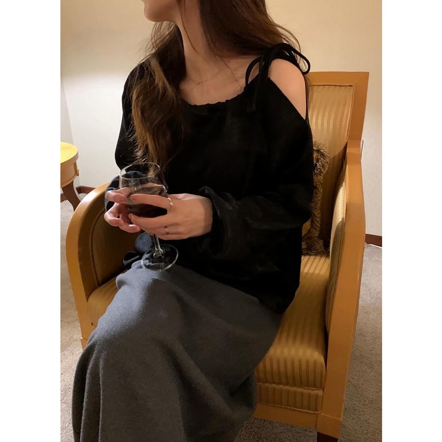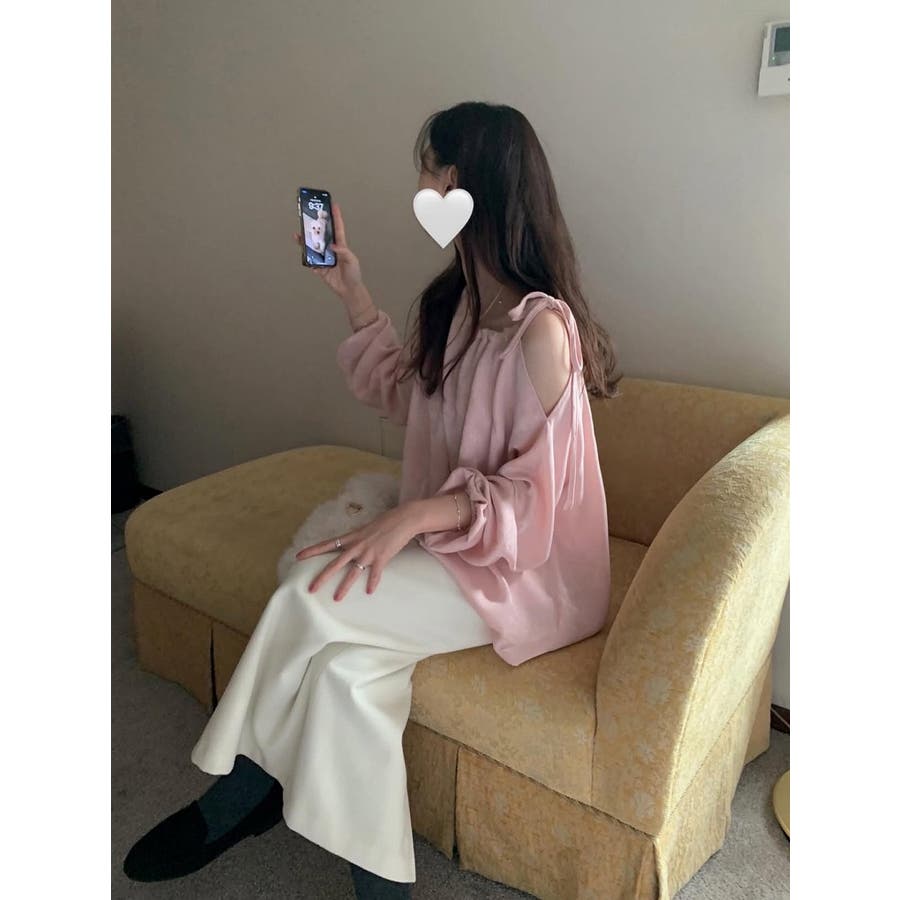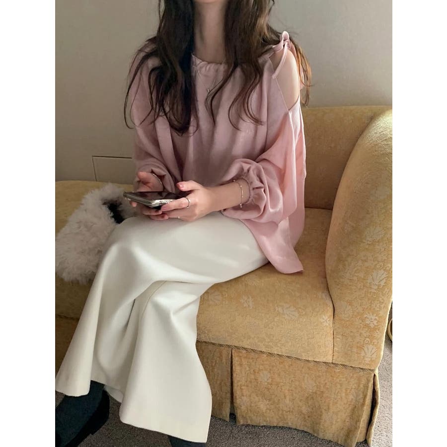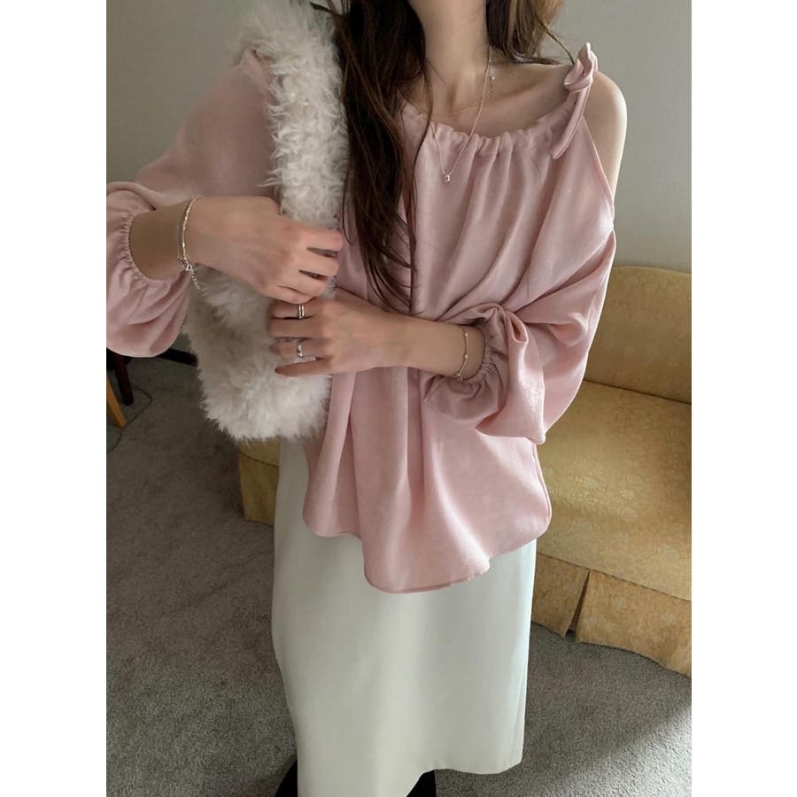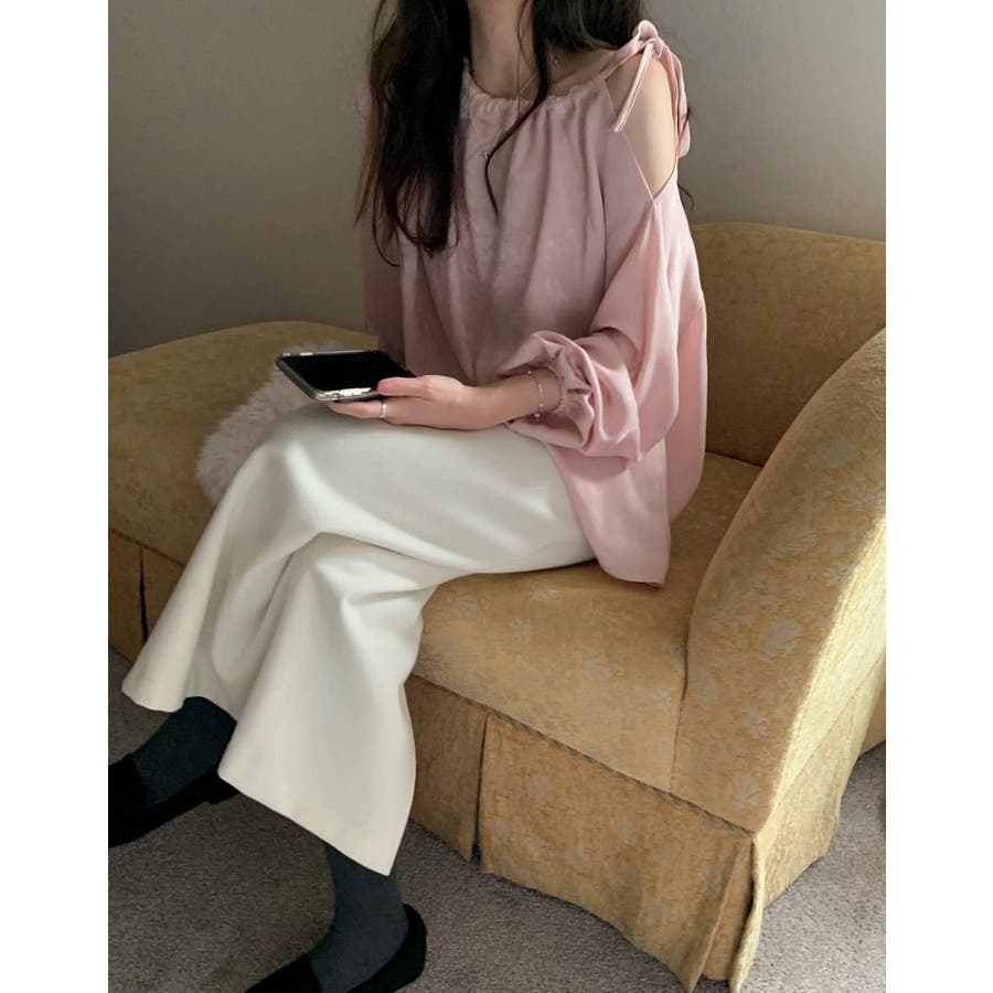リボンオフショルダートップス