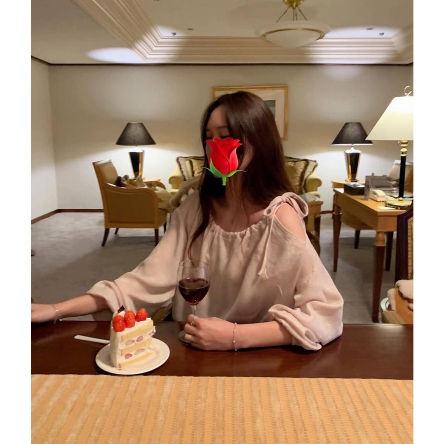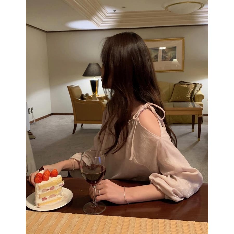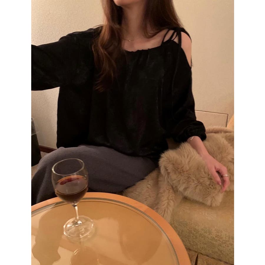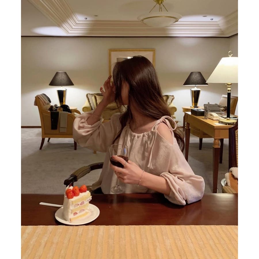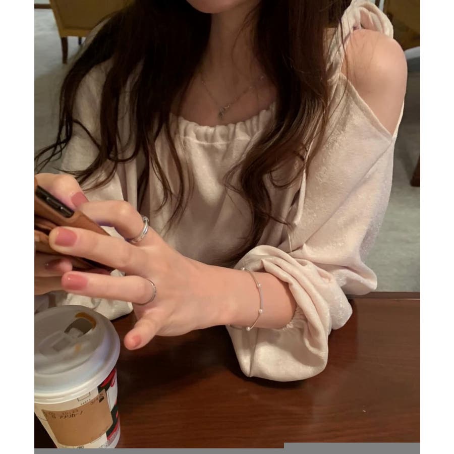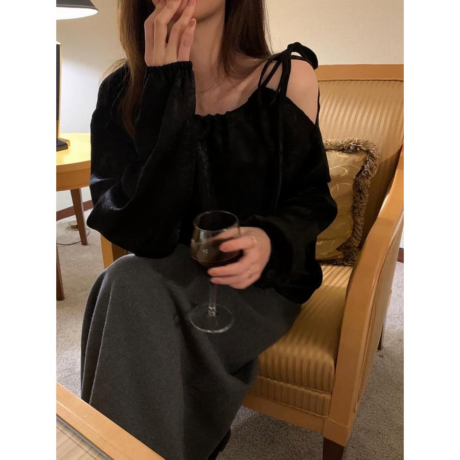 リボンオフショルダートップス