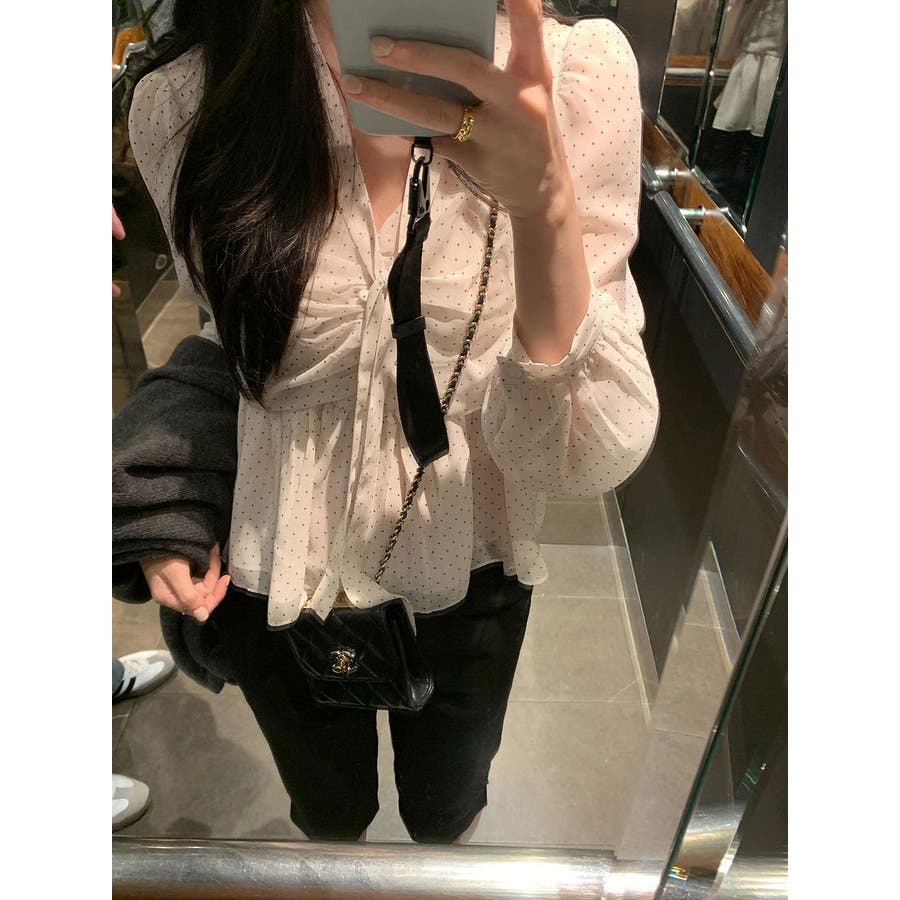 リボンドット柄シャツ