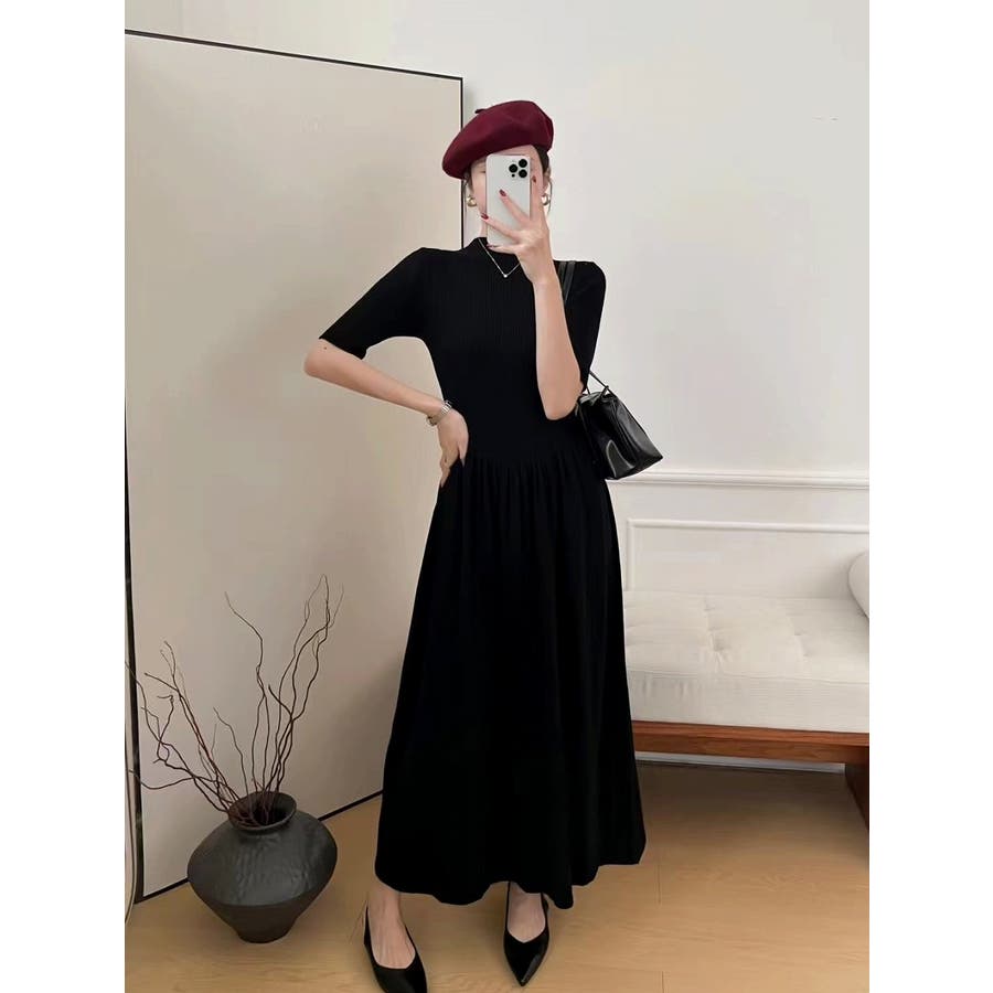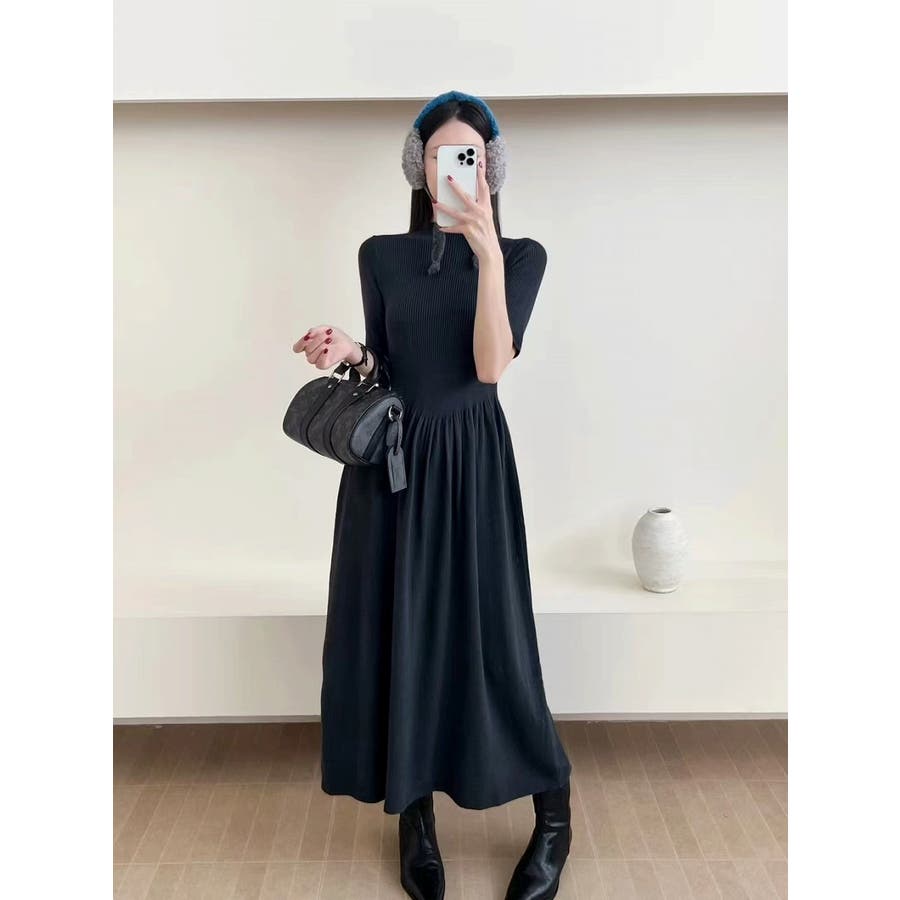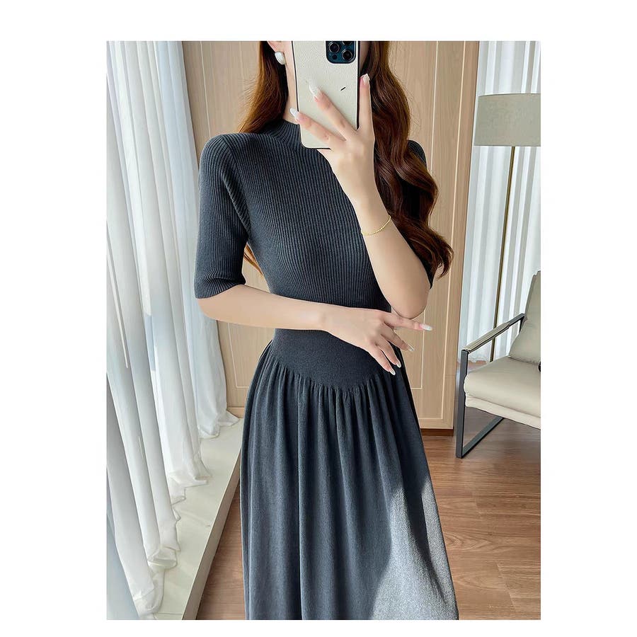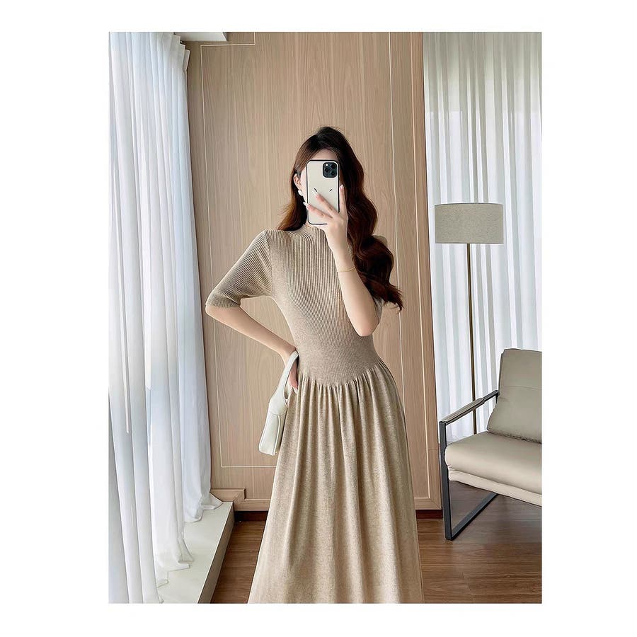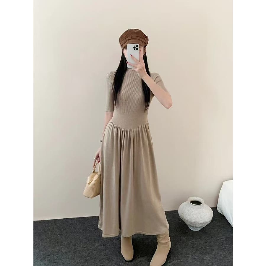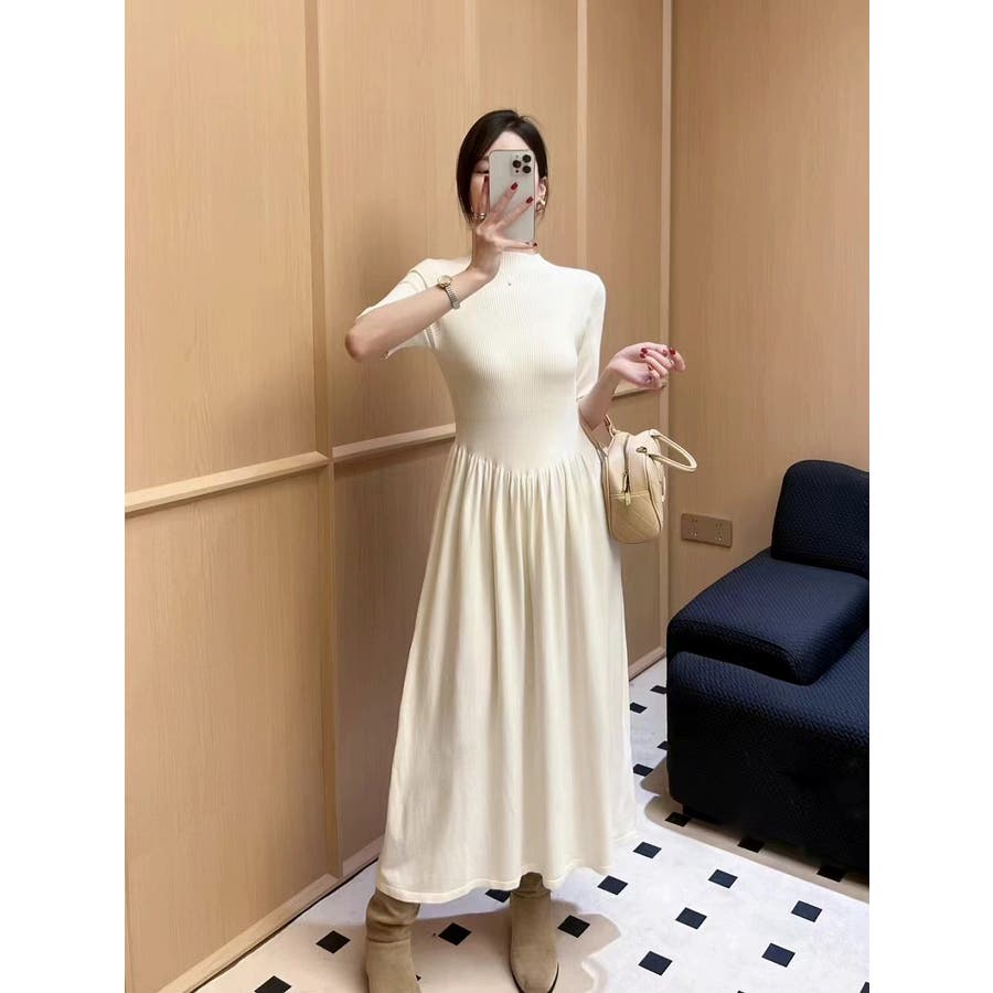 ニットハーフネックワンピース