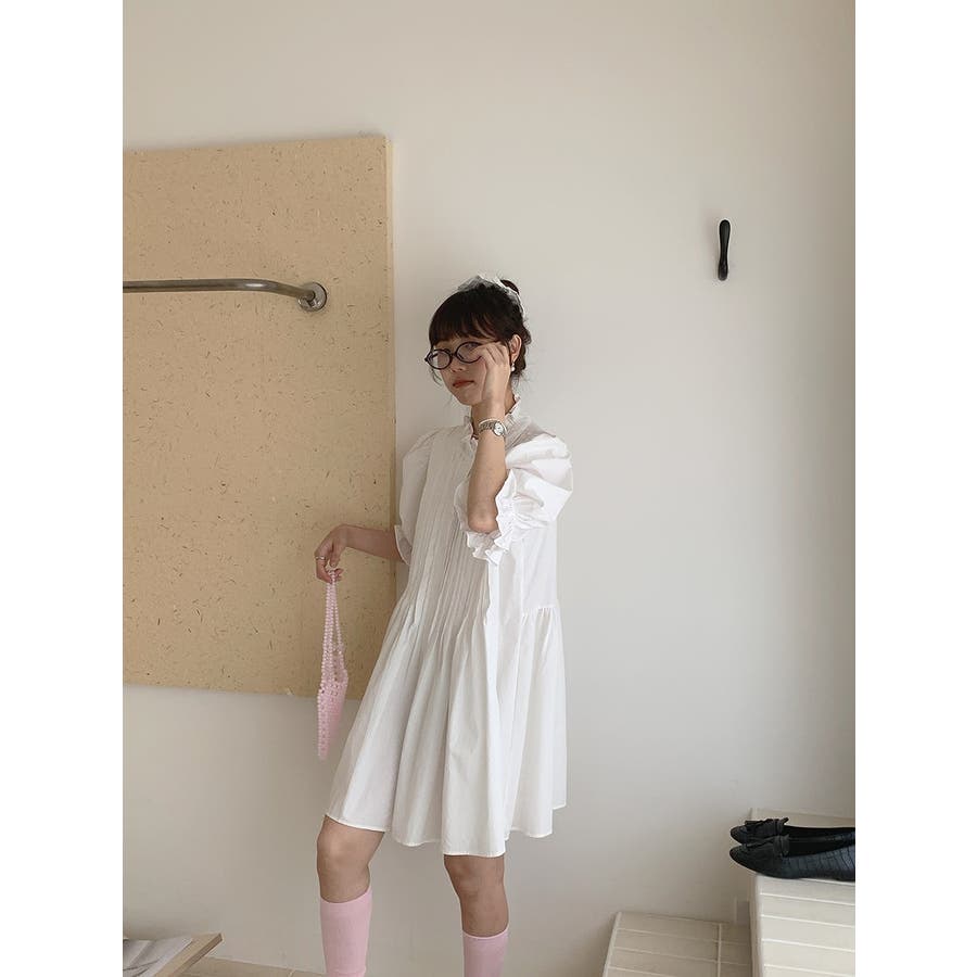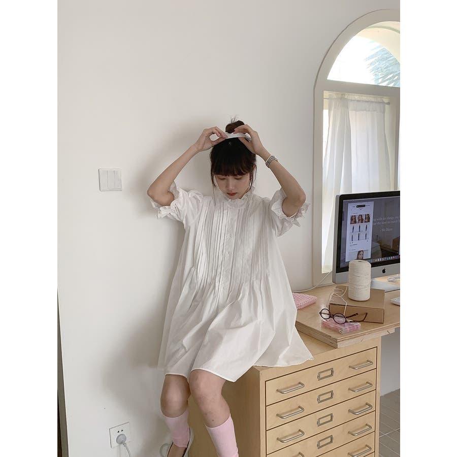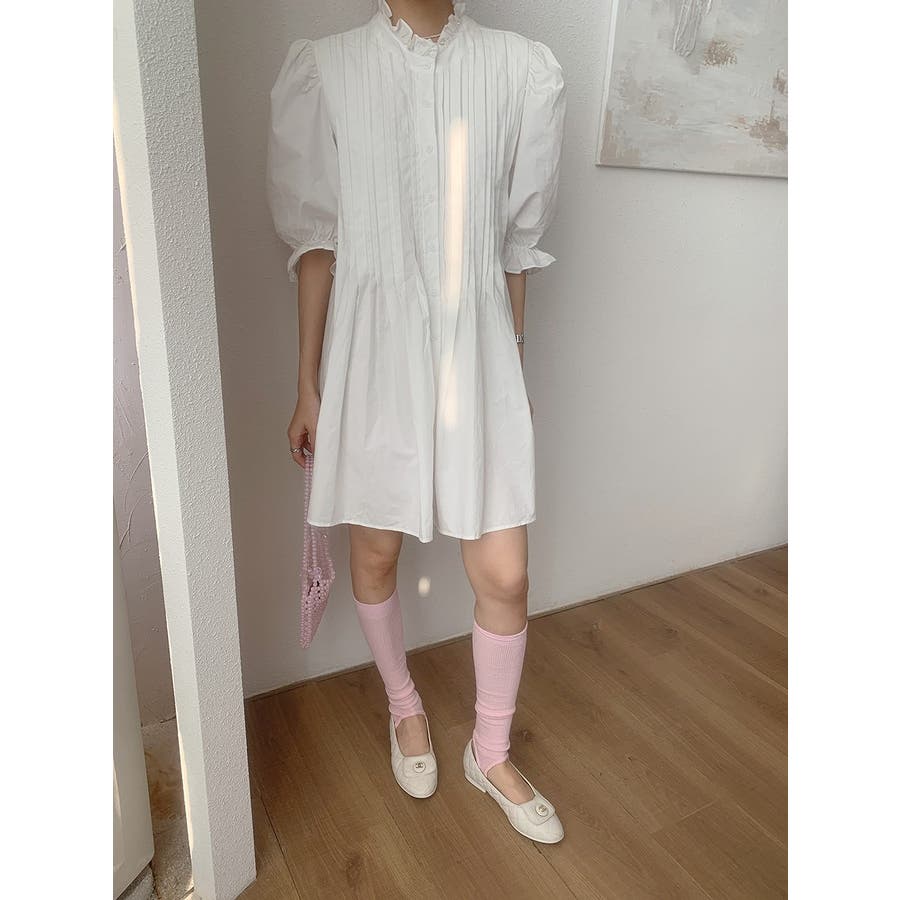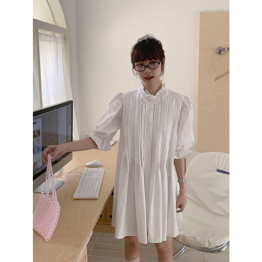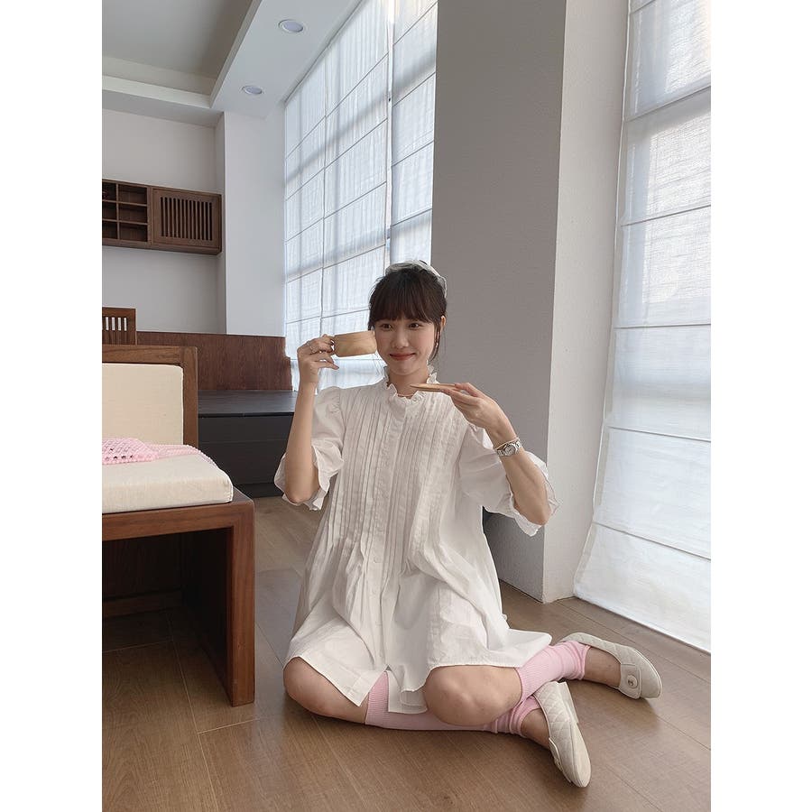 フリルシングルブレストシャツワンピース