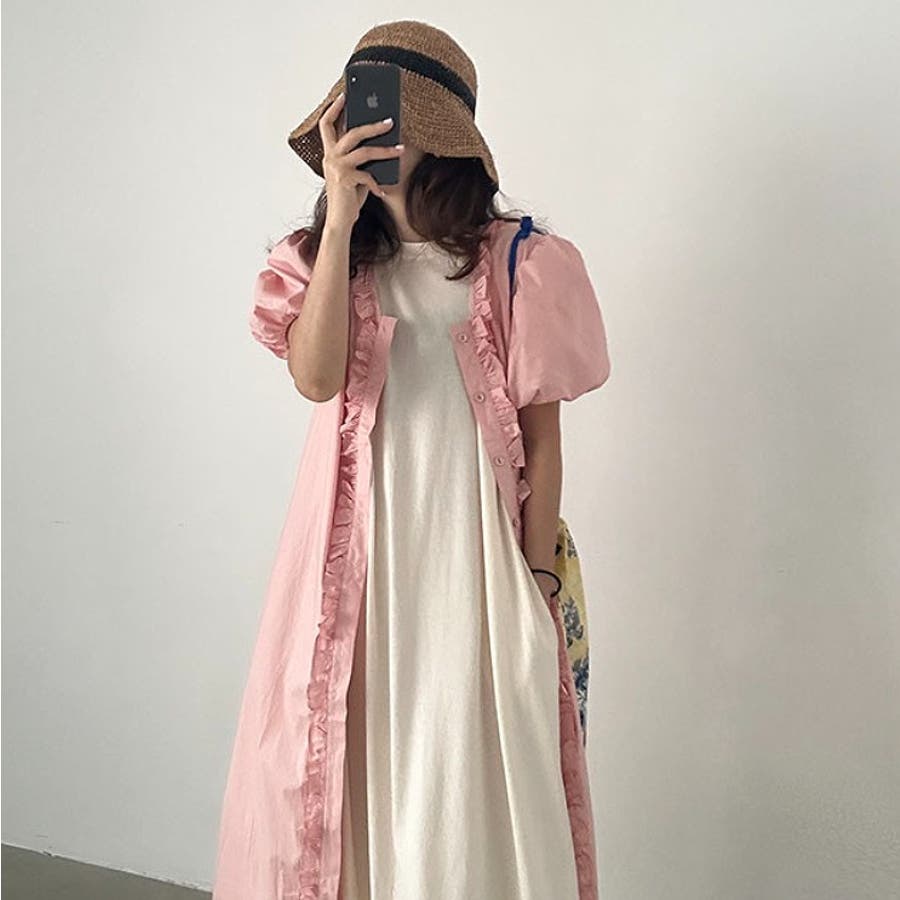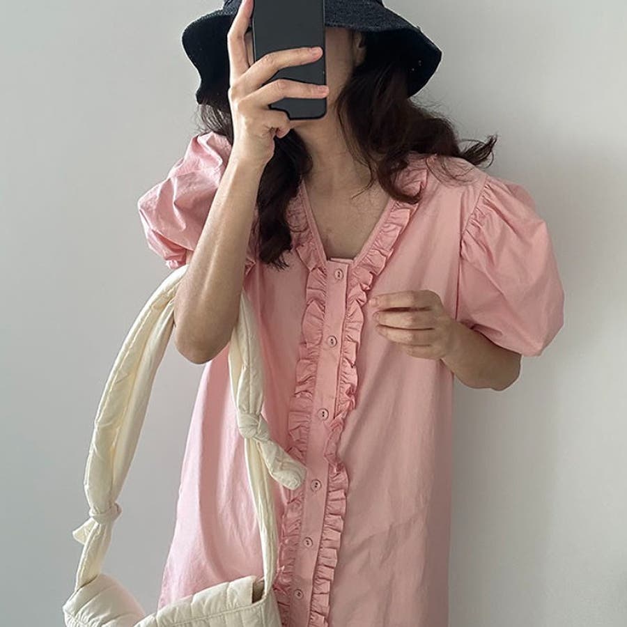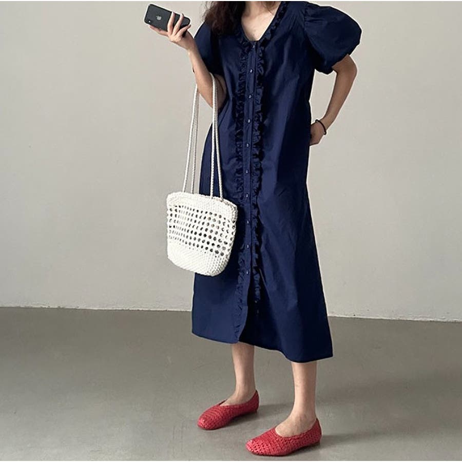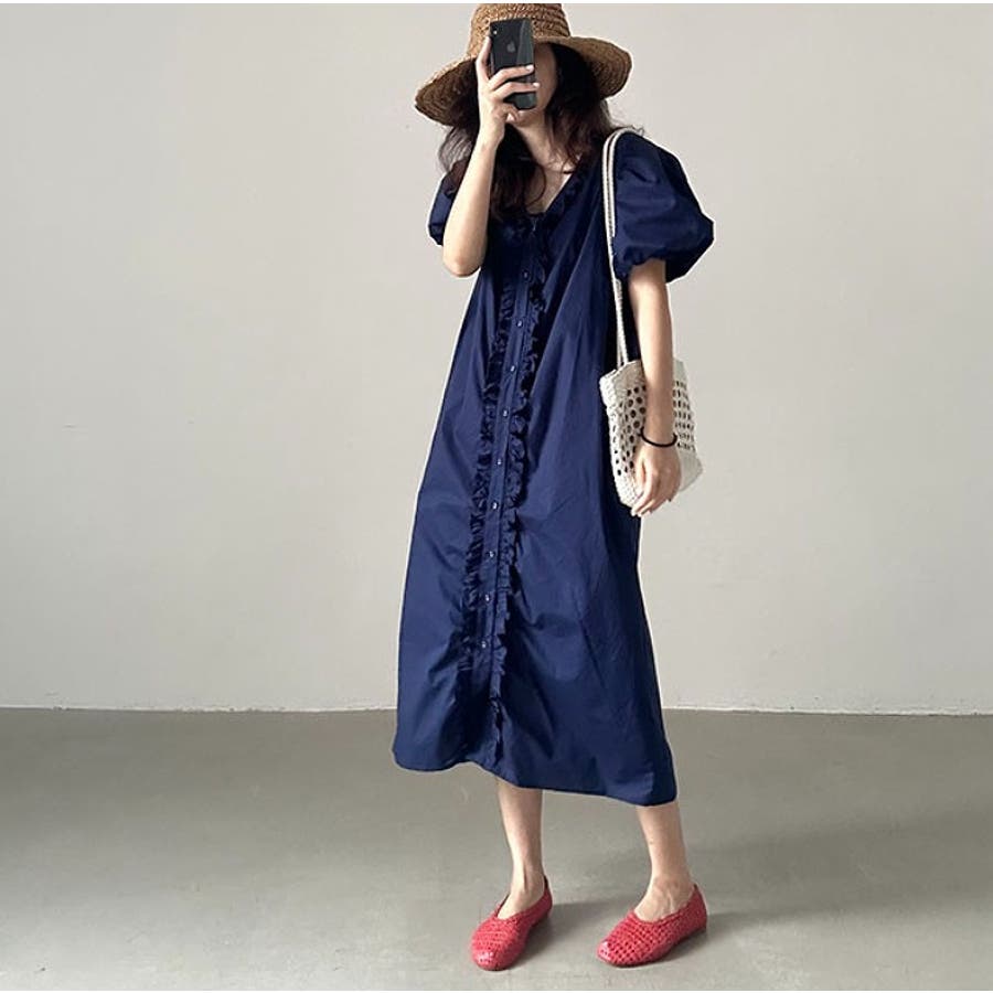 フリルVネックパフスリーブワンピース