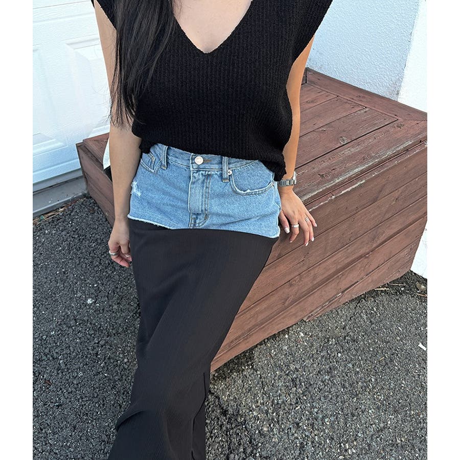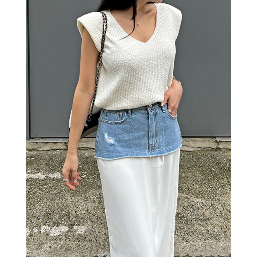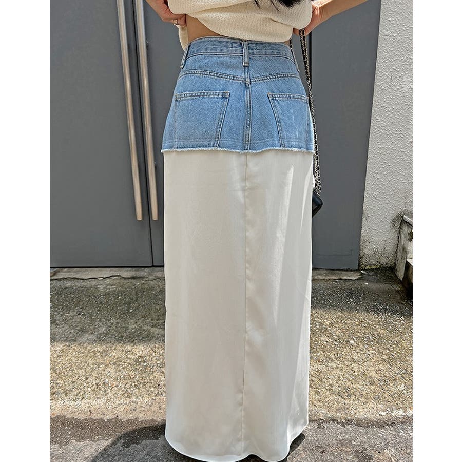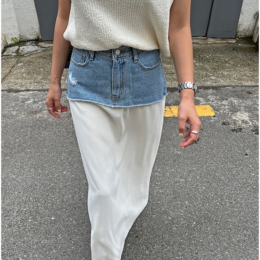 ポケットデニムパッチワークスカート