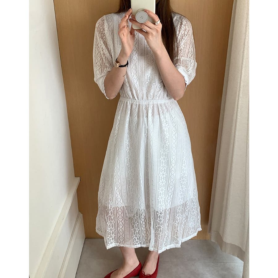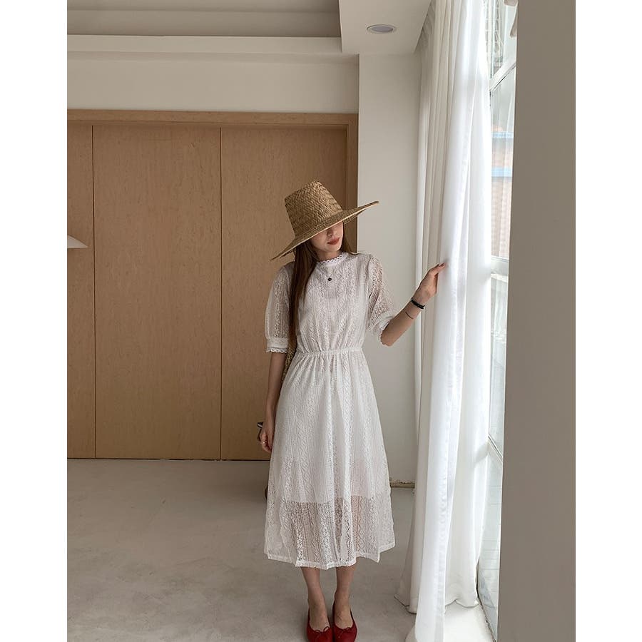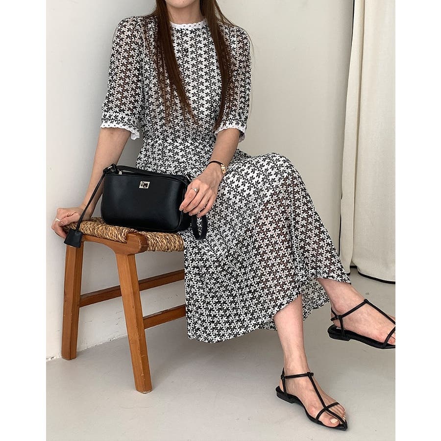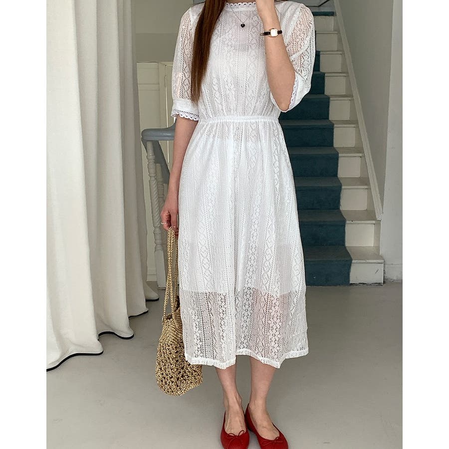 バックジップスレースジャカードワンピース