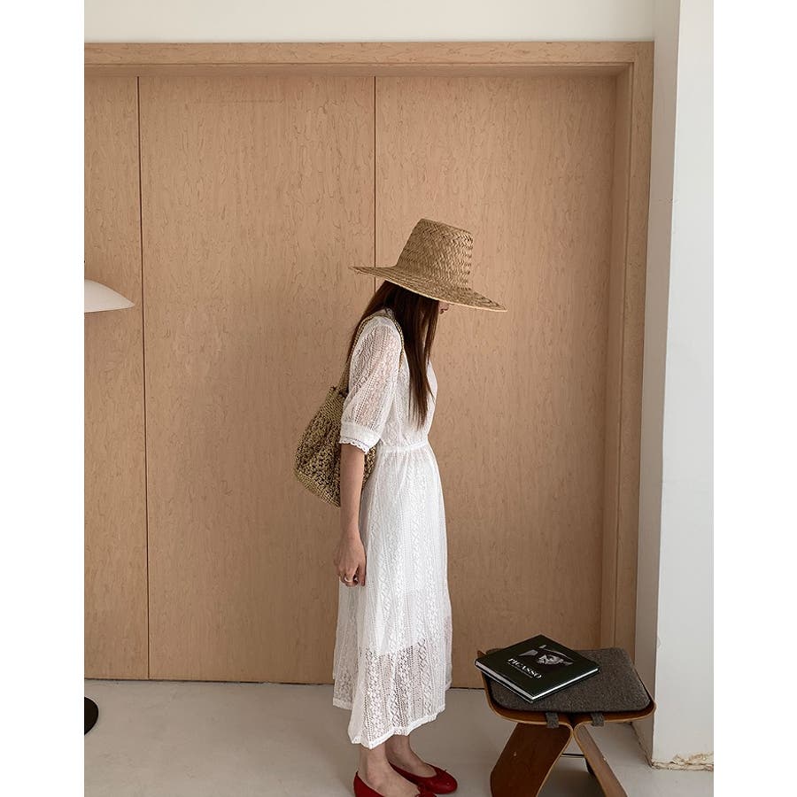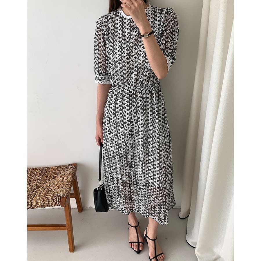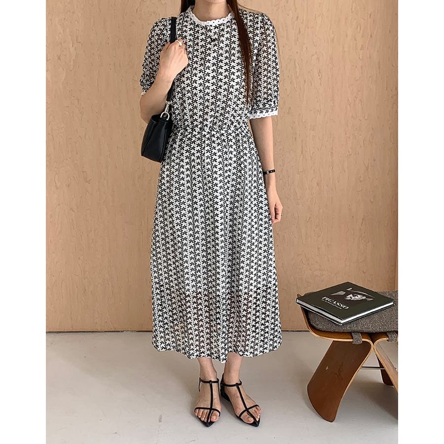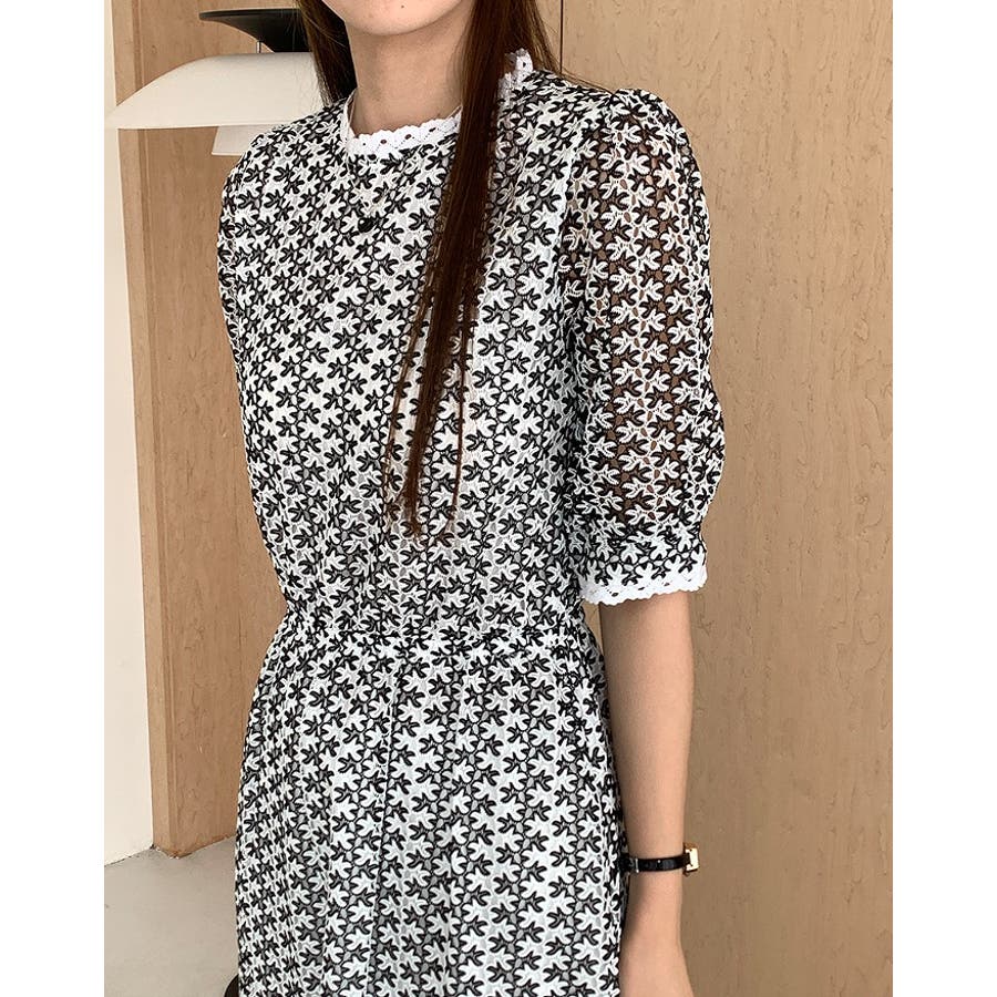 バックジップスレースジャカードワンピース