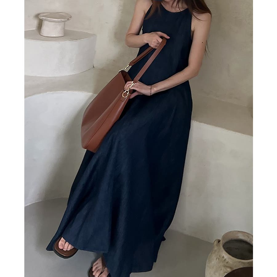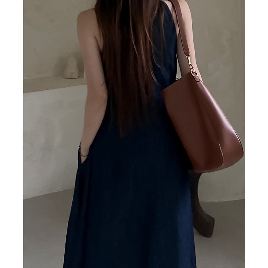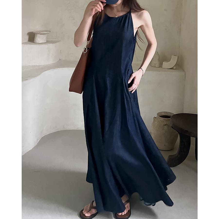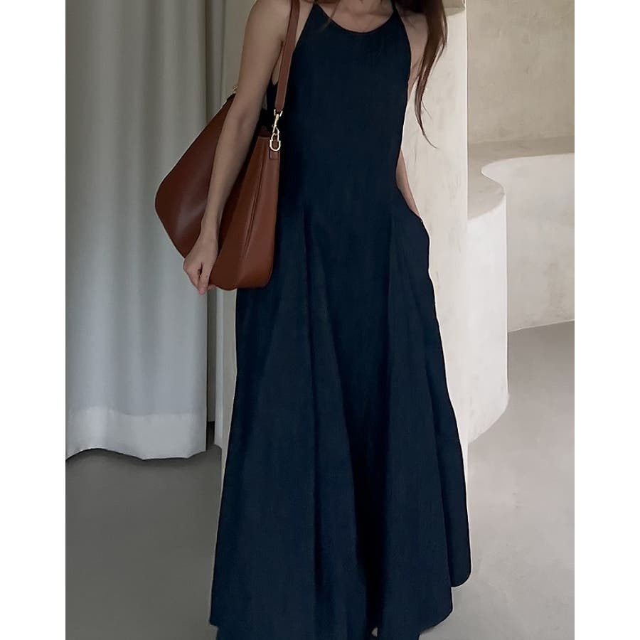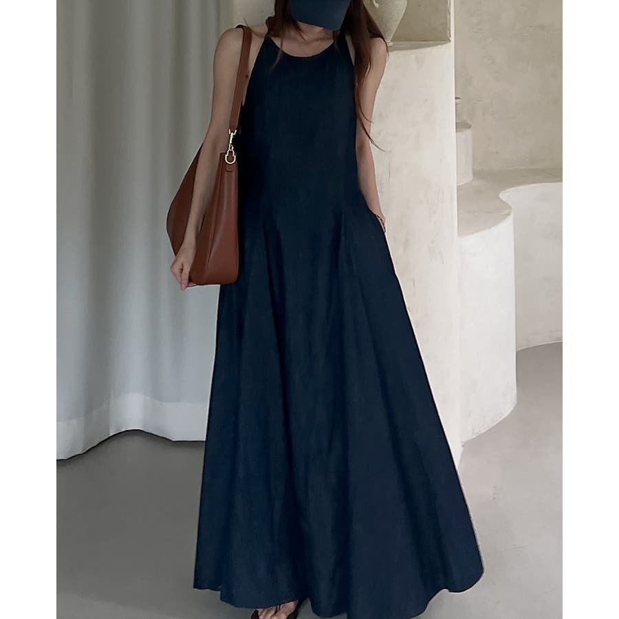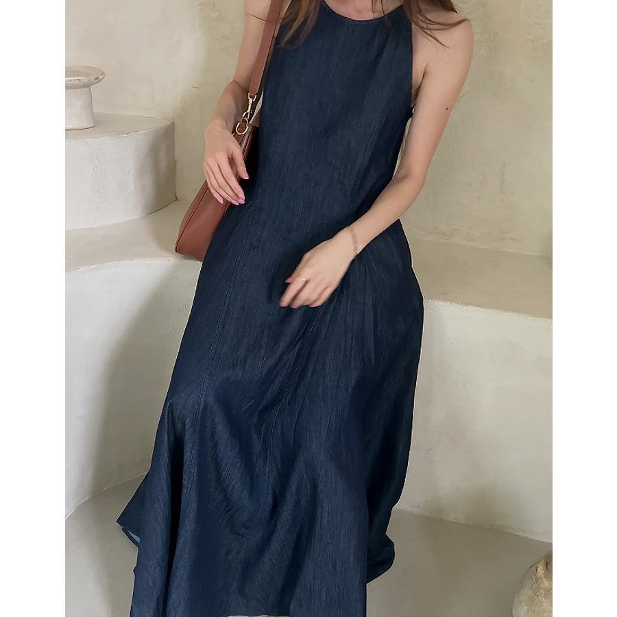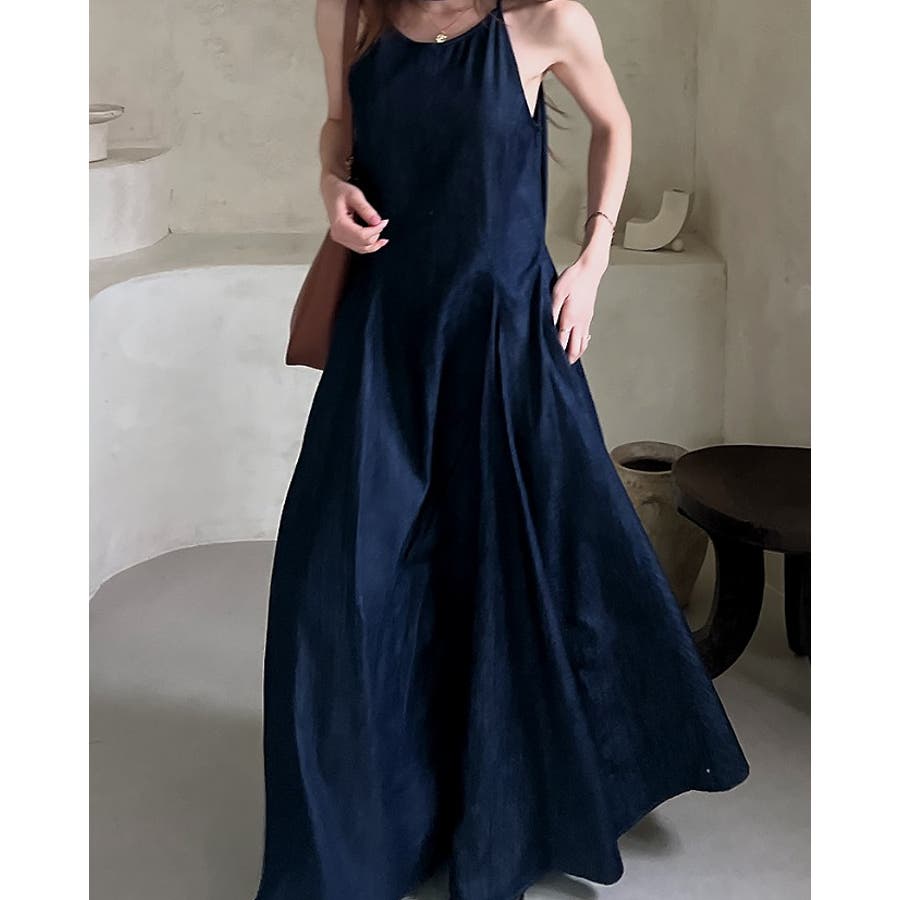 シンプルバックジップスキャミデニムワンピース