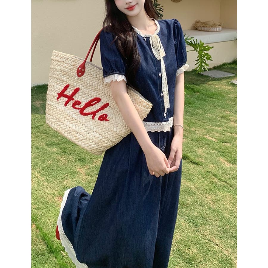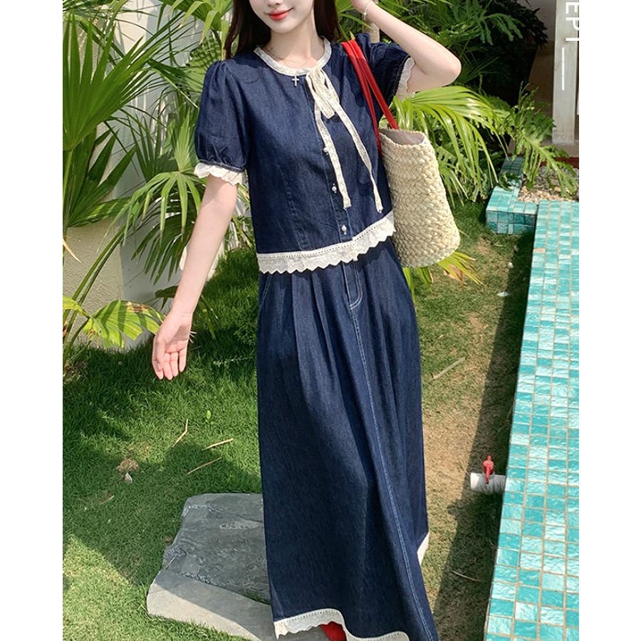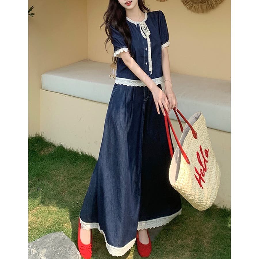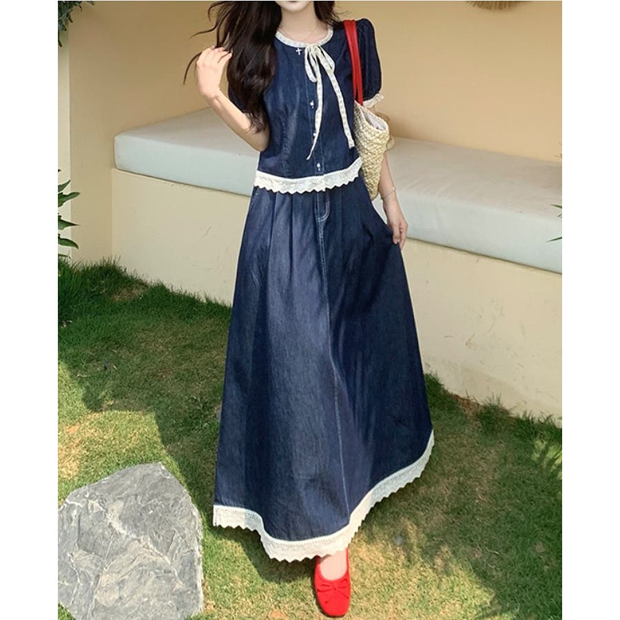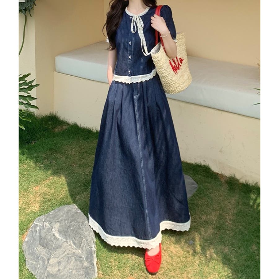 ポケット切り替えレースデニムセットアップ