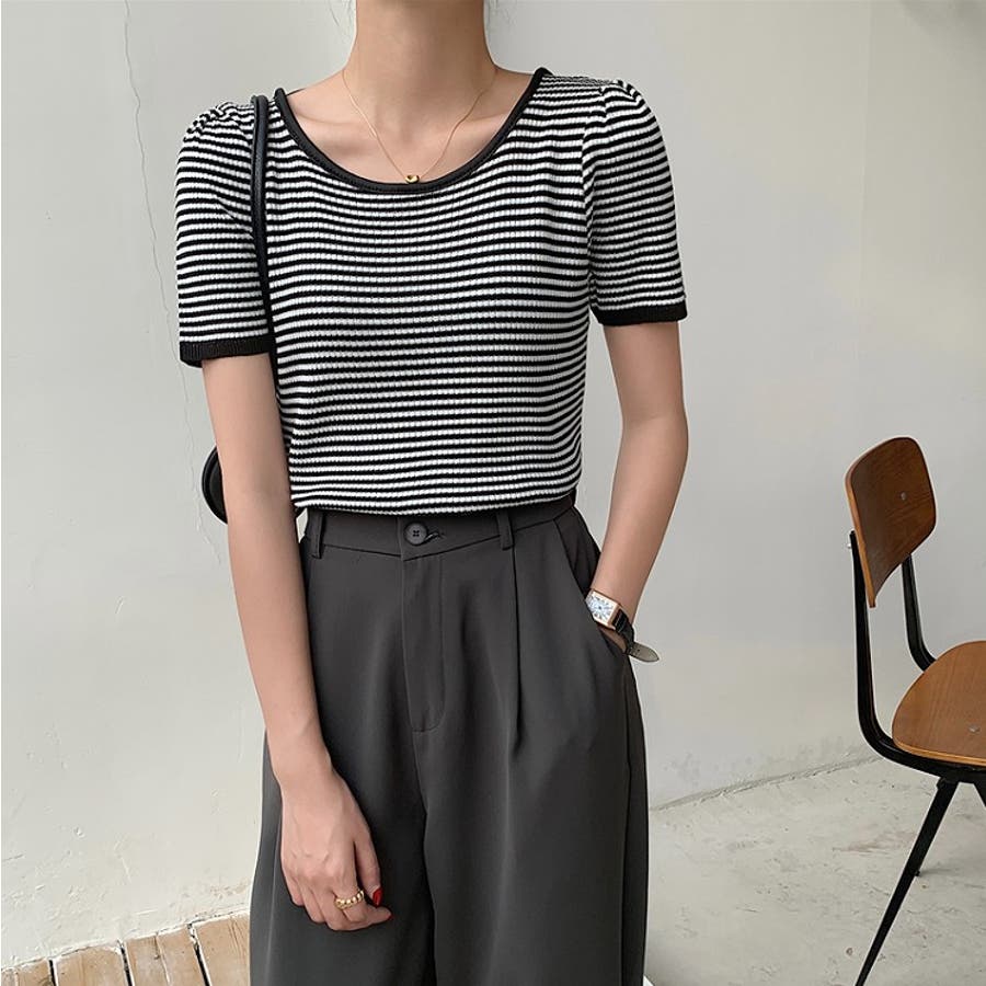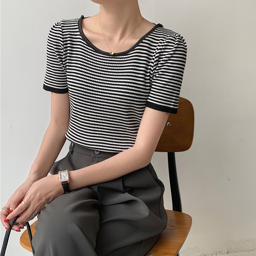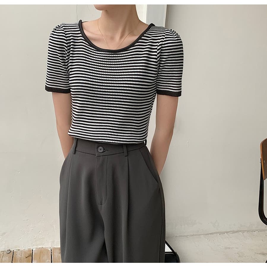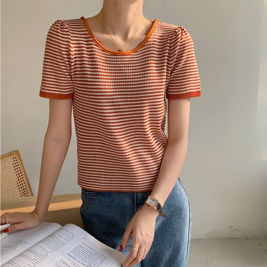 ボーダー柄クルーネック半袖Tシャツ