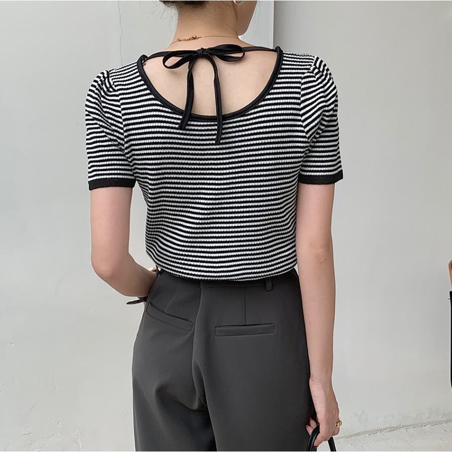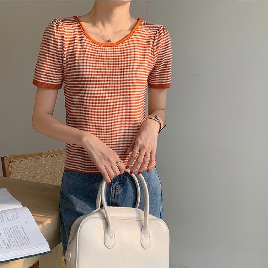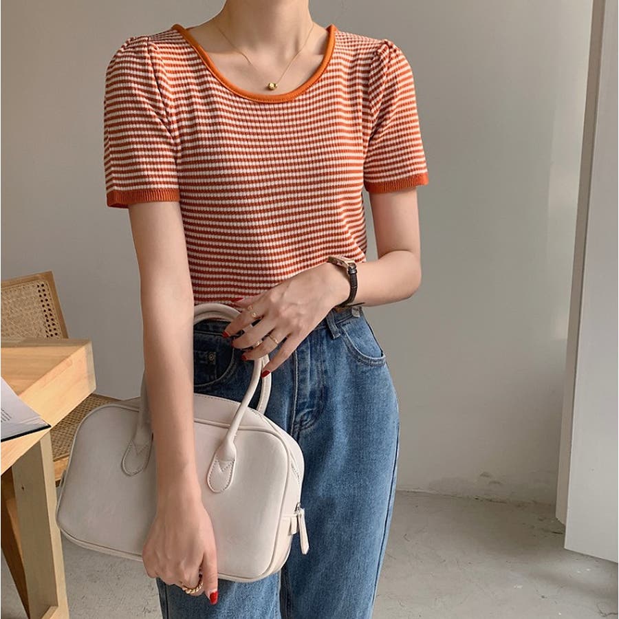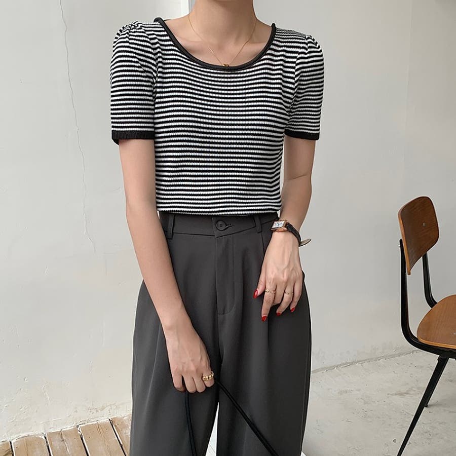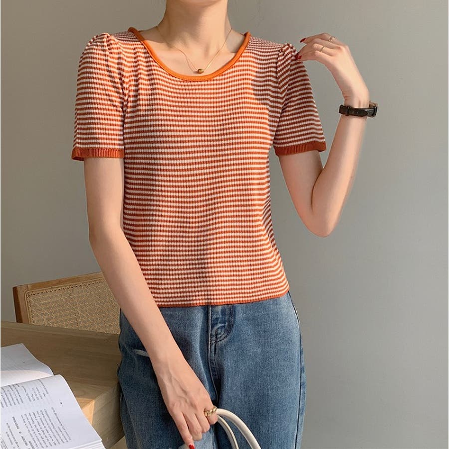 ボーダー柄クルーネック半袖Tシャツ