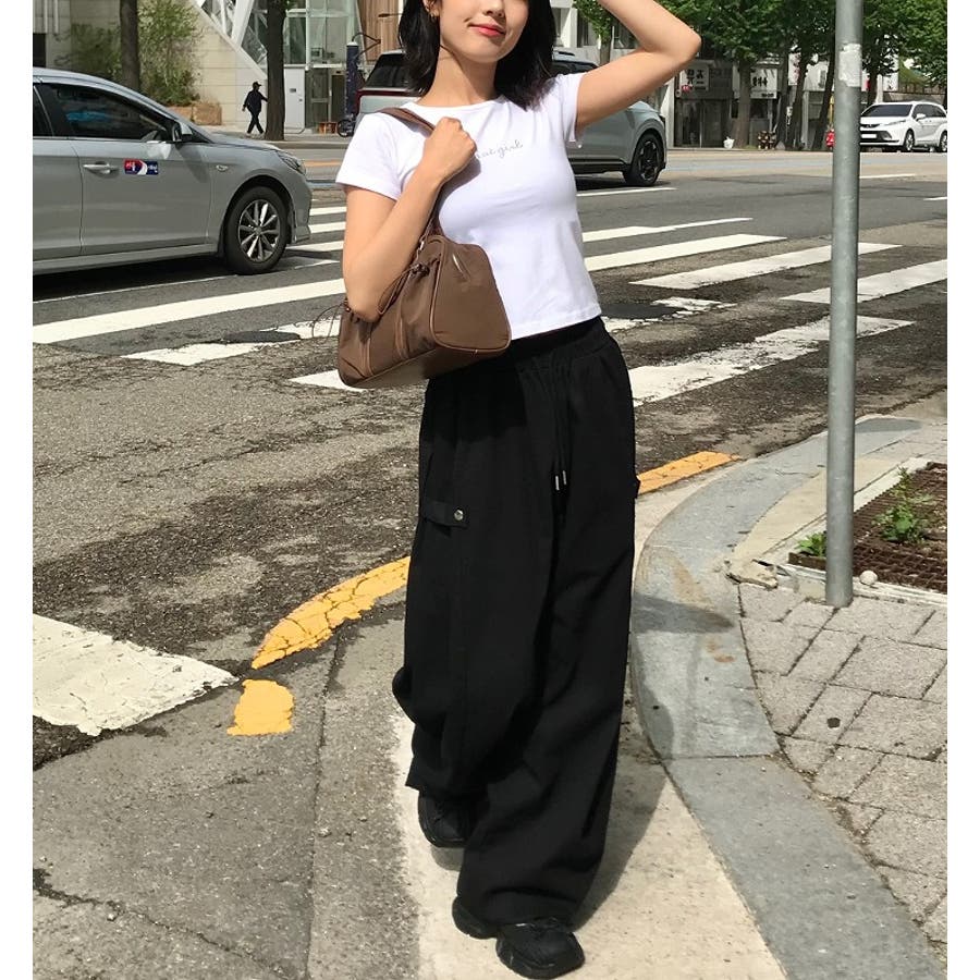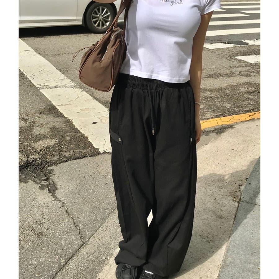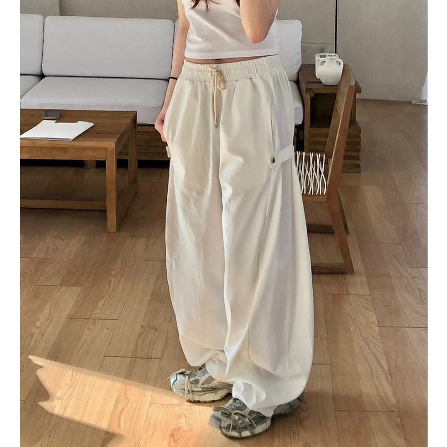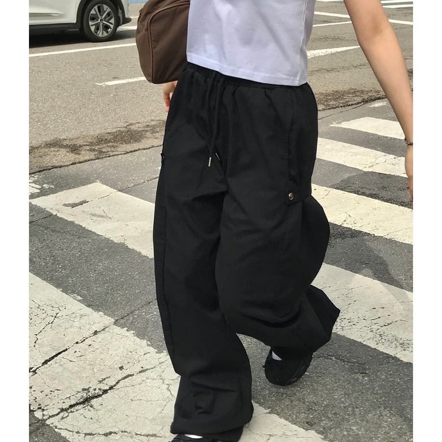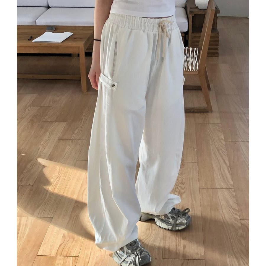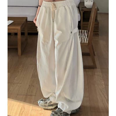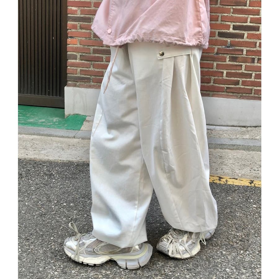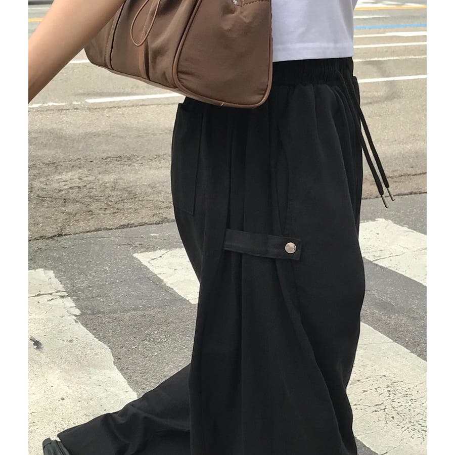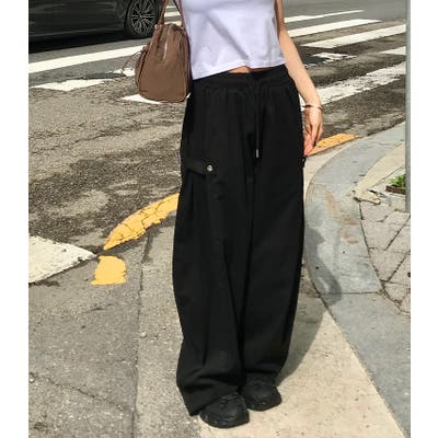 ポケットドローストリングサイドボタン付きワイドレッグ