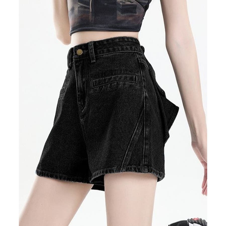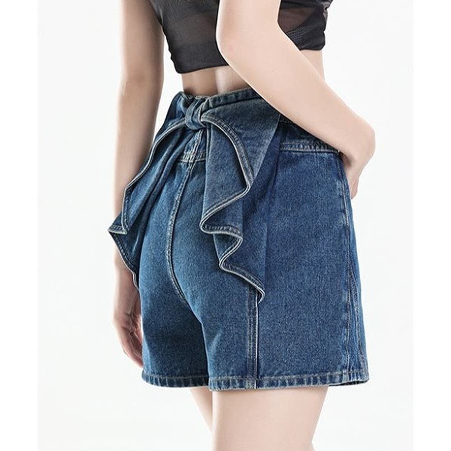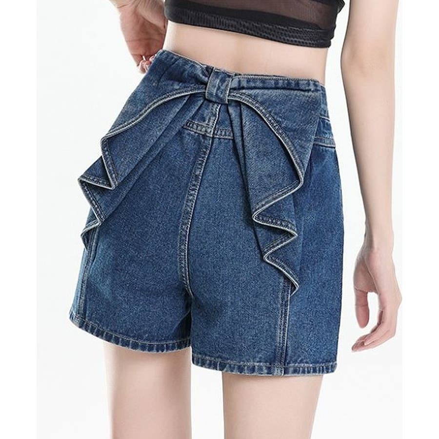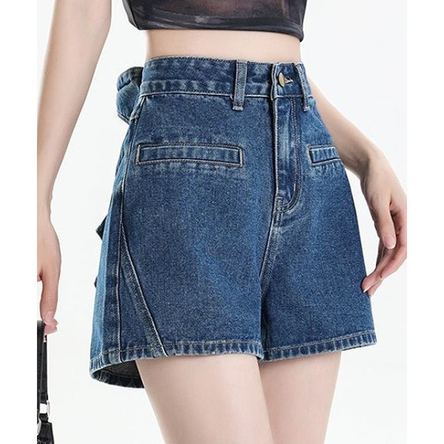 リボンタイデニムショートパンツ