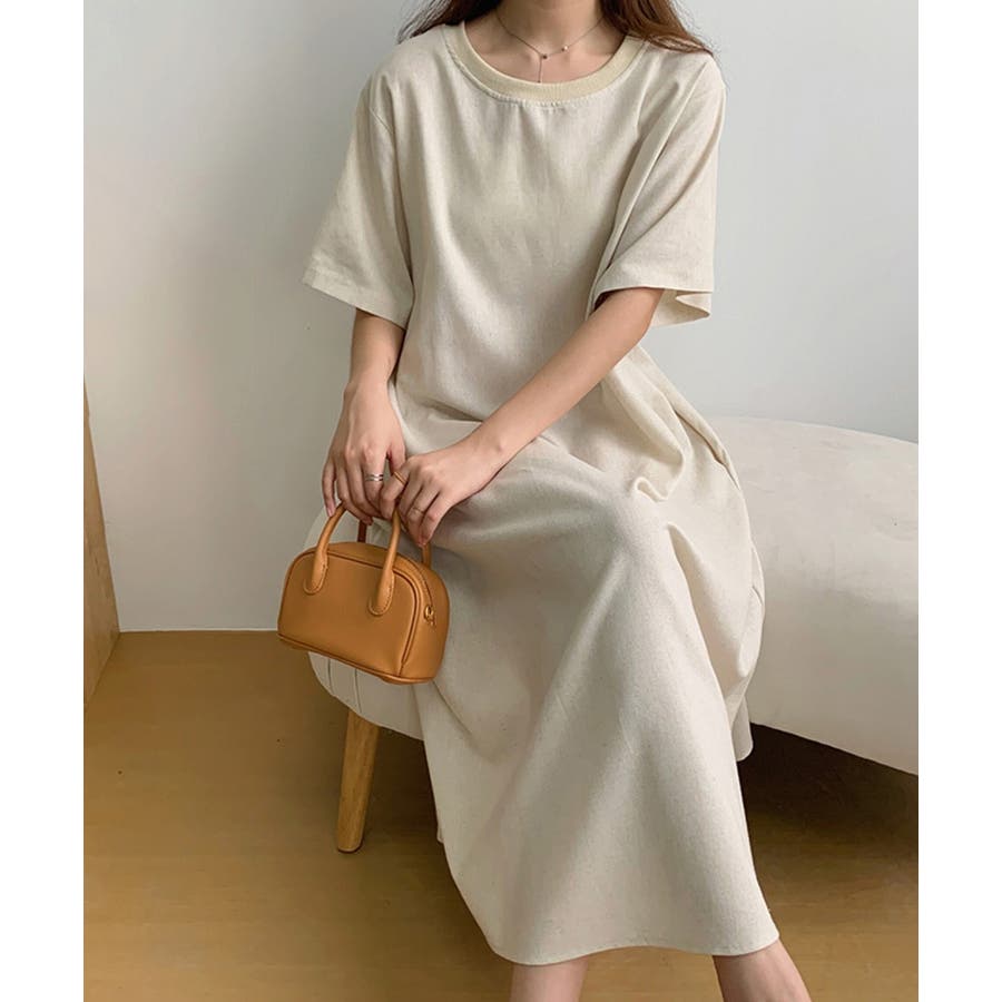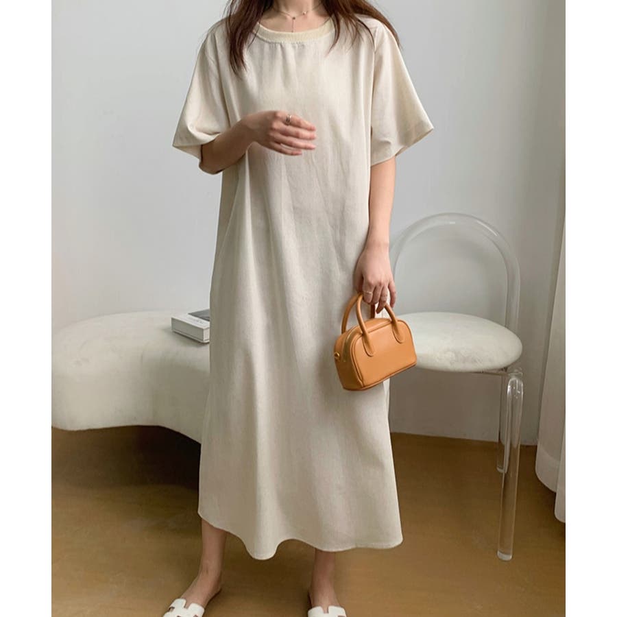 シンプルクルーネックワンピース