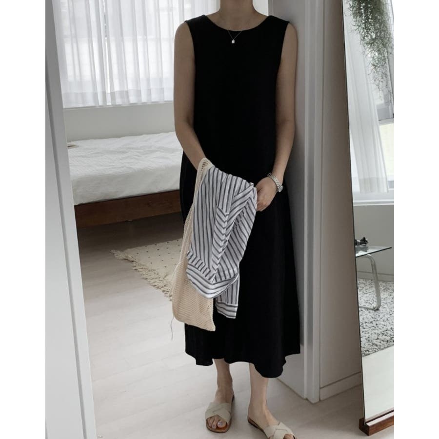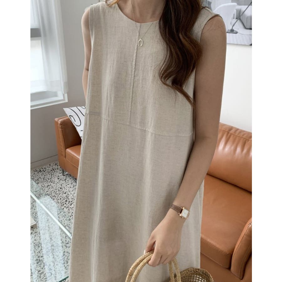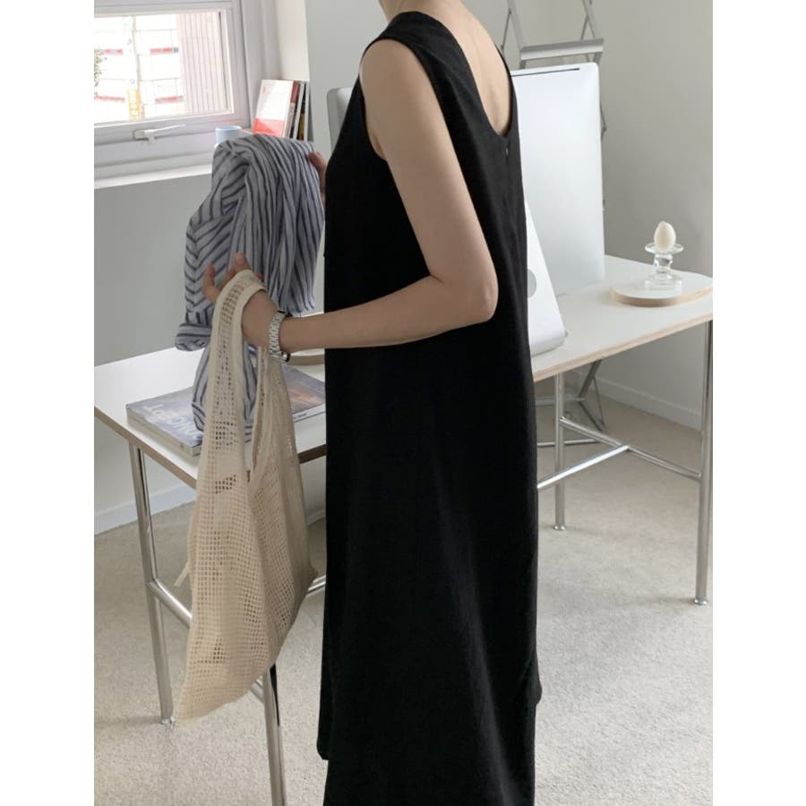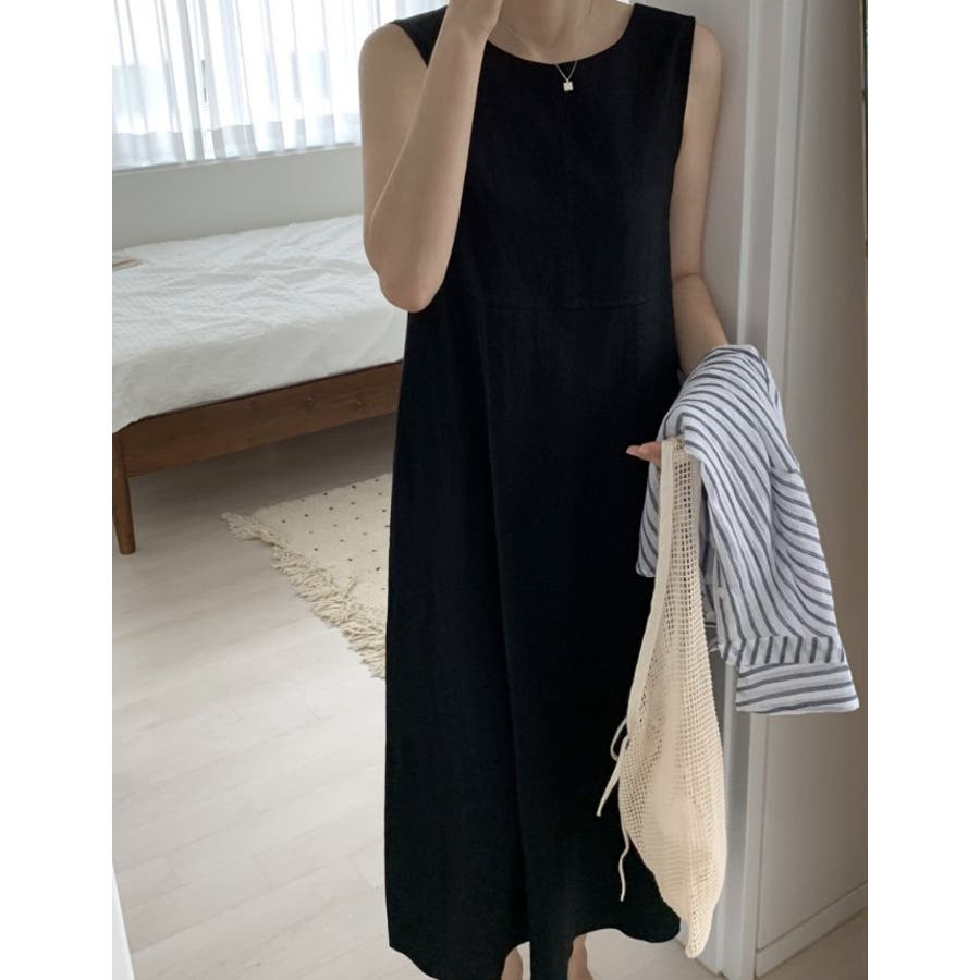 シンプルクルーネック袖なしワンピース