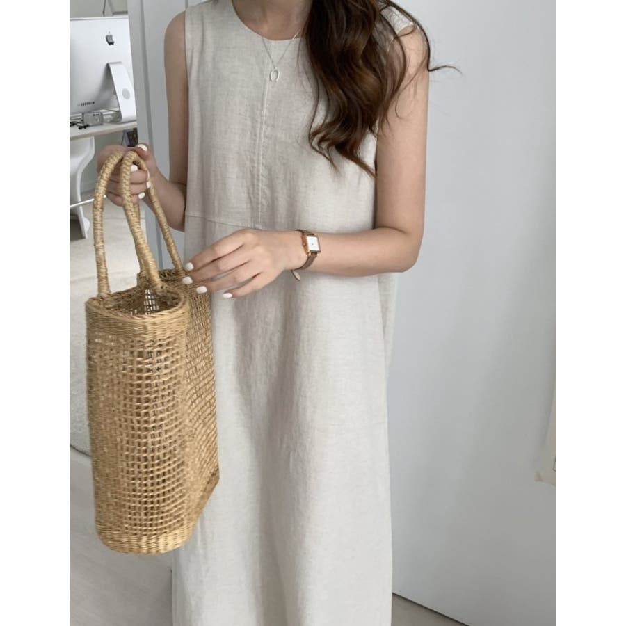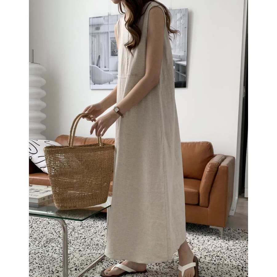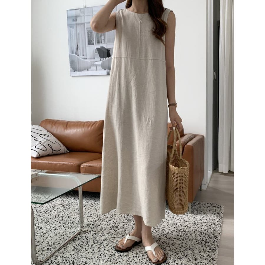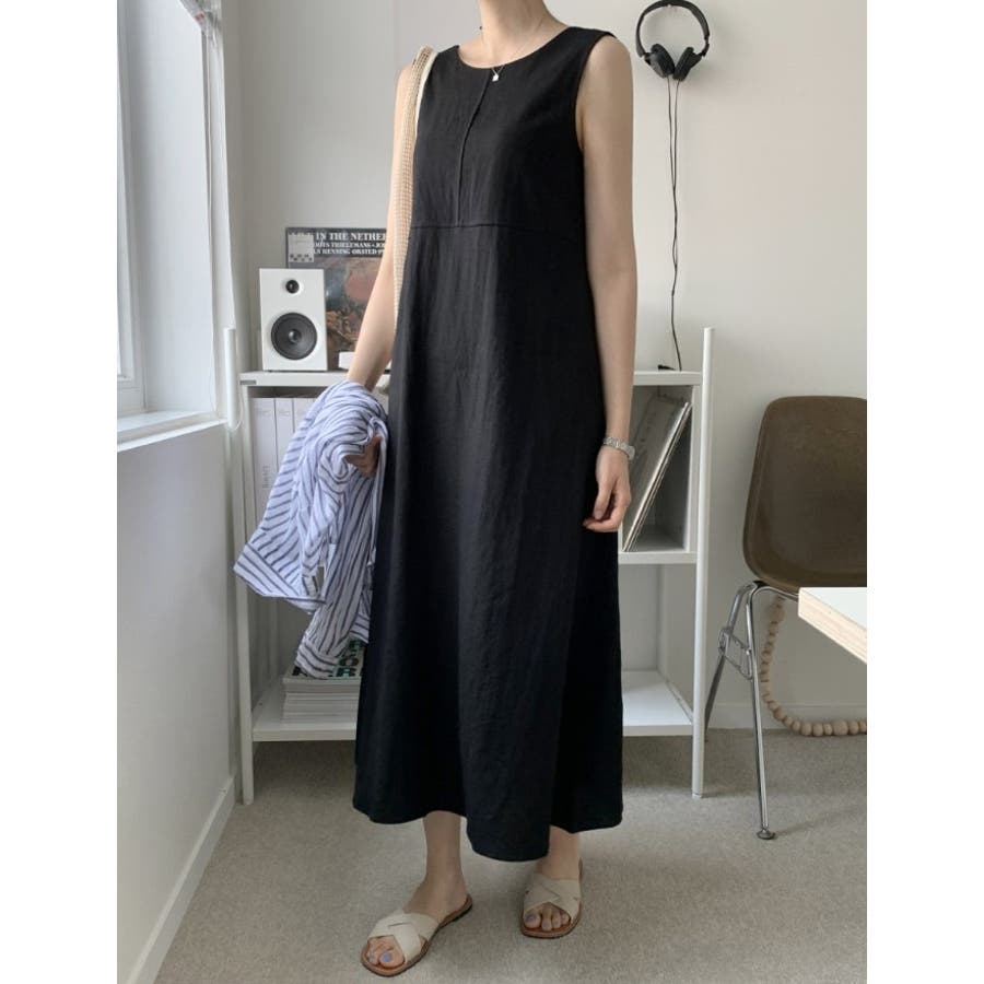 シンプルクルーネック袖なしワンピース