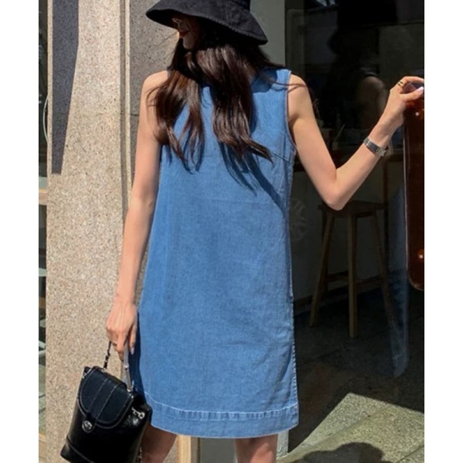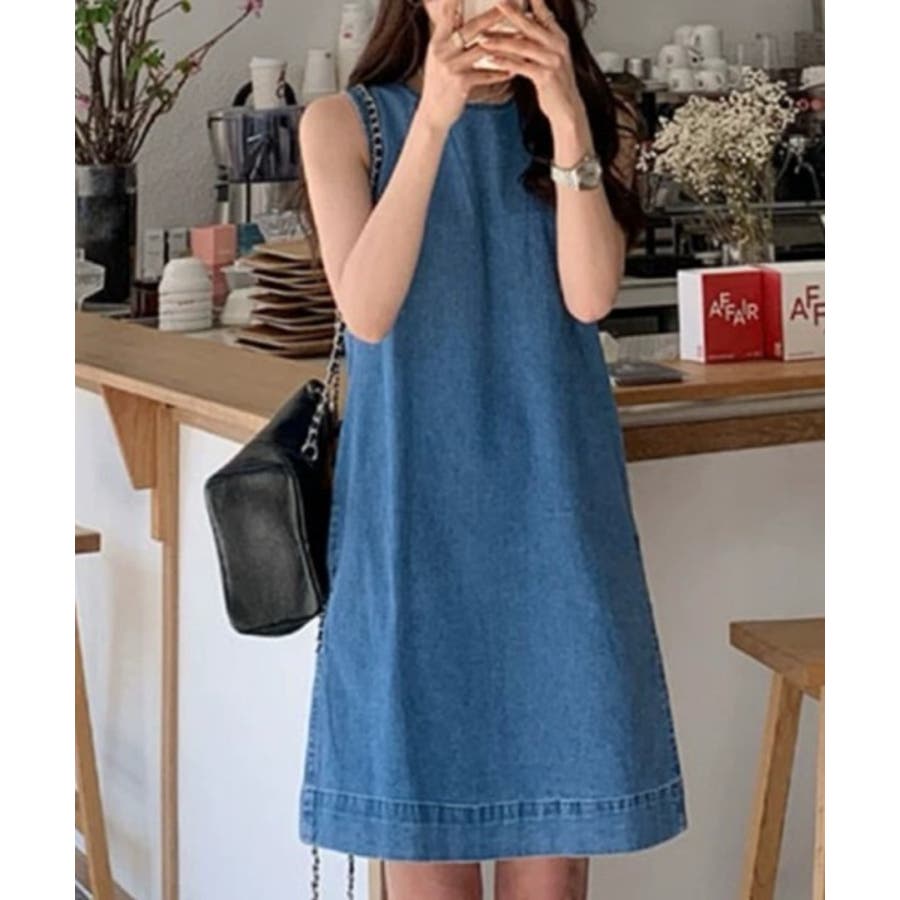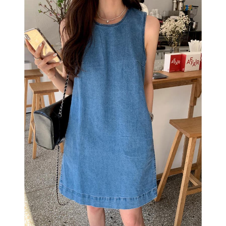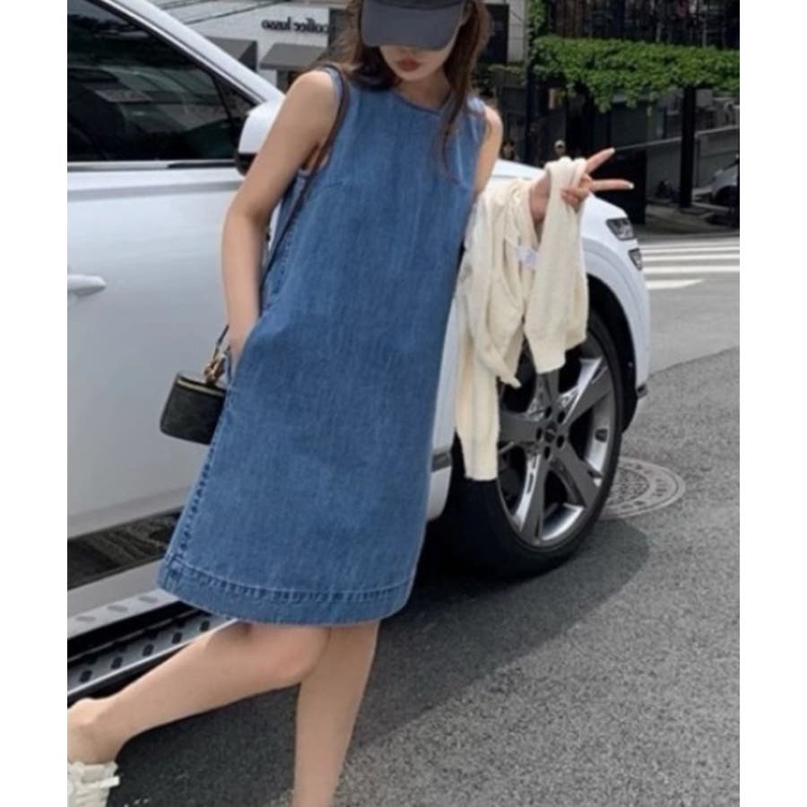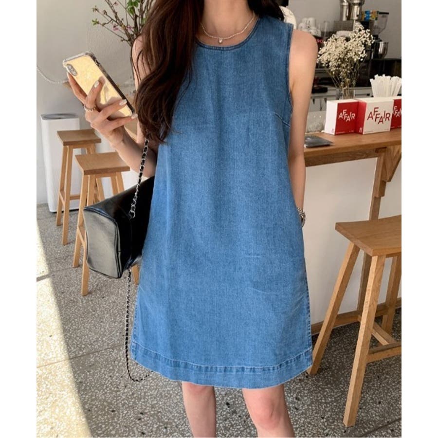 袖なしデニムワンピース