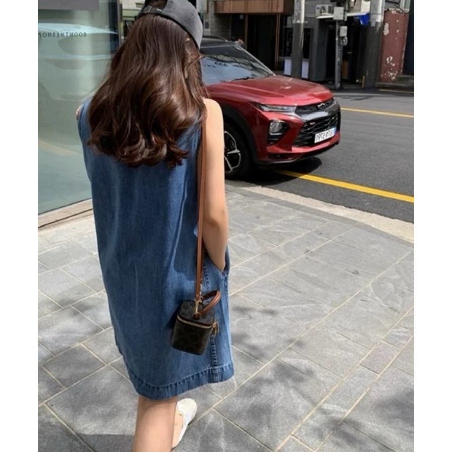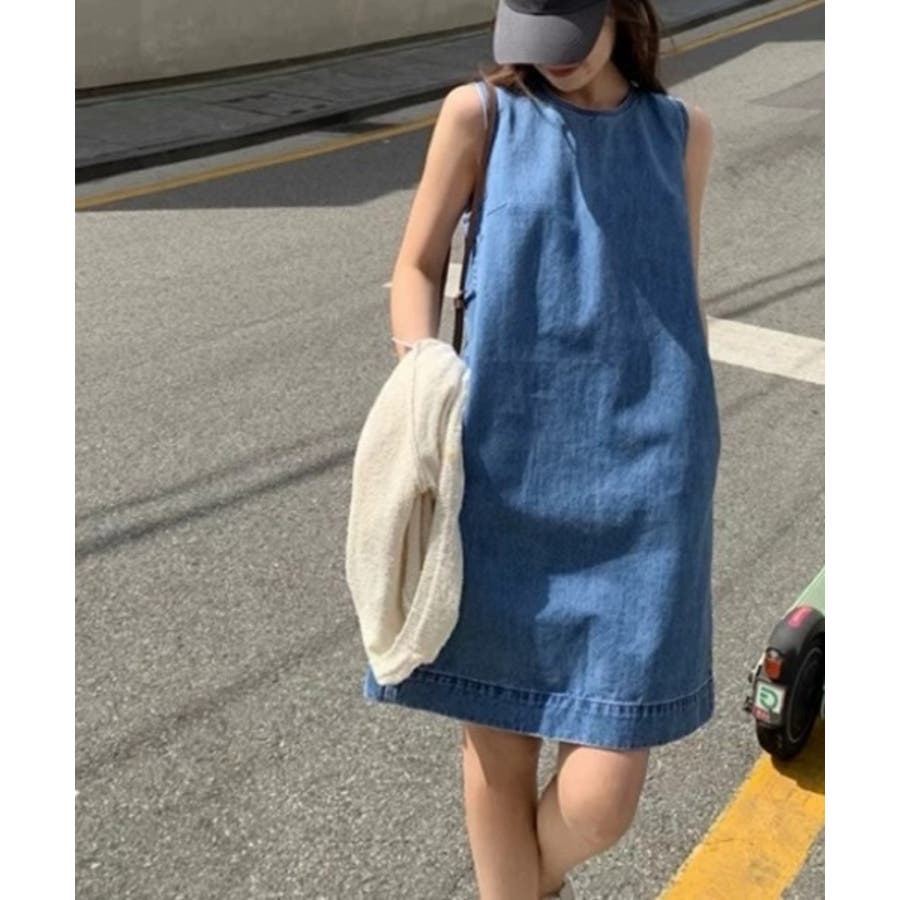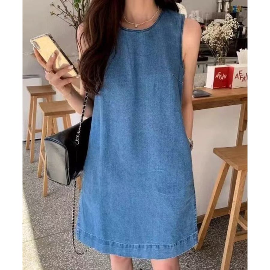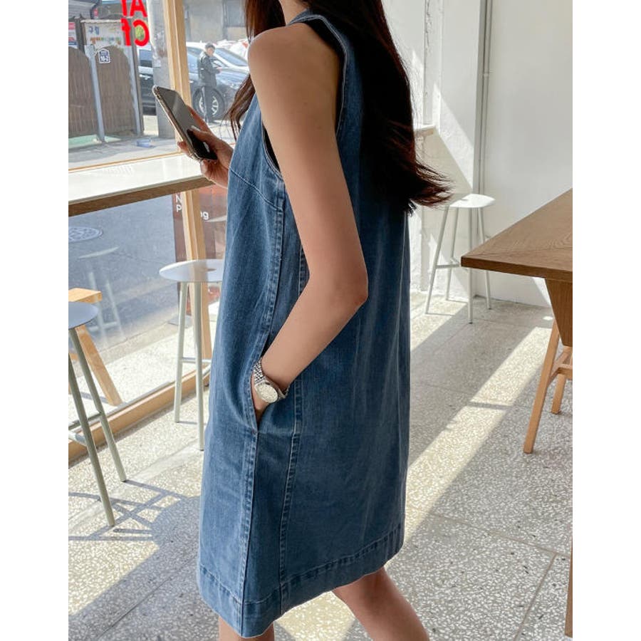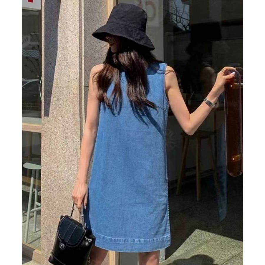 袖なしデニムワンピース
