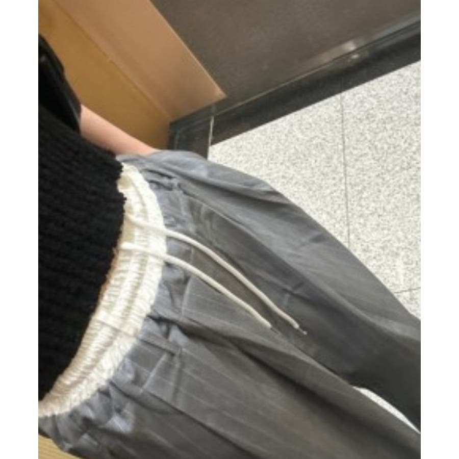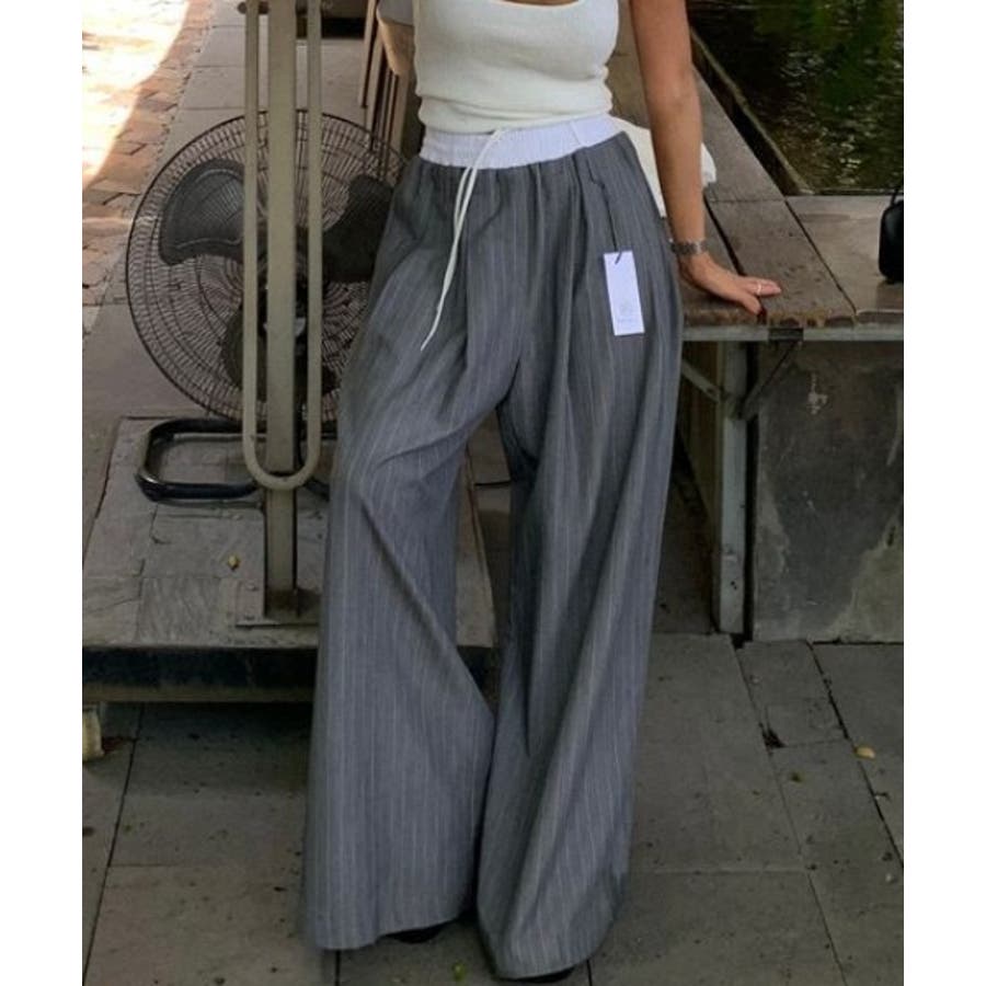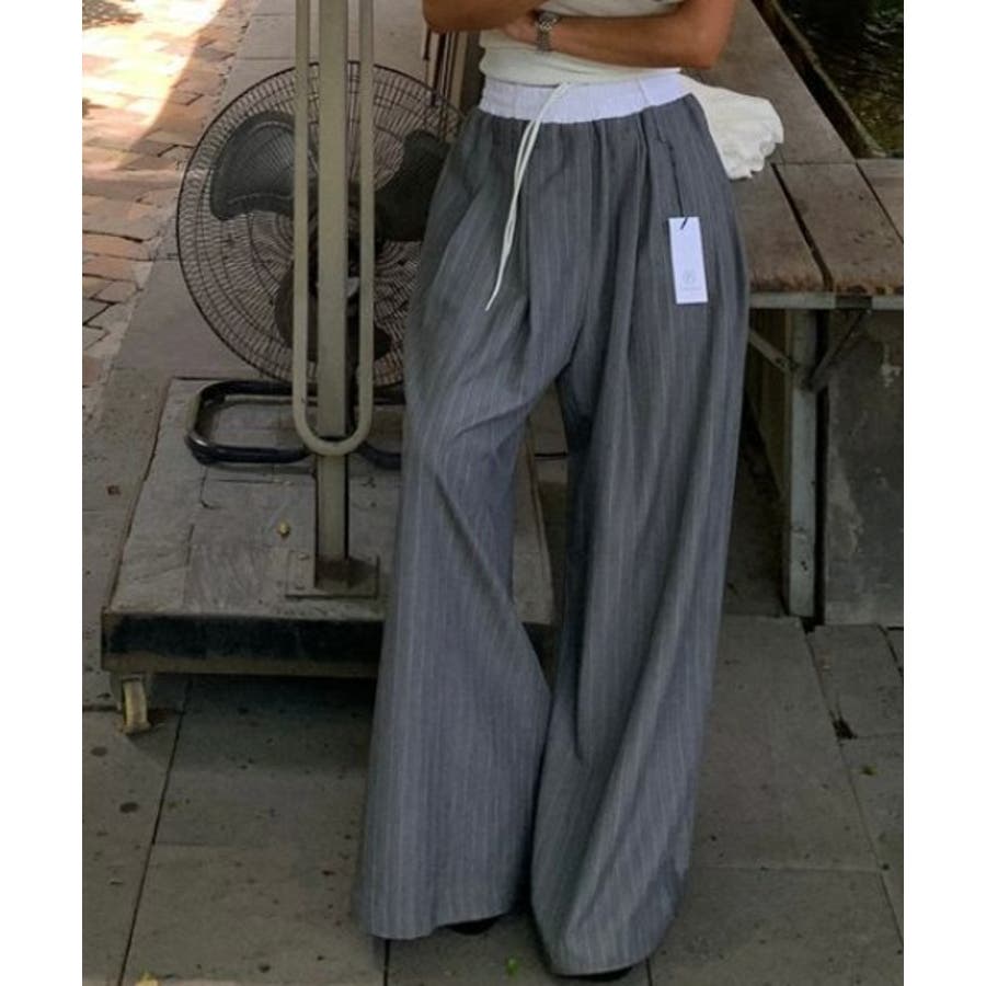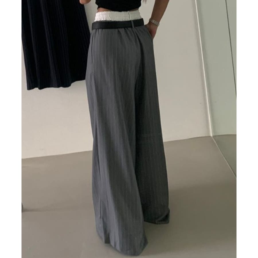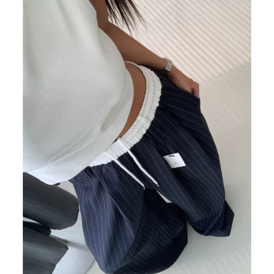 ドローストリングパッチワークストライプ柄ワイドパンツ