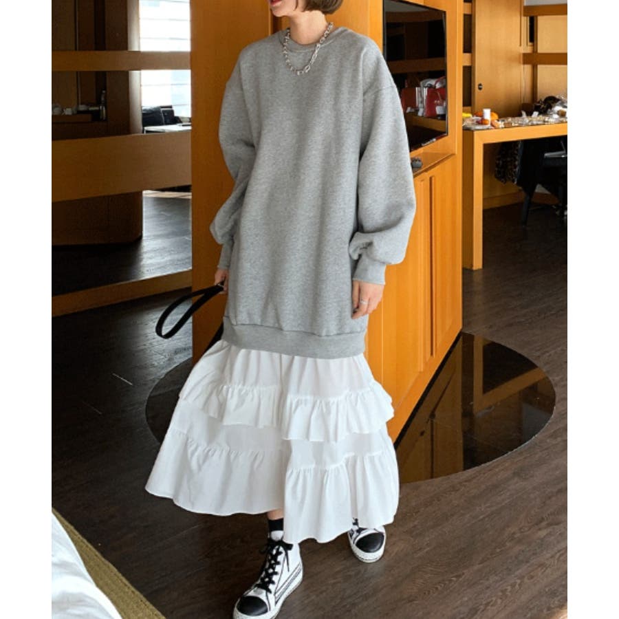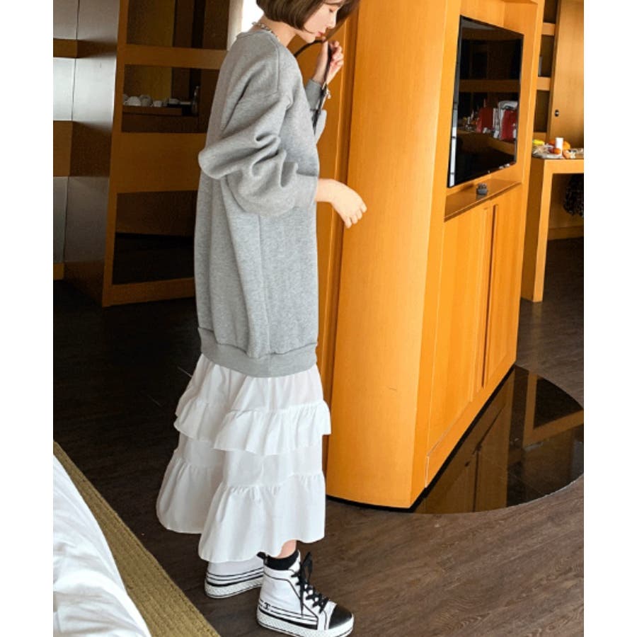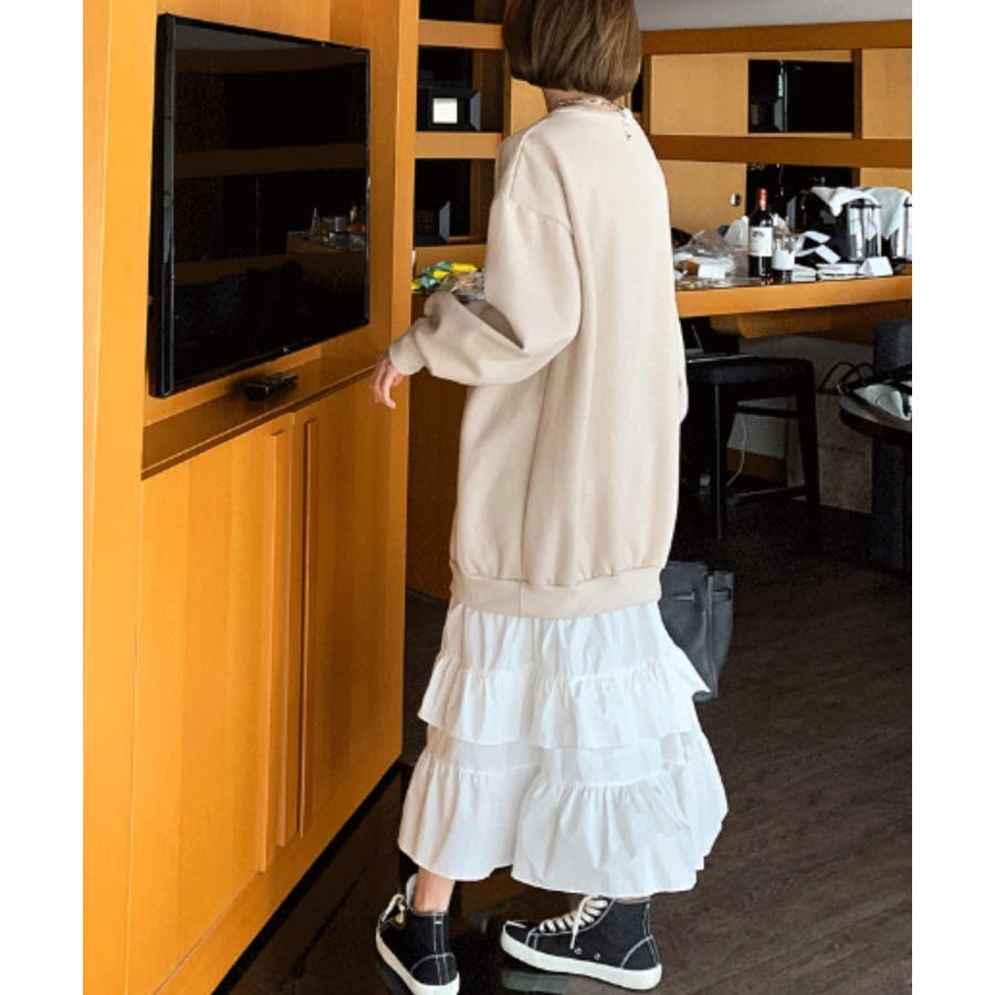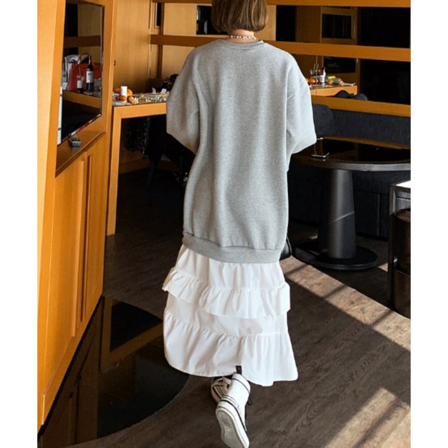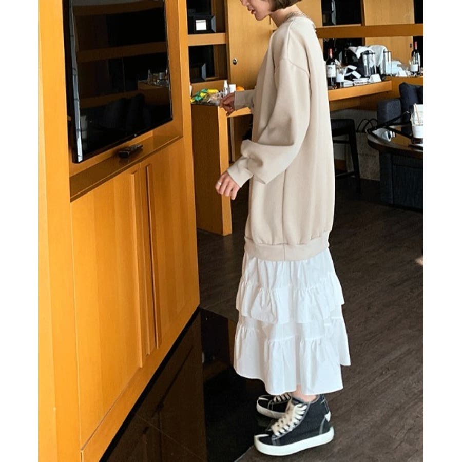 トレーナー切り替えフリルワンピース