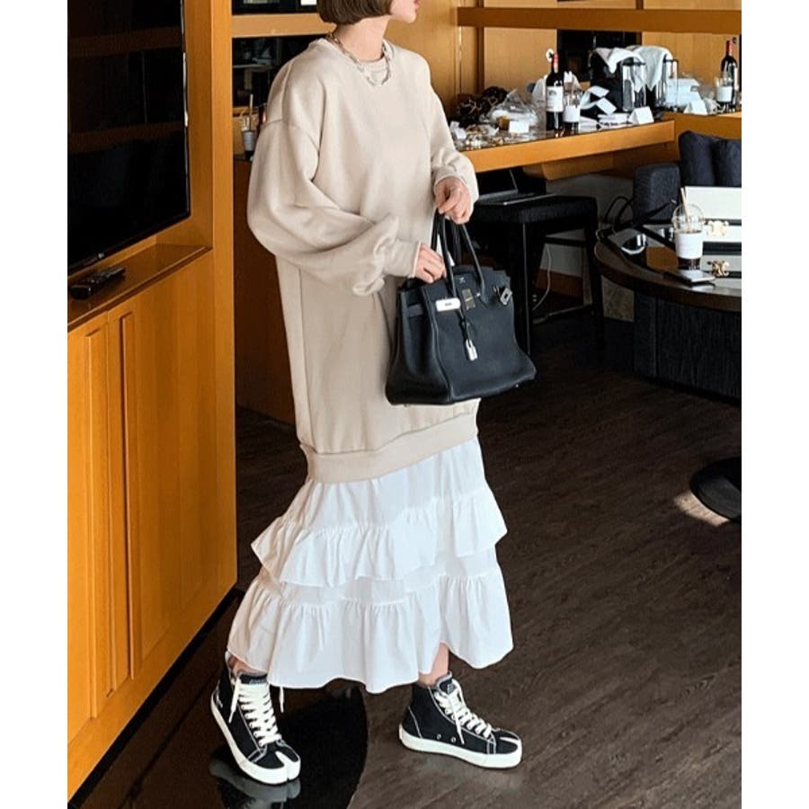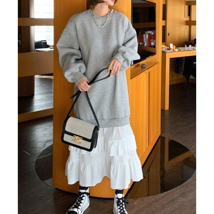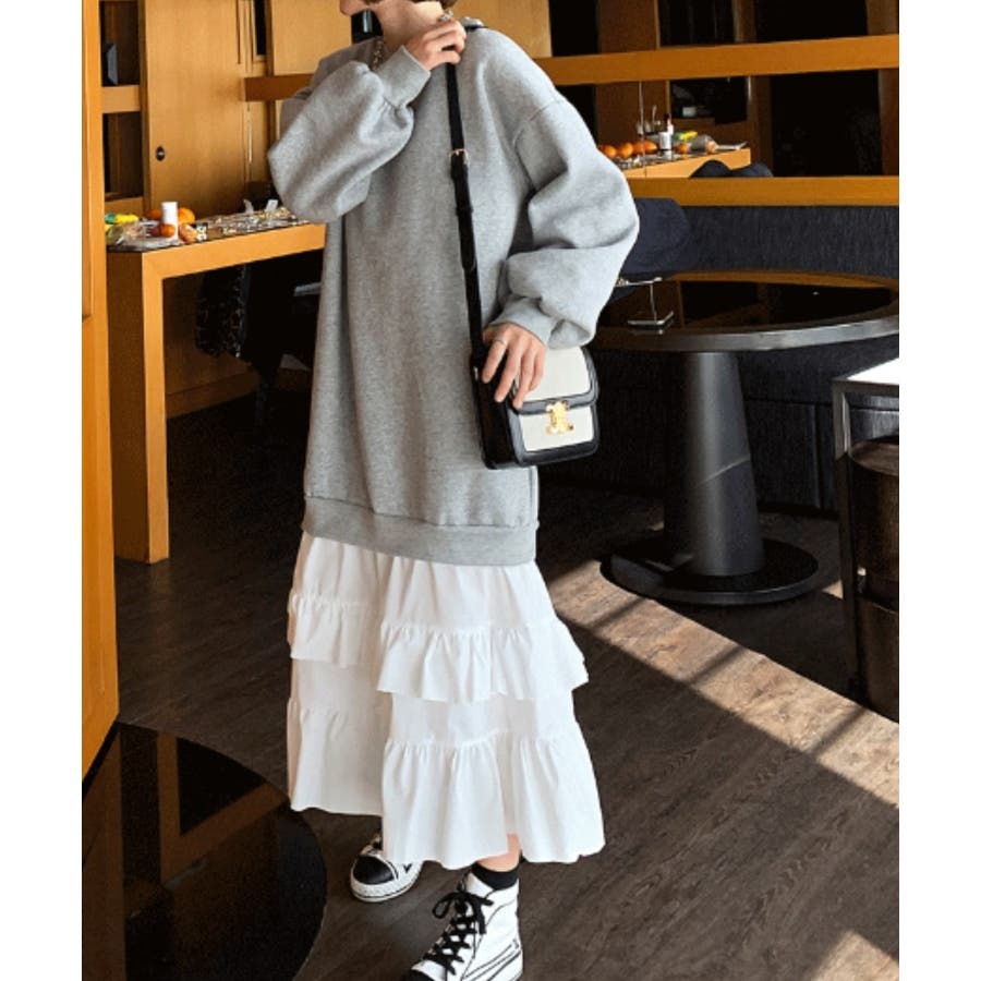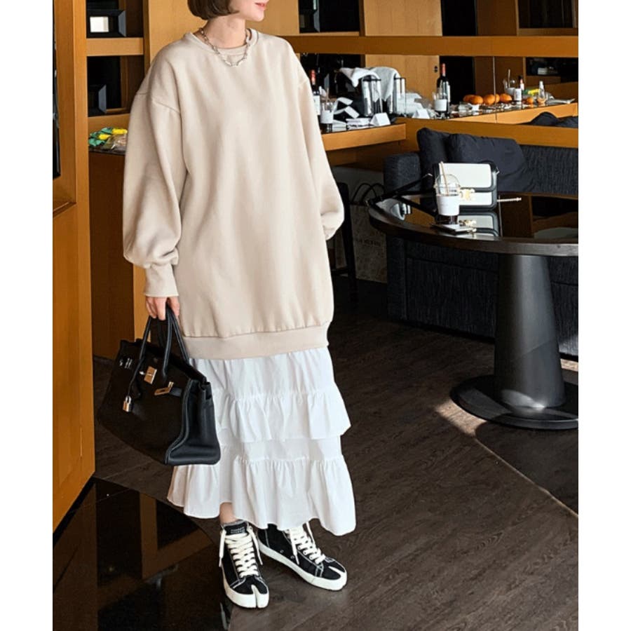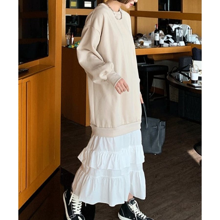 トレーナー切り替えフリルワンピース