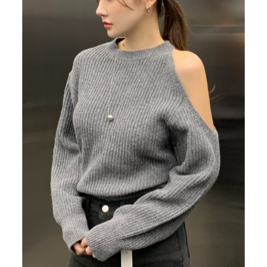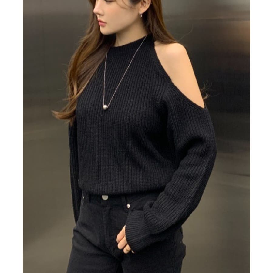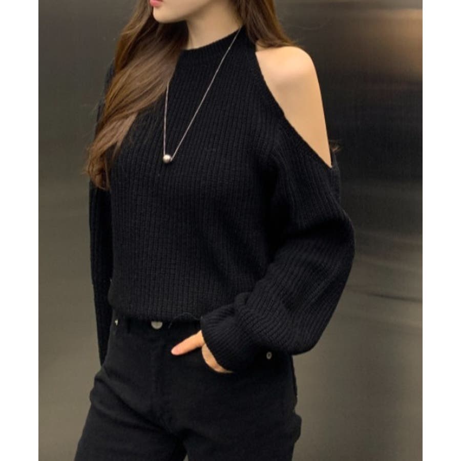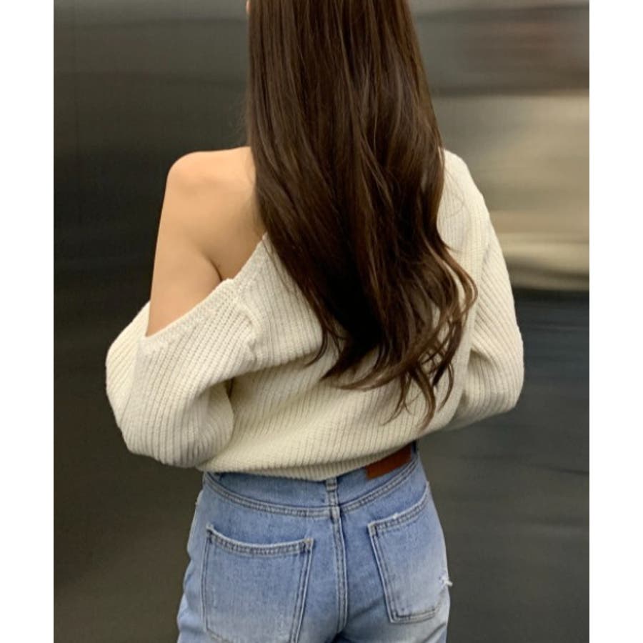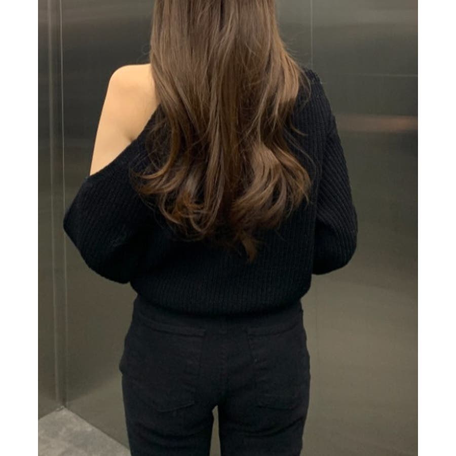 シンプルオフショルダーニットトップス