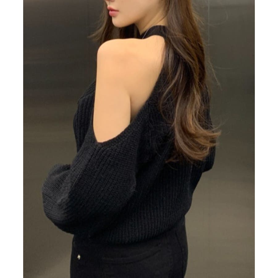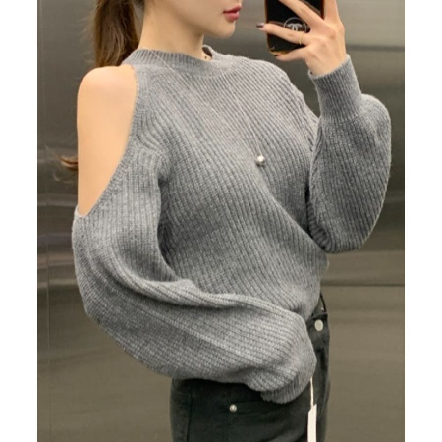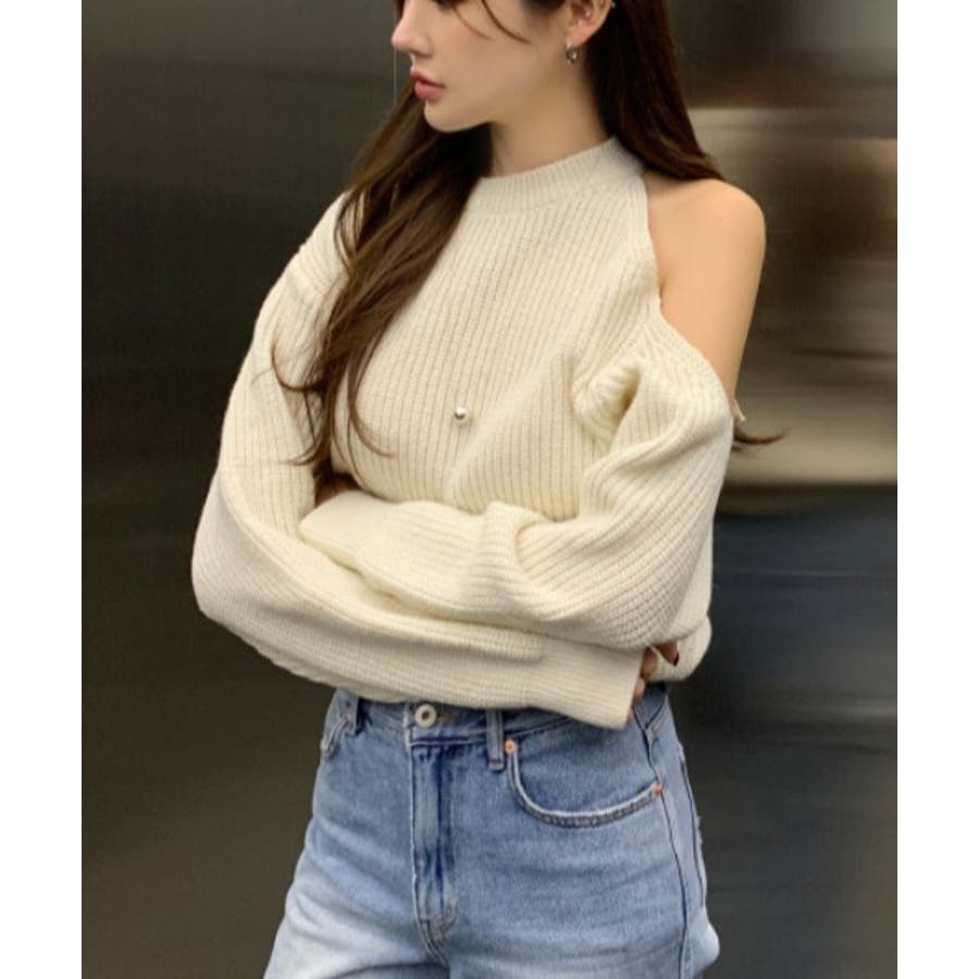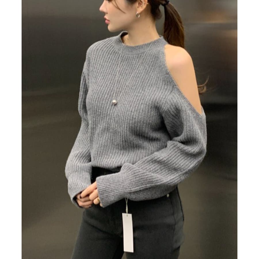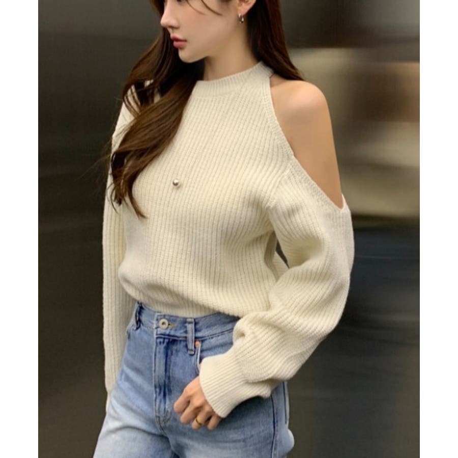 シンプルオフショルダーニットトップス