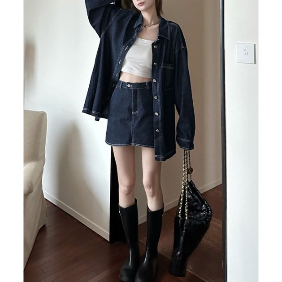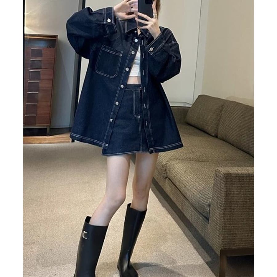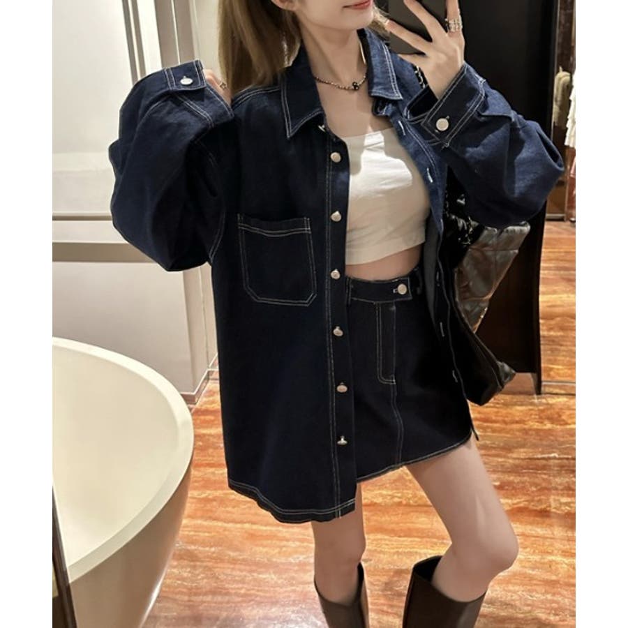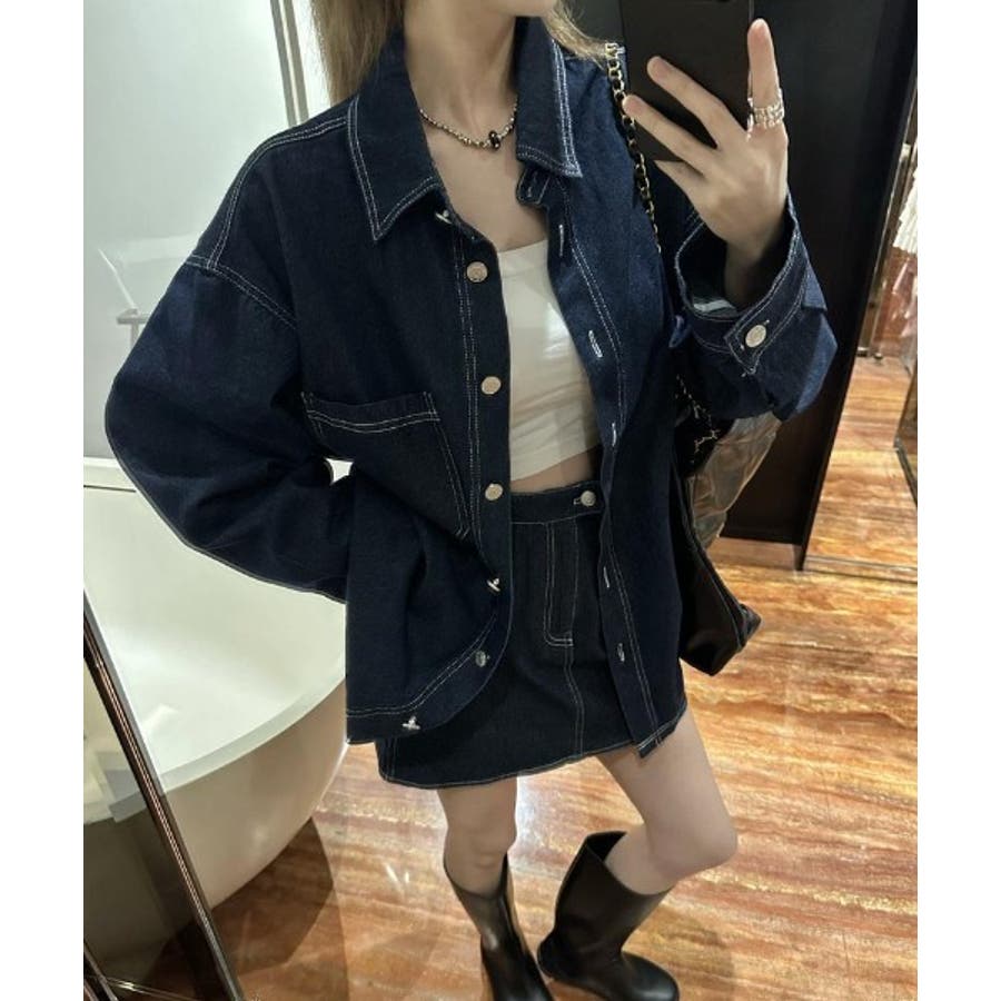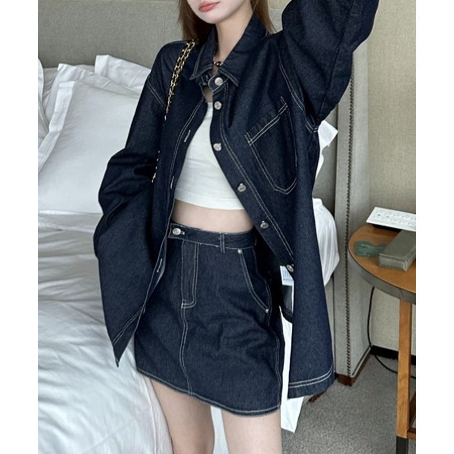 ボタンダウンシングルブレストポケットデニムジャケット+スカート