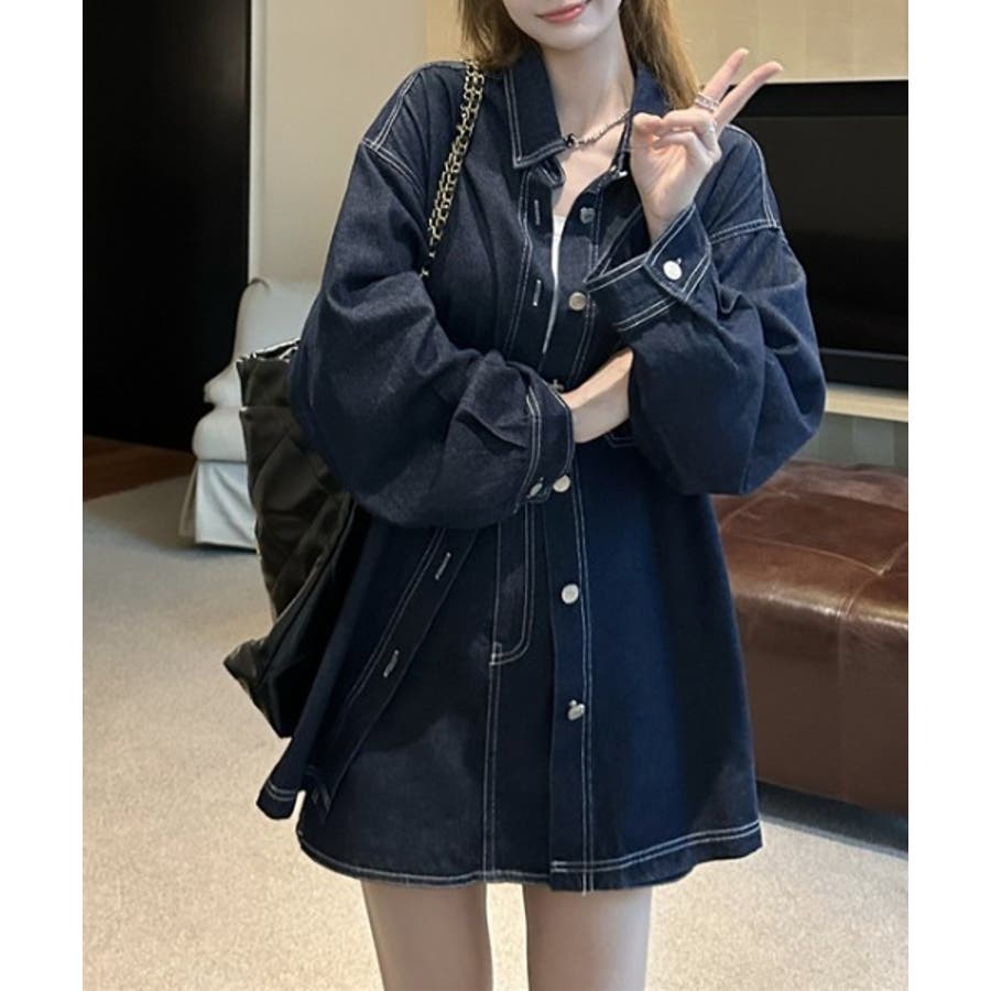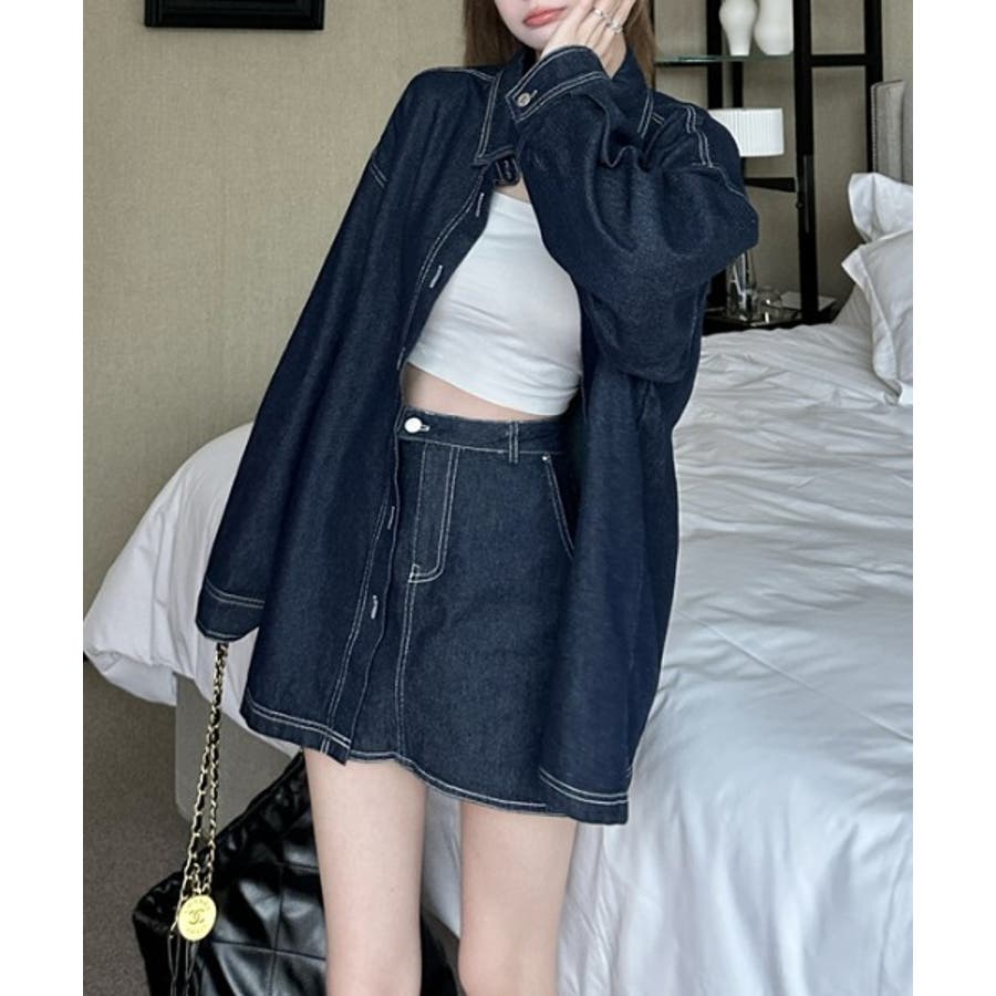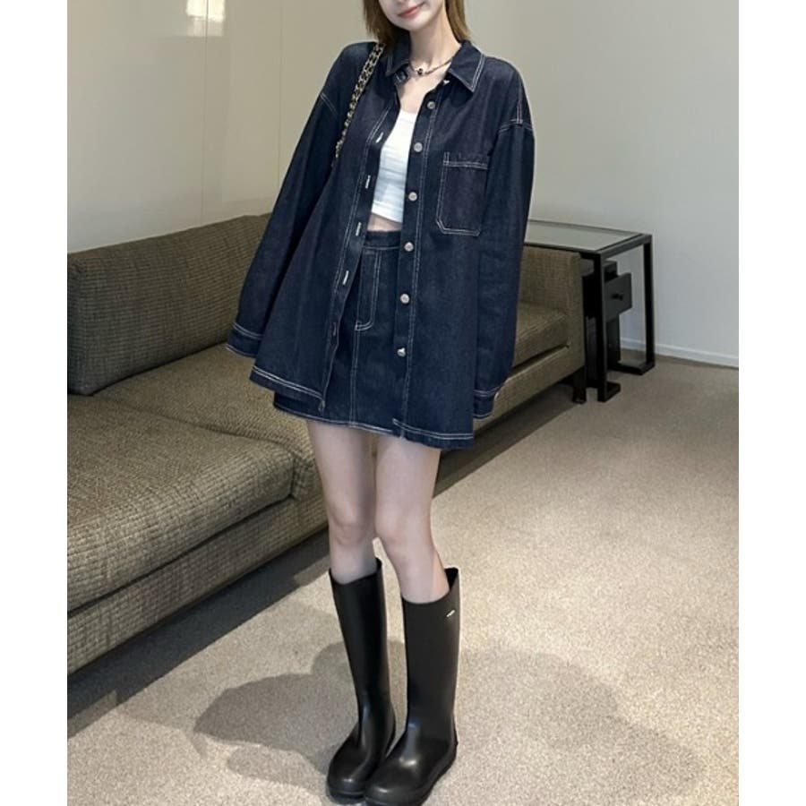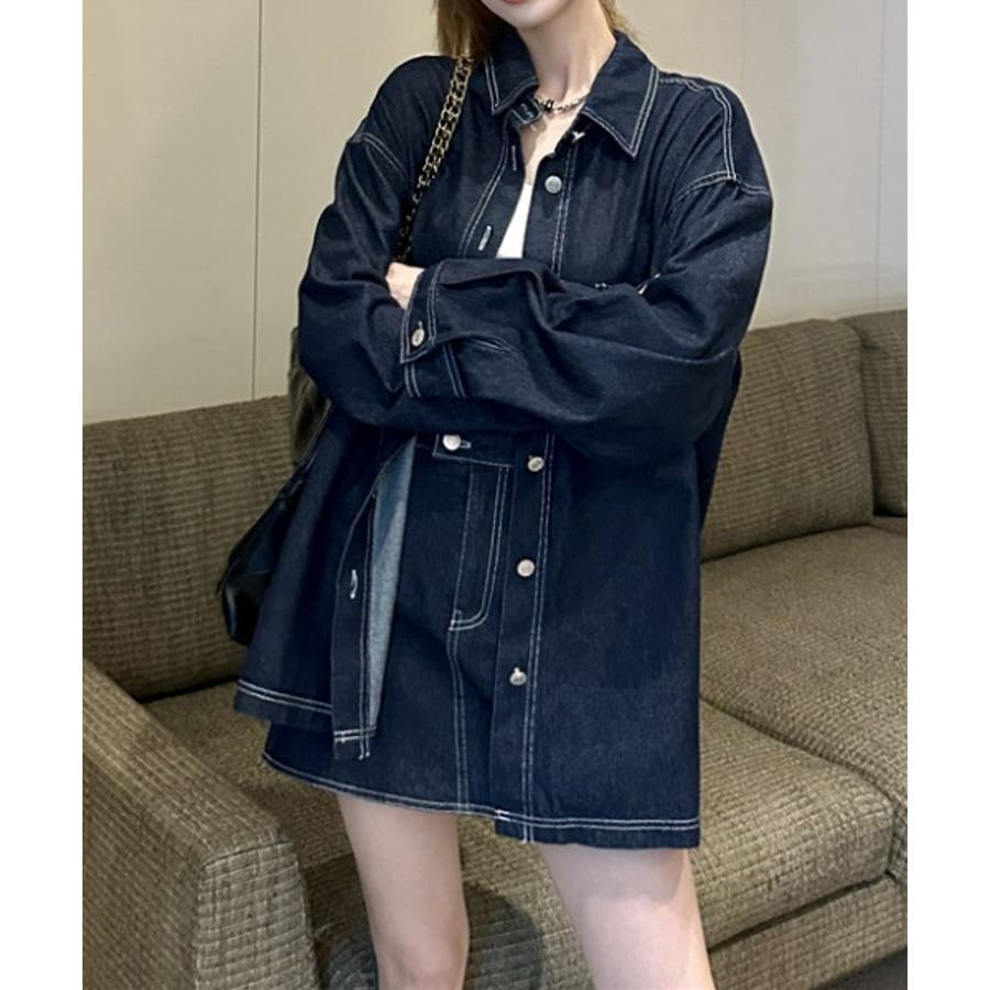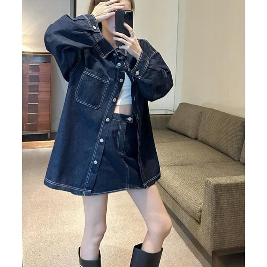 ボタンダウンシングルブレストポケットデニムジャケット+スカート