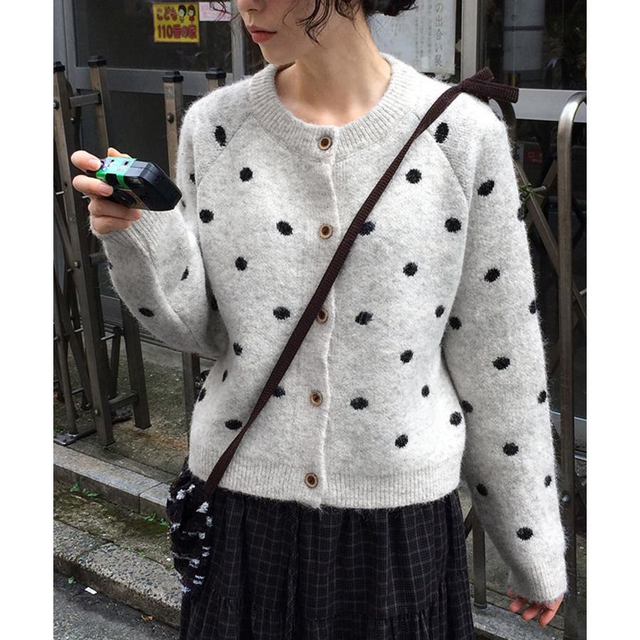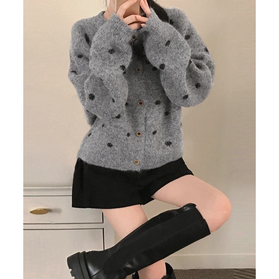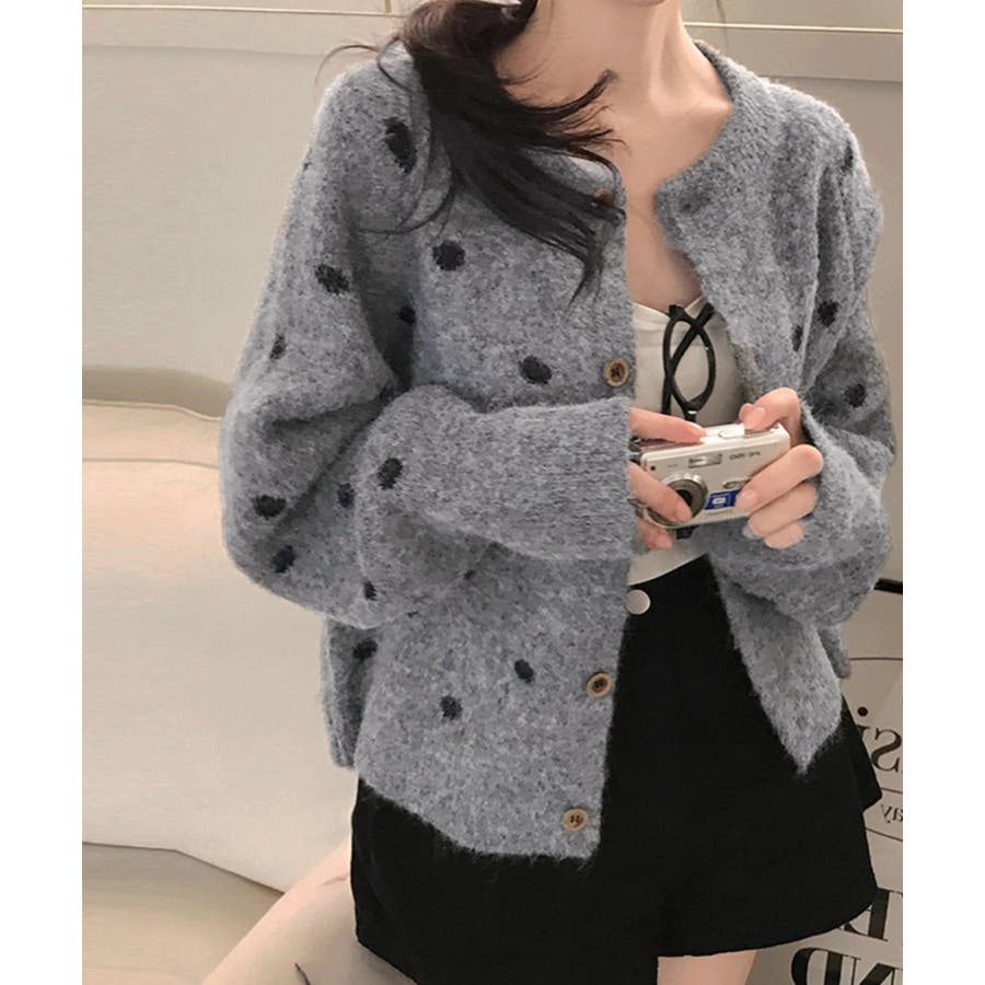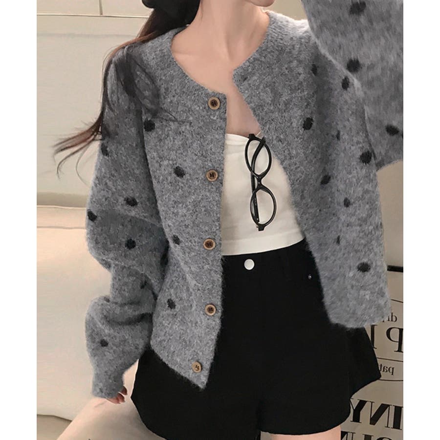クルーネックボタンでニットジャケット