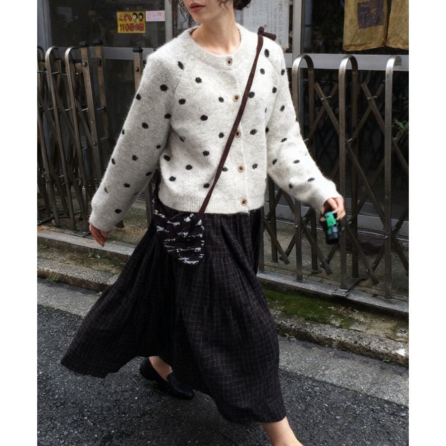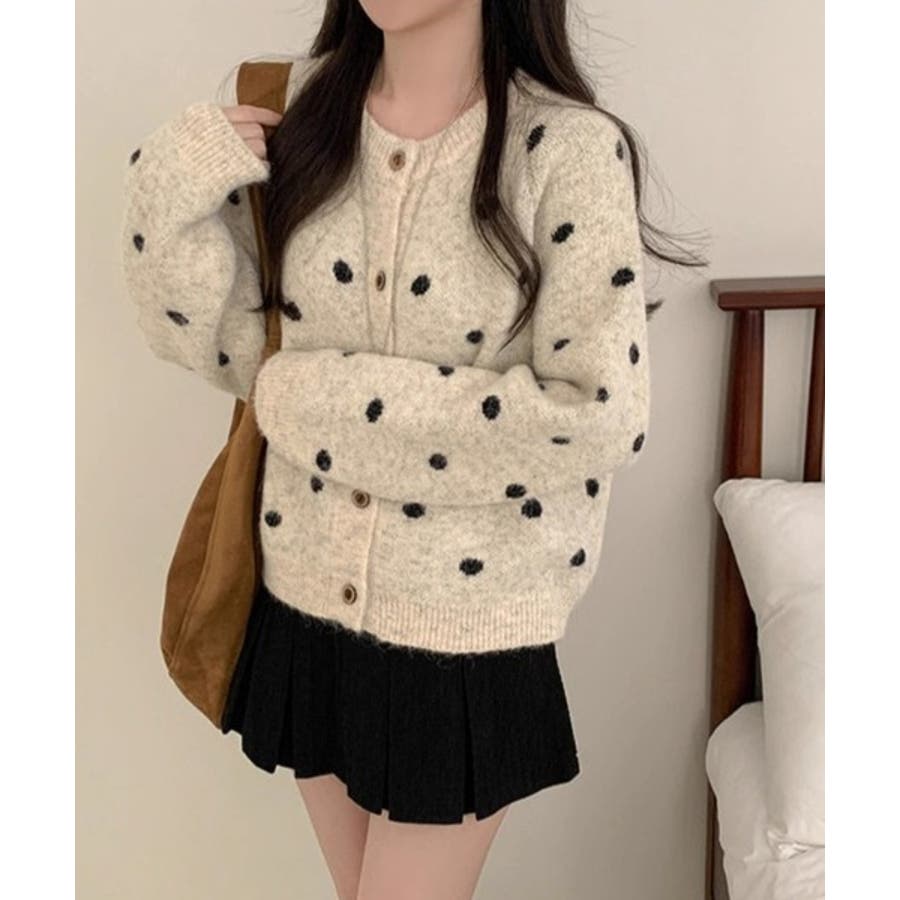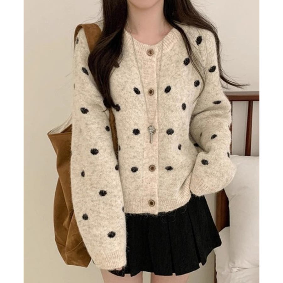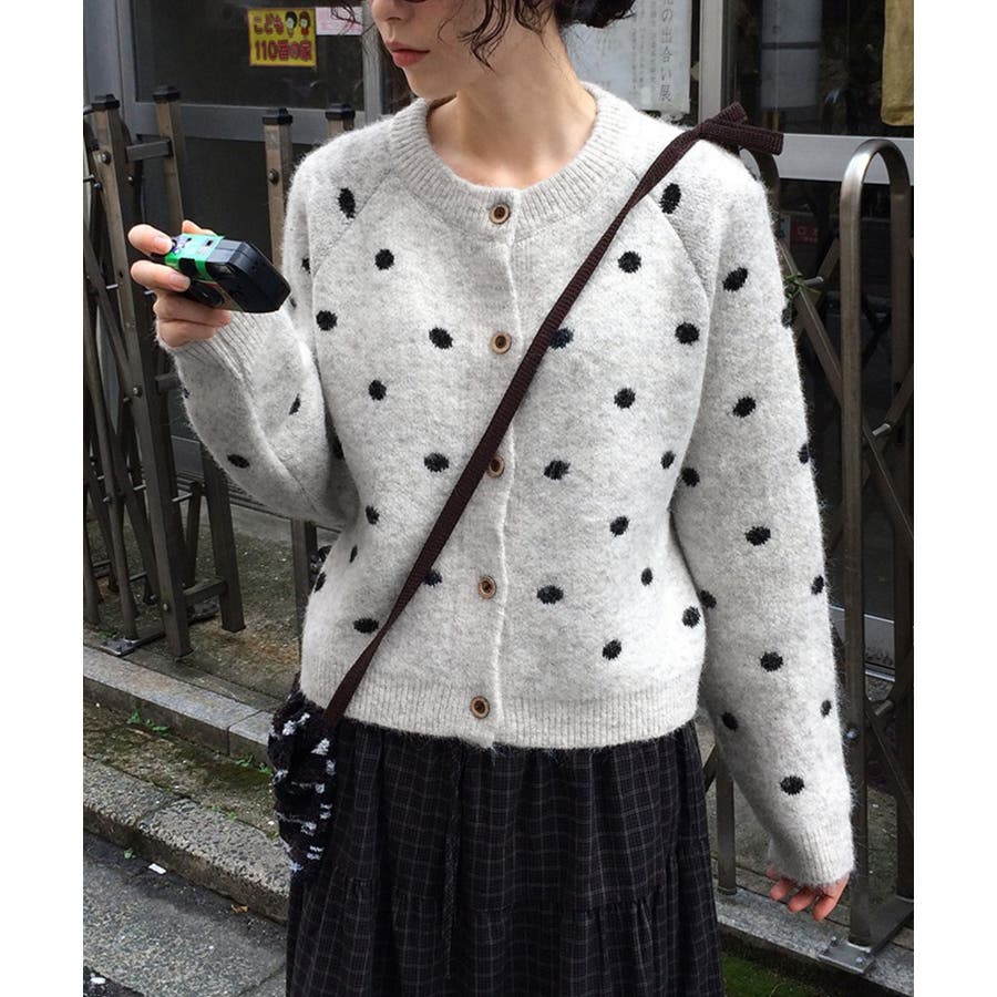 クルーネックボタンでニットジャケット