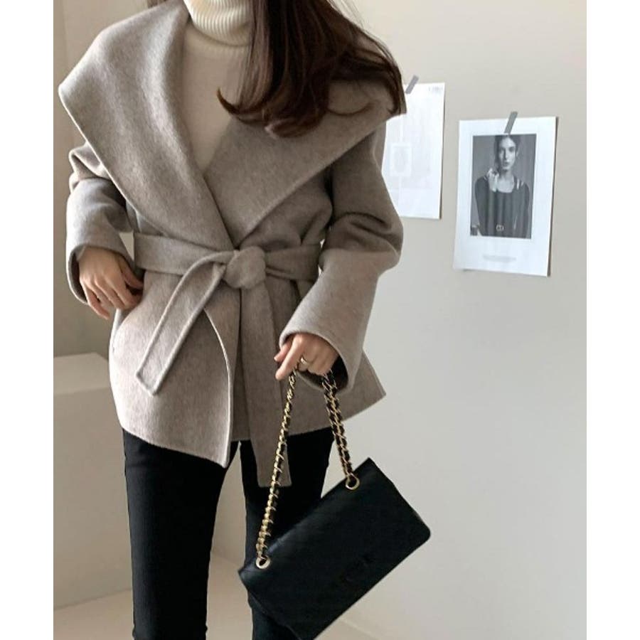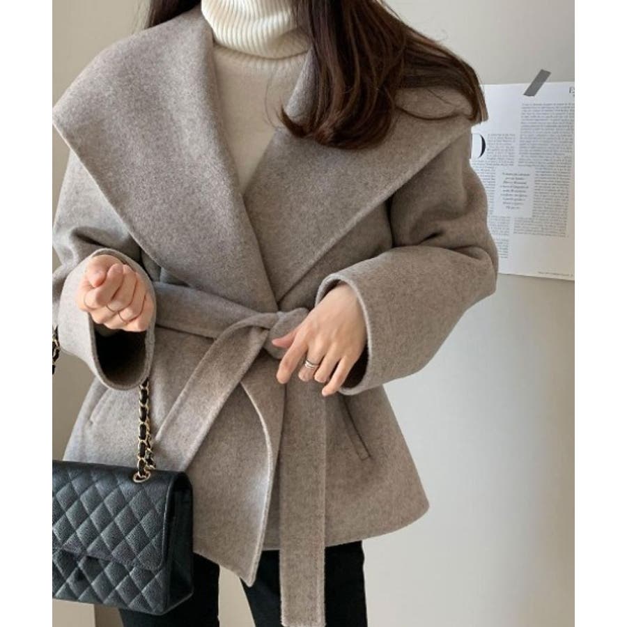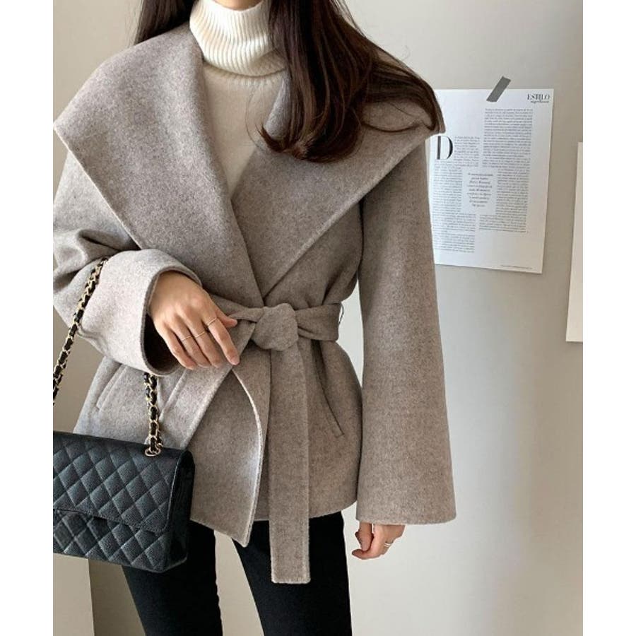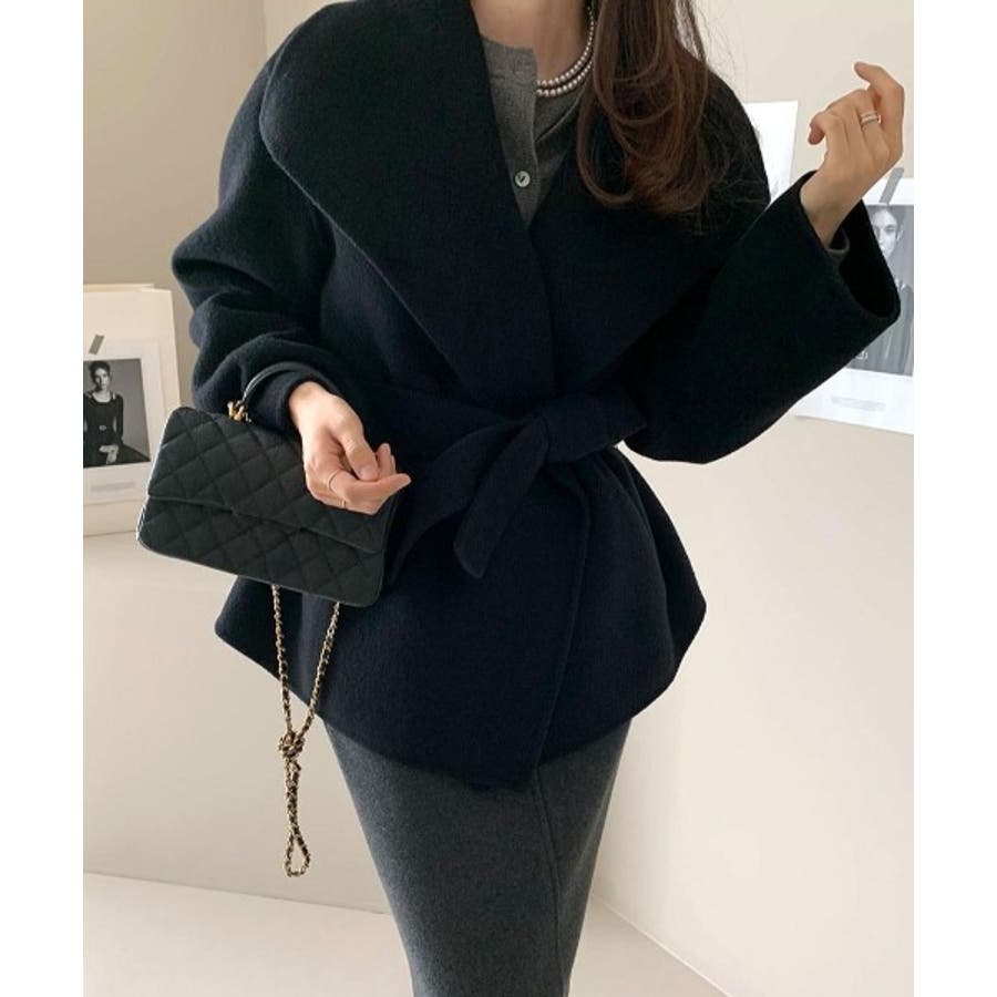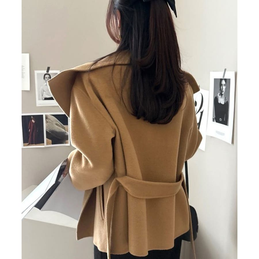 襟付きベルト付きメルトンジャケット