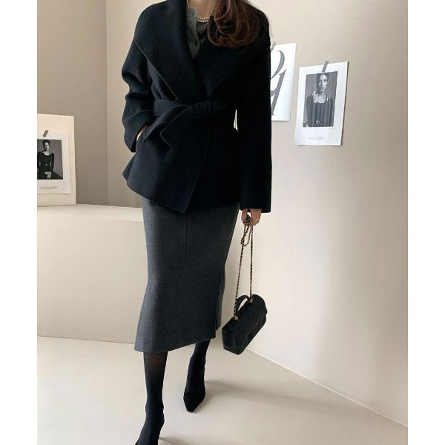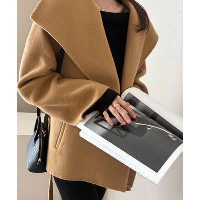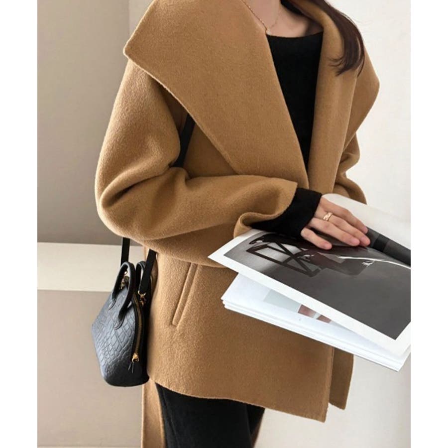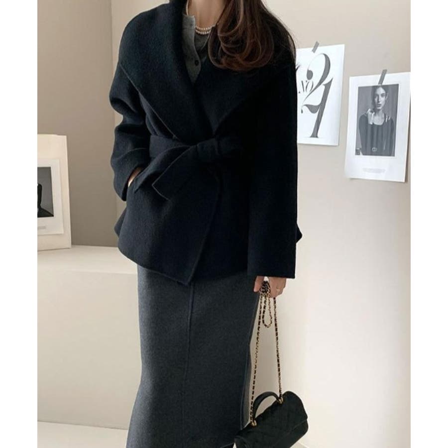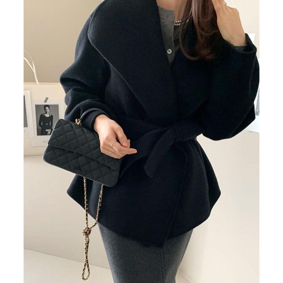 襟付きベルト付きメルトンジャケット