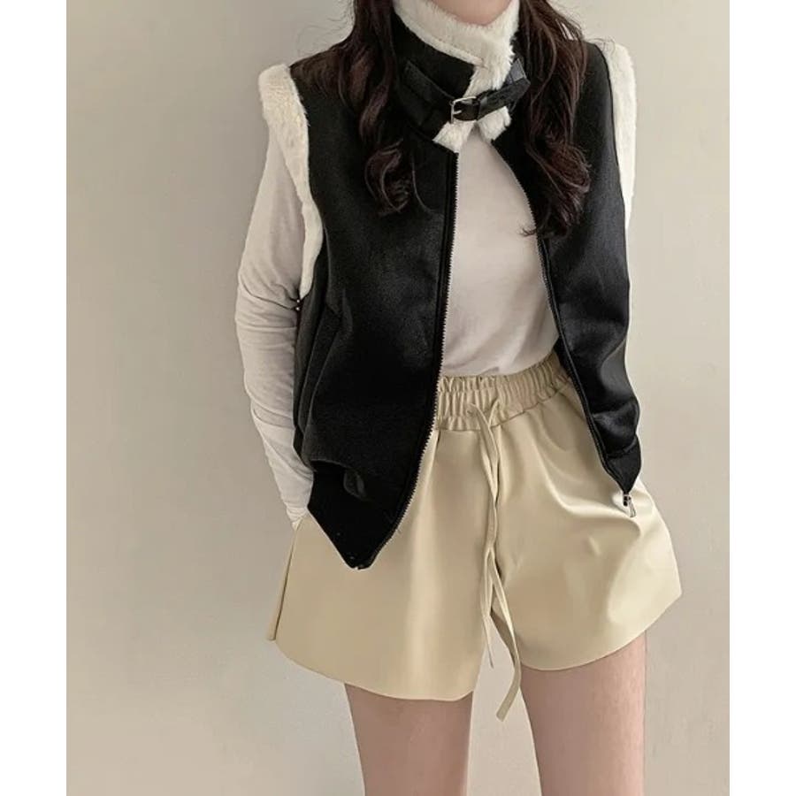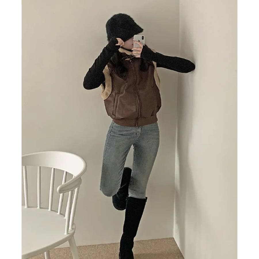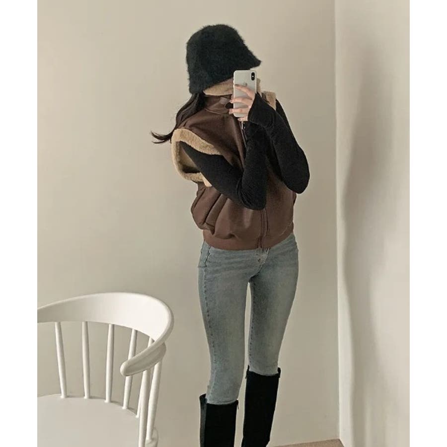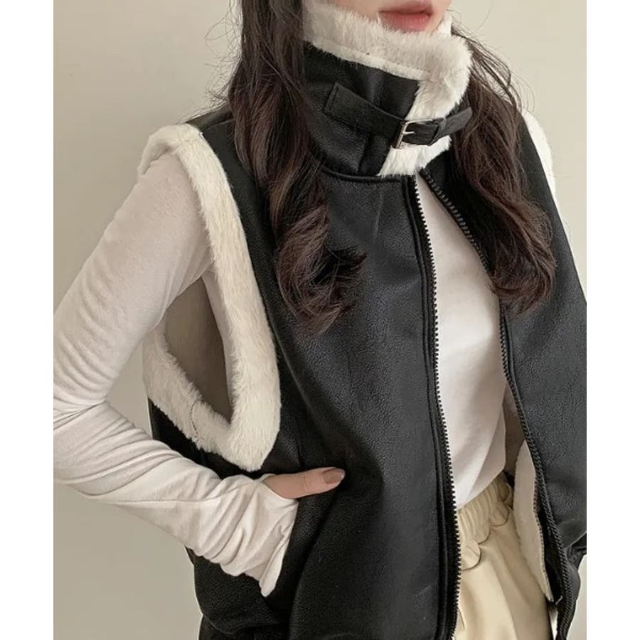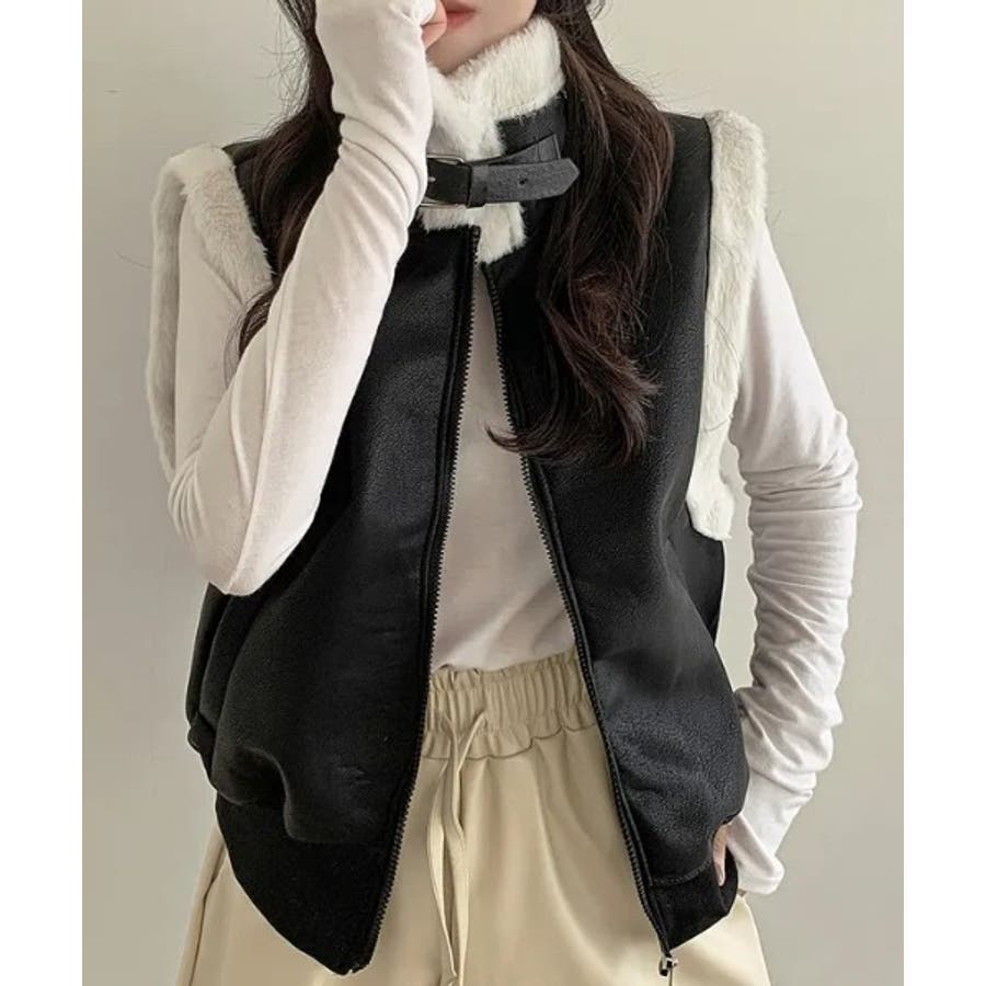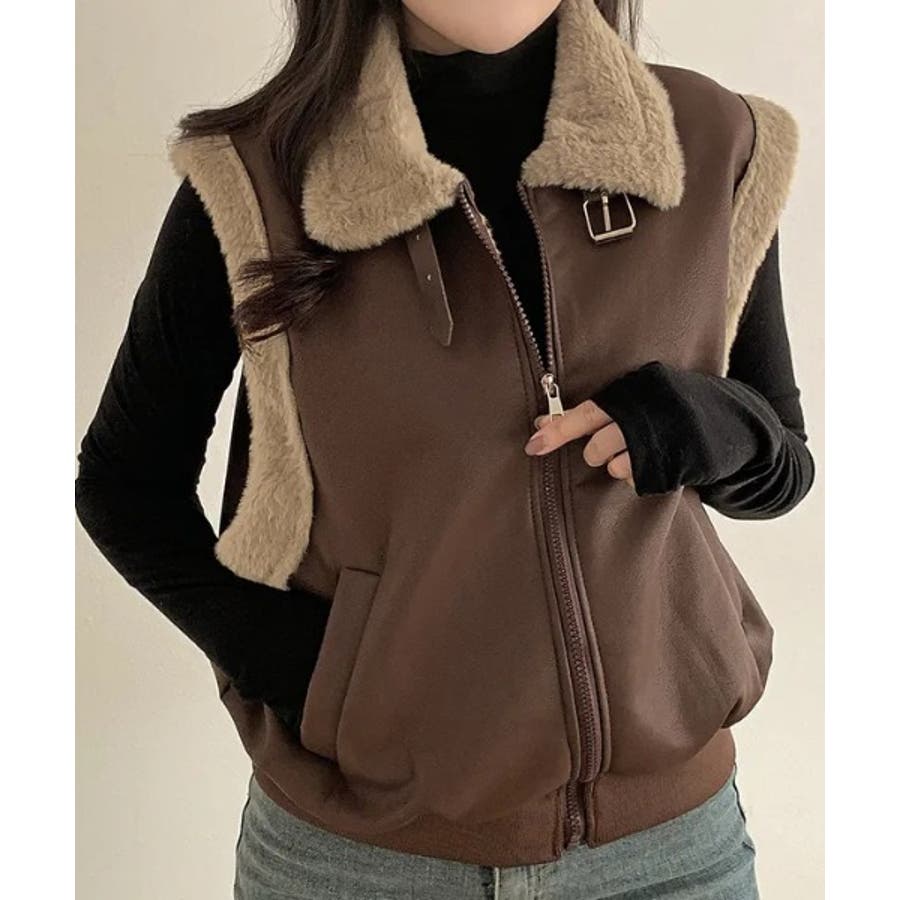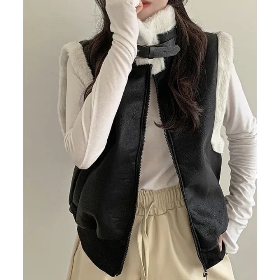 スタンドカラージップス切り替えファーベスト
