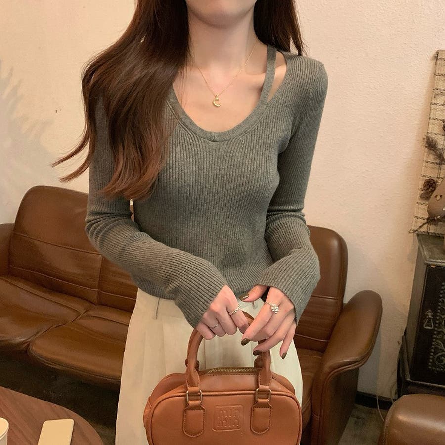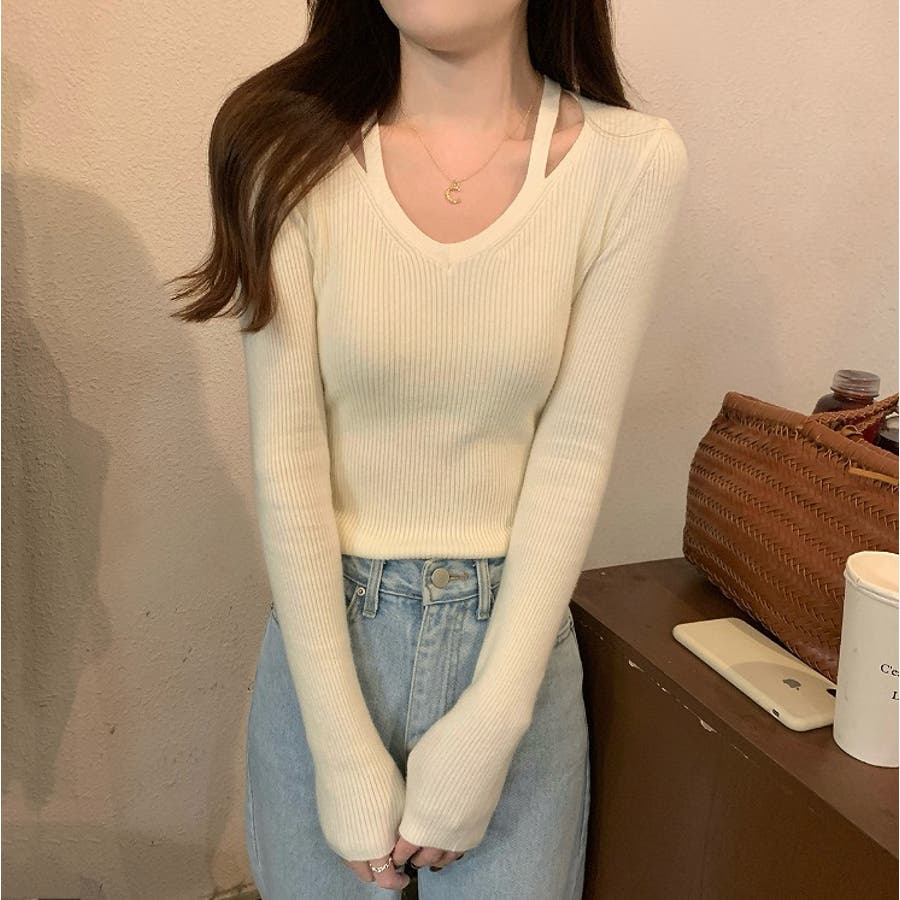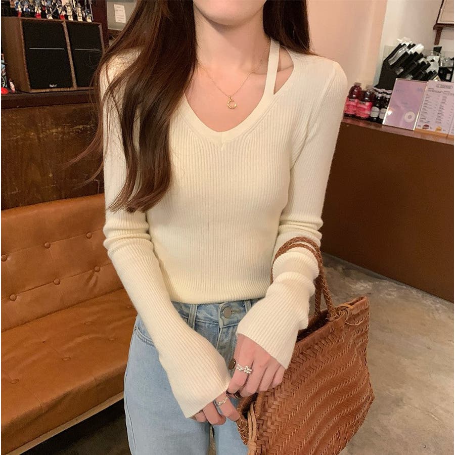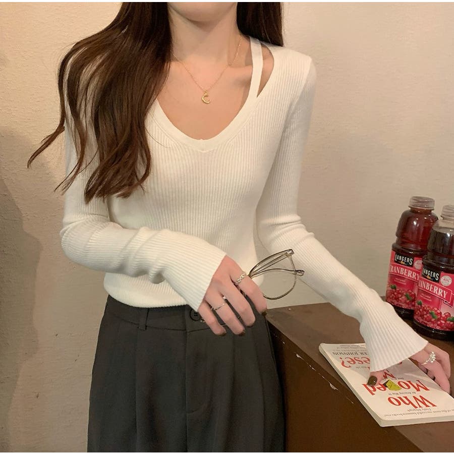 着回ししやすいVネック無地長袖ニットトップス