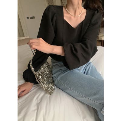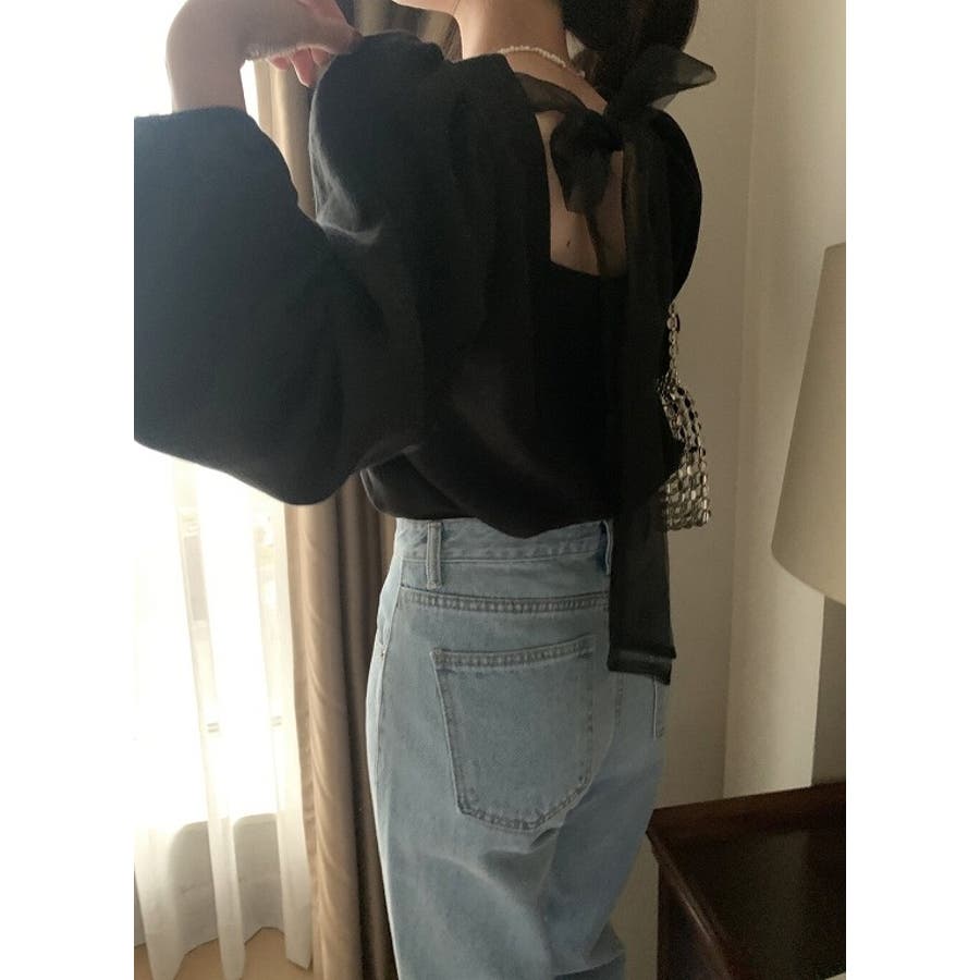 イレギュラーネックチュールリボンタイトップス