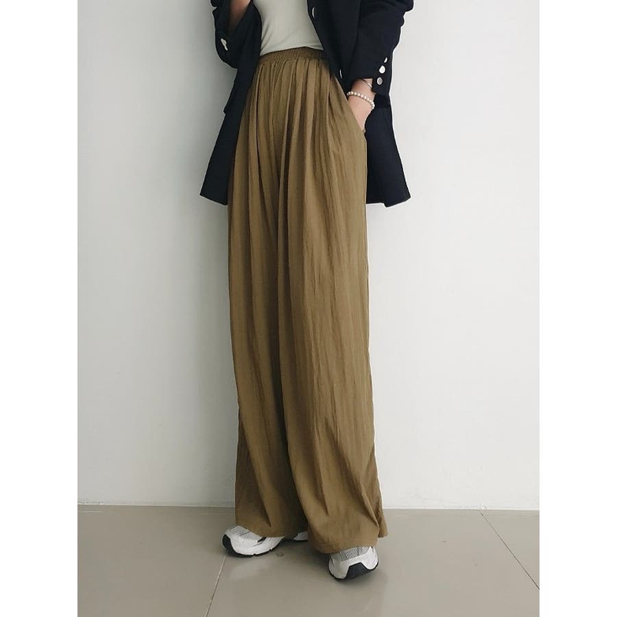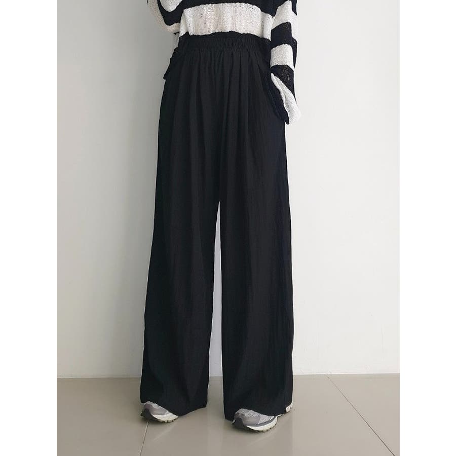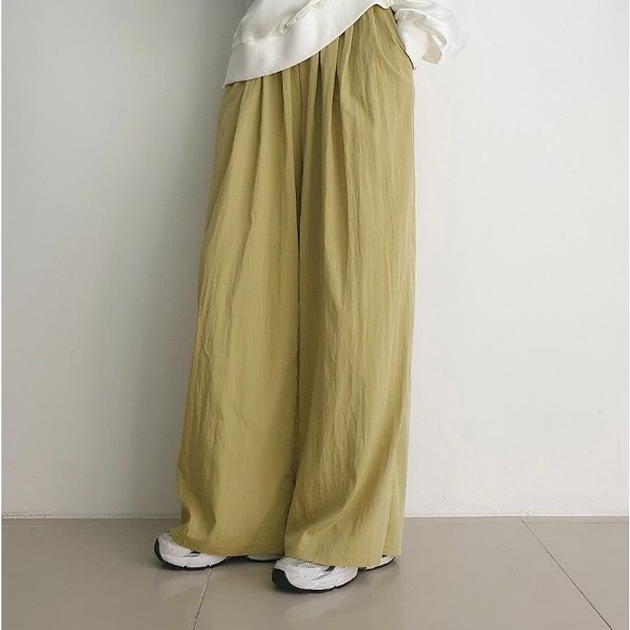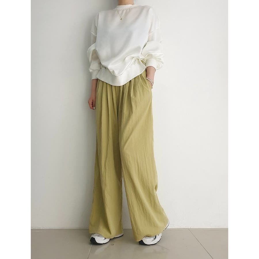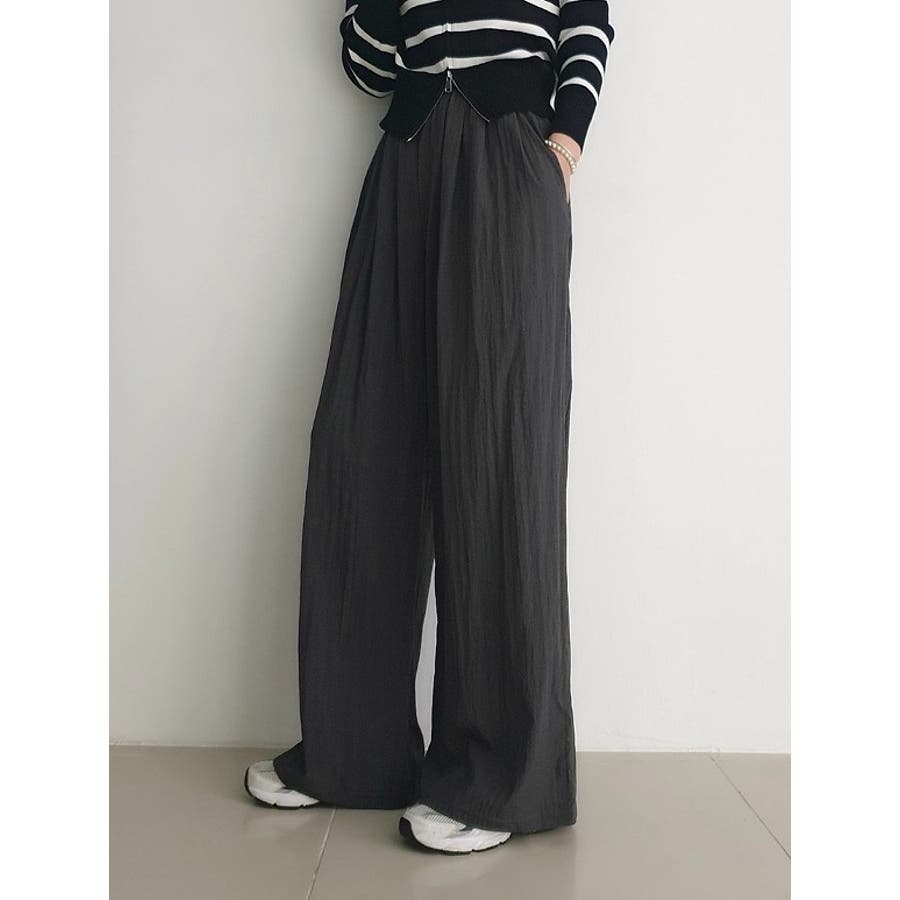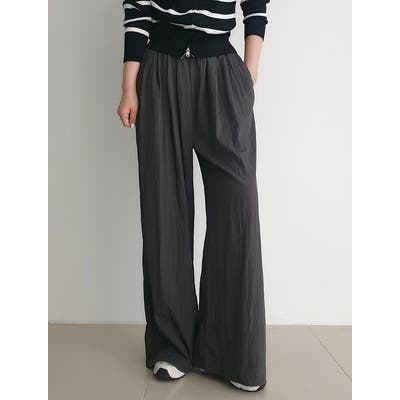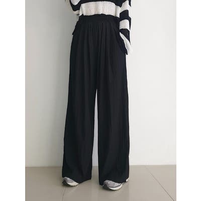 ハイウエストひもがあるポケット付き無地ワイドパンツ
