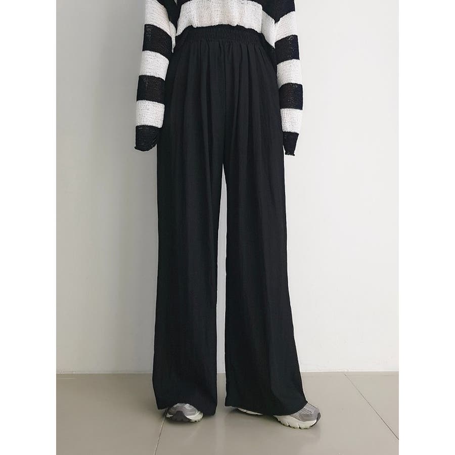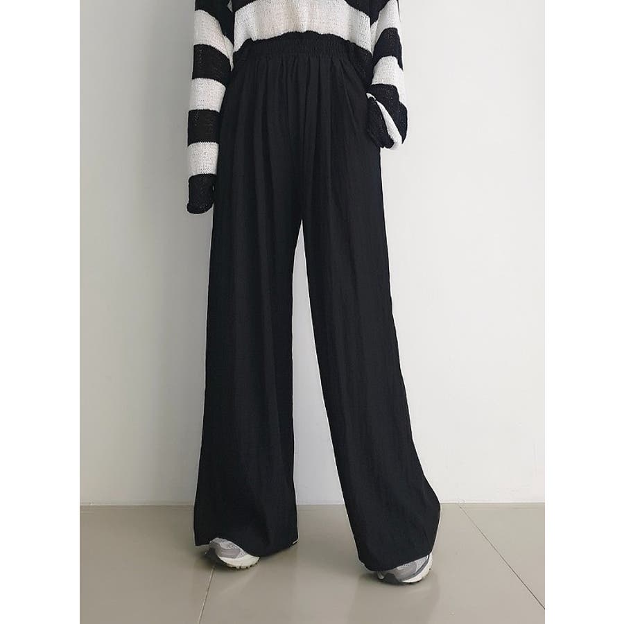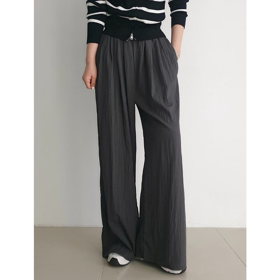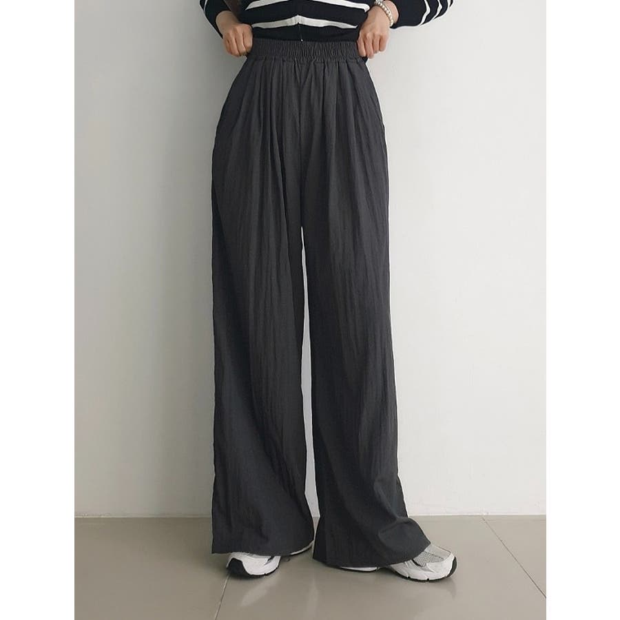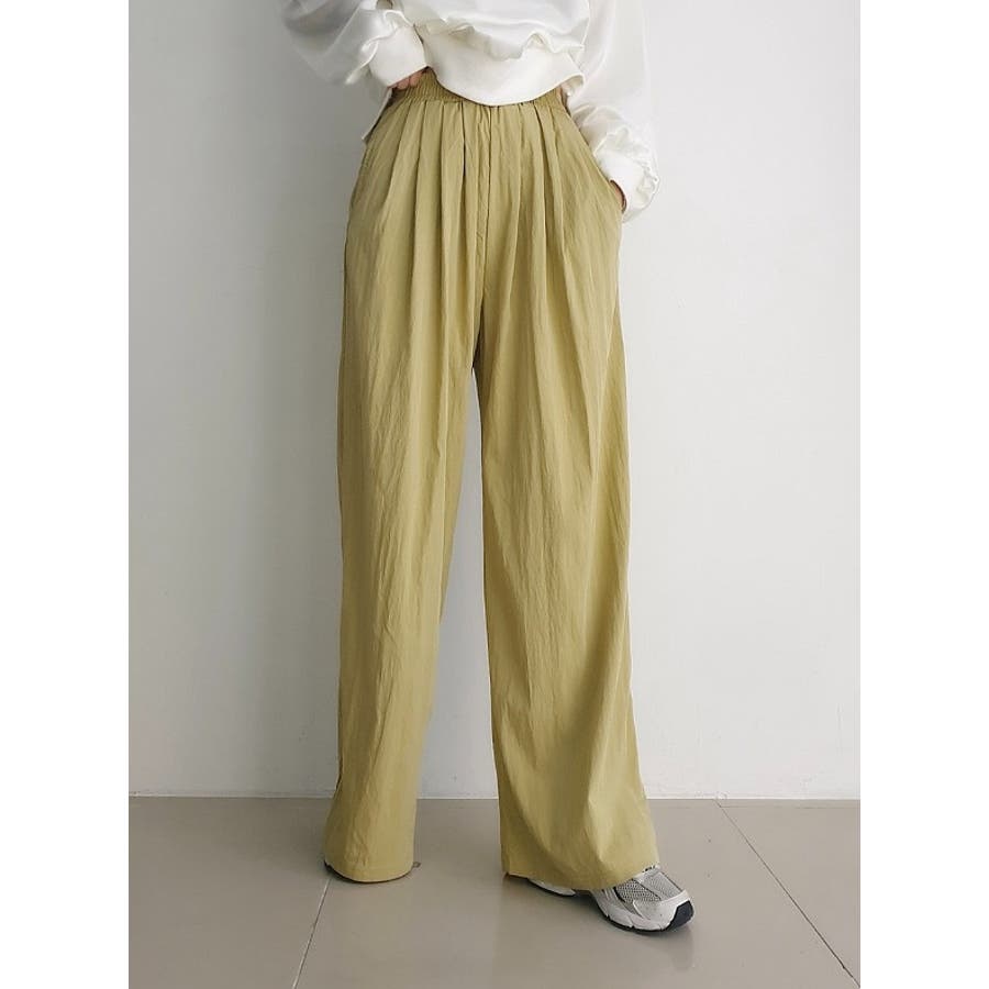 ハイウエストひもがあるポケット付き無地ワイドパンツ