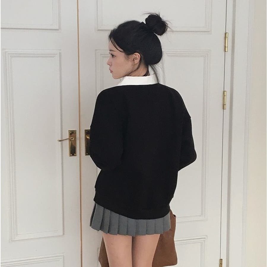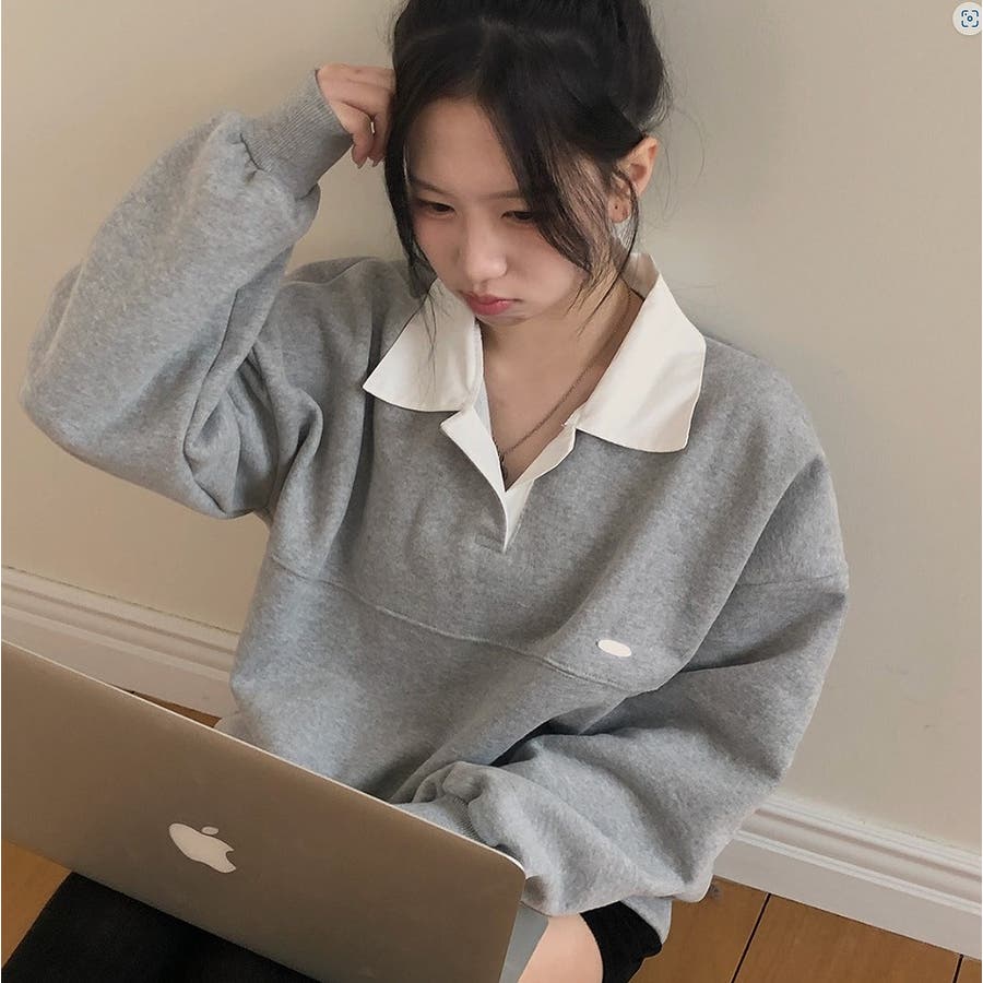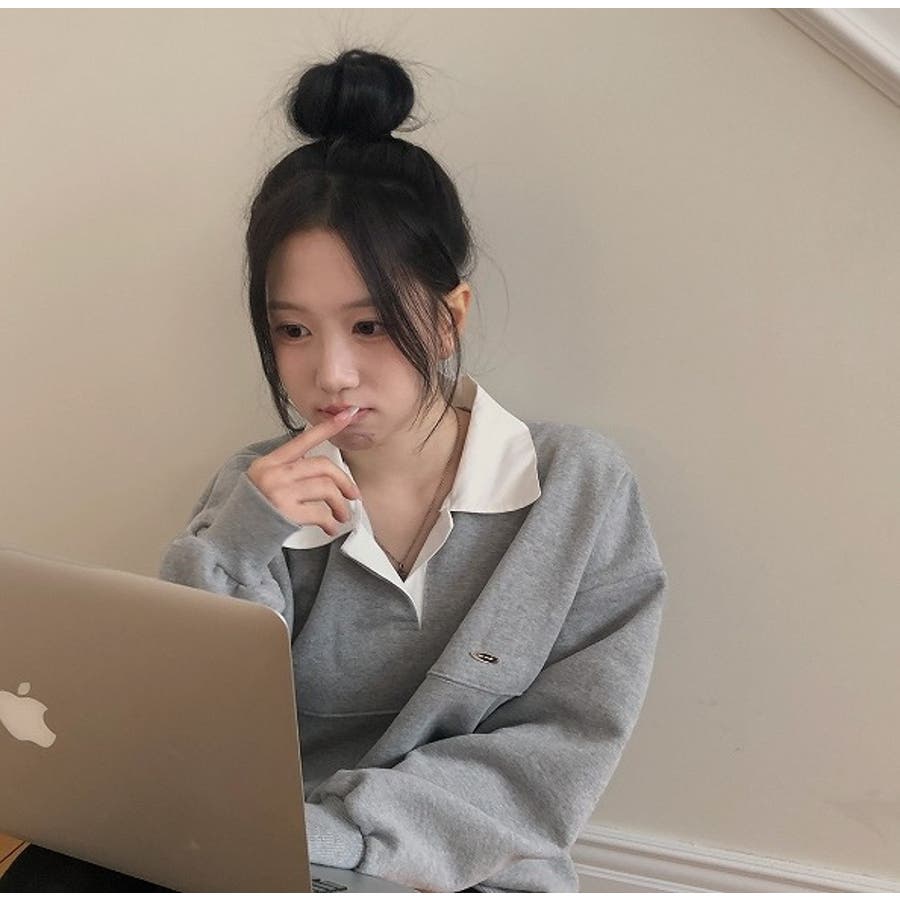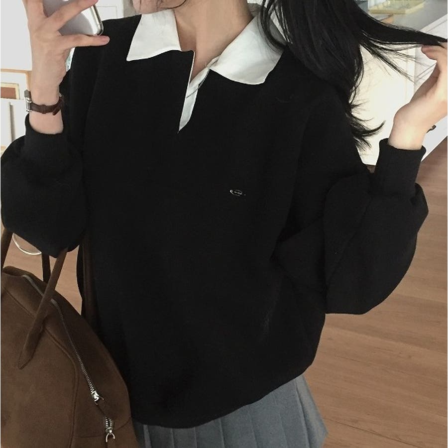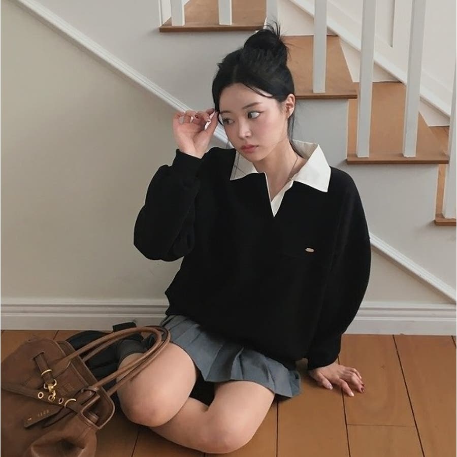 襟付き配色長袖トレーナー