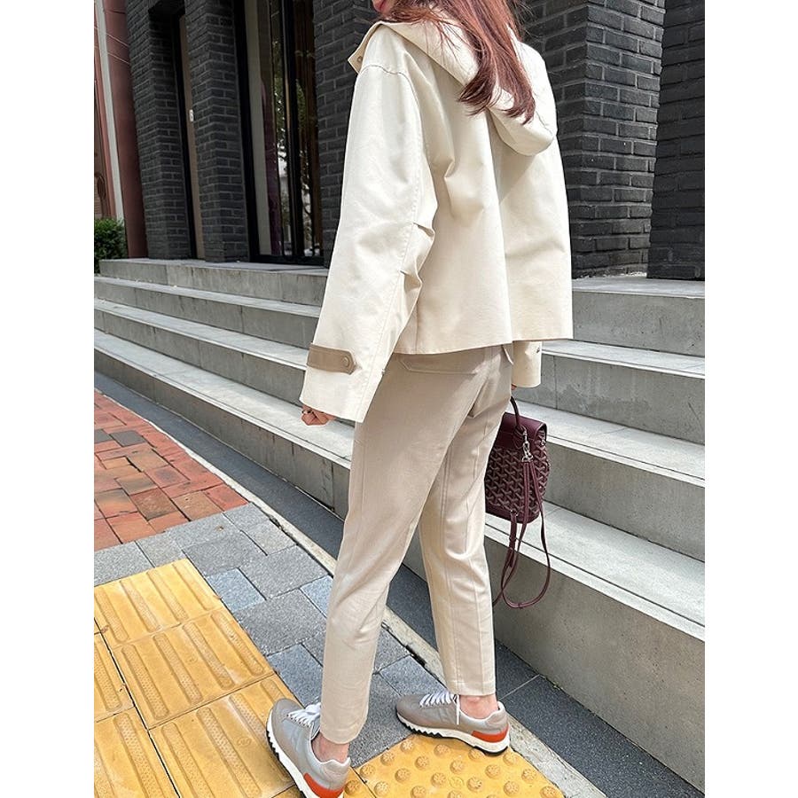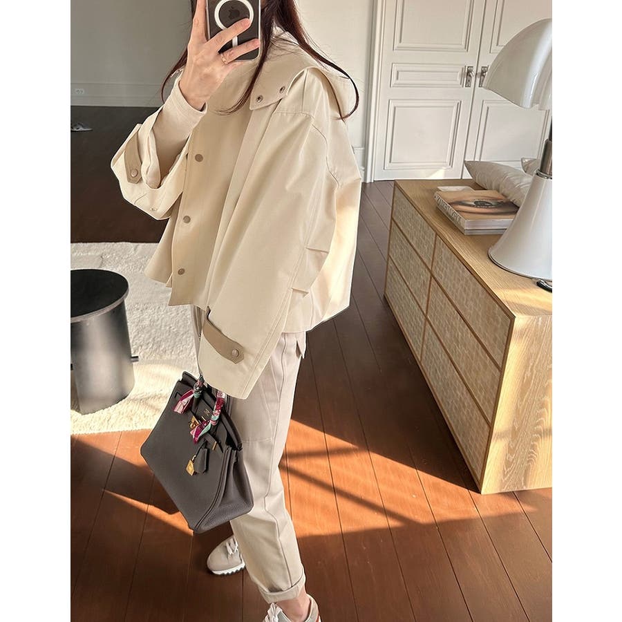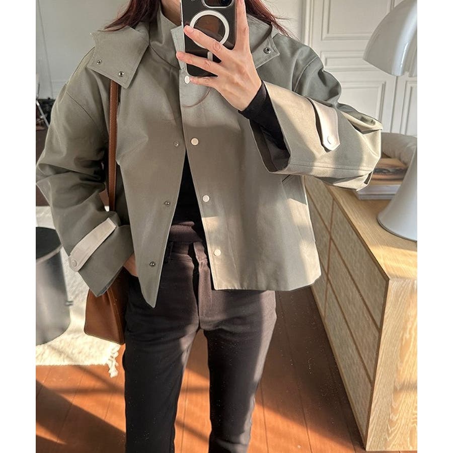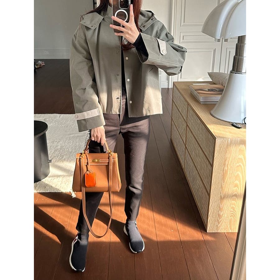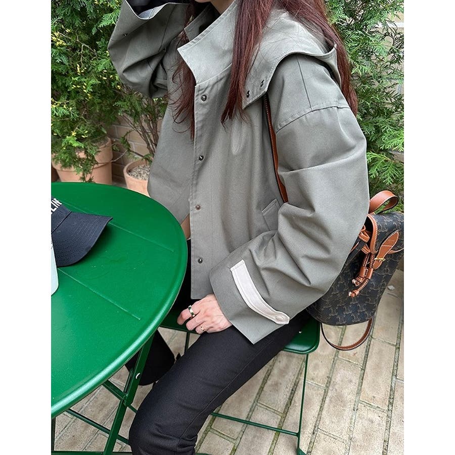 フード付きシングルブレスト無地ショットコート