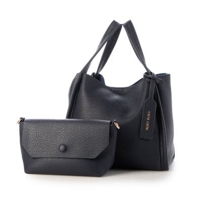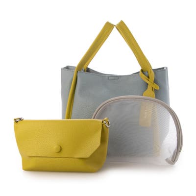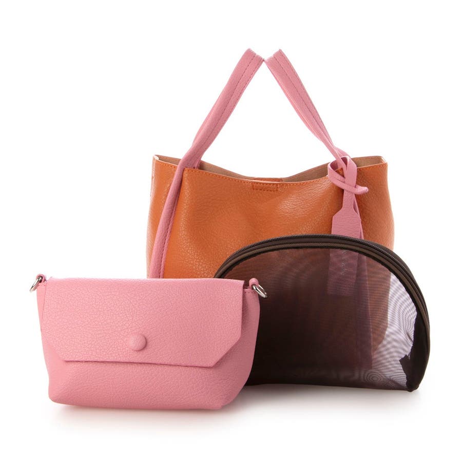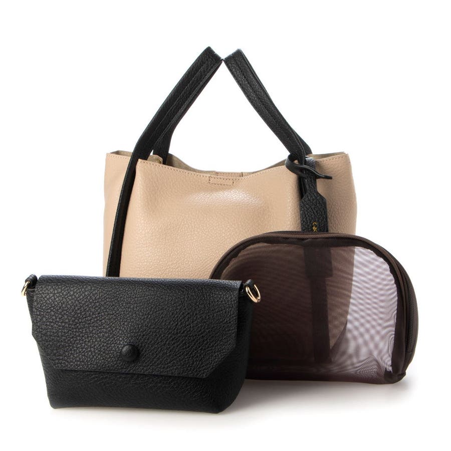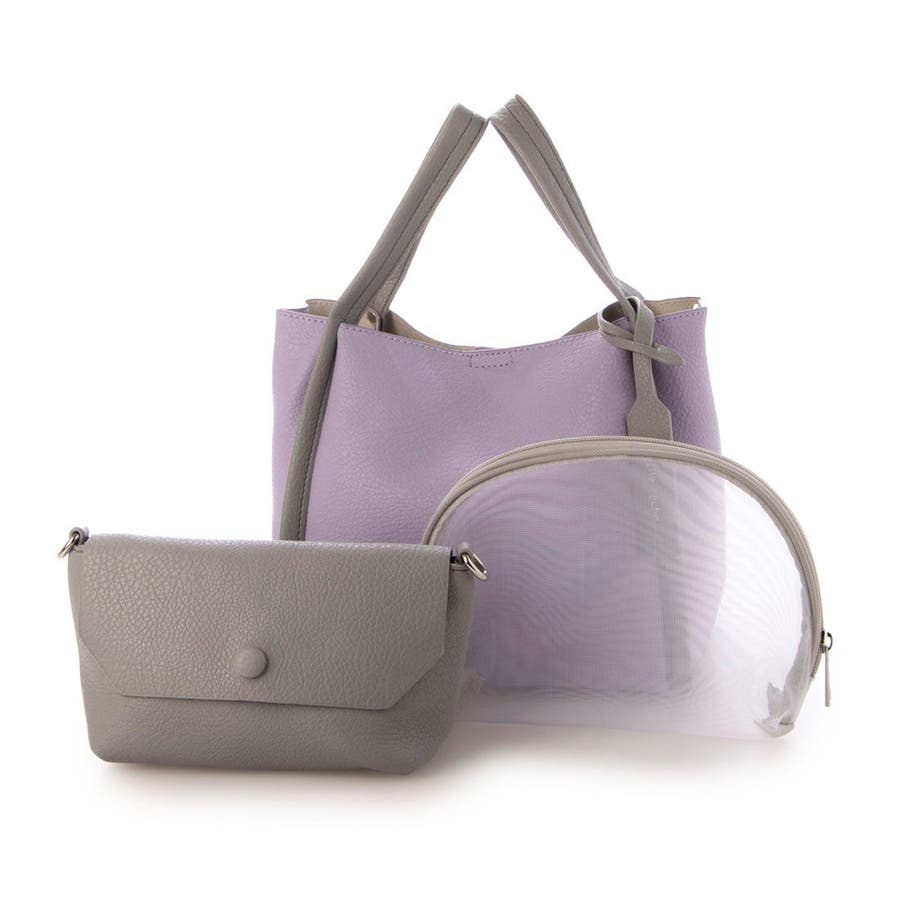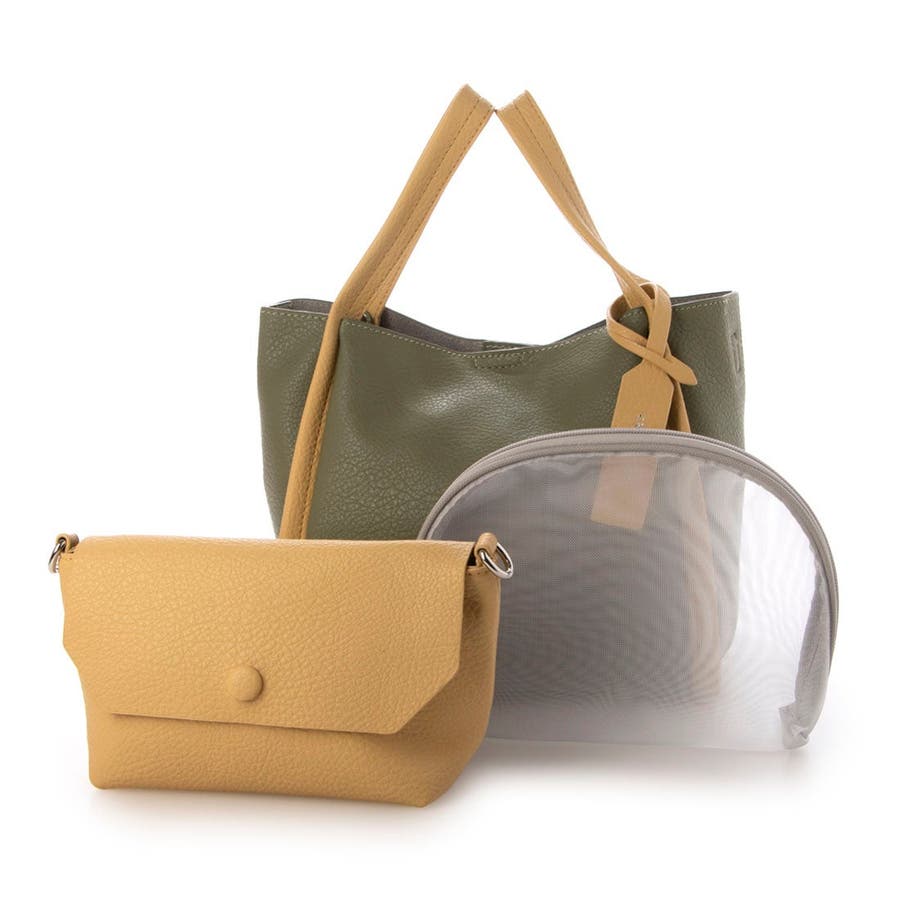 お出かけに便利なサイズのショルダーバッグとメッシュのポーチがセットになったバリュアブルなトートバッグです。