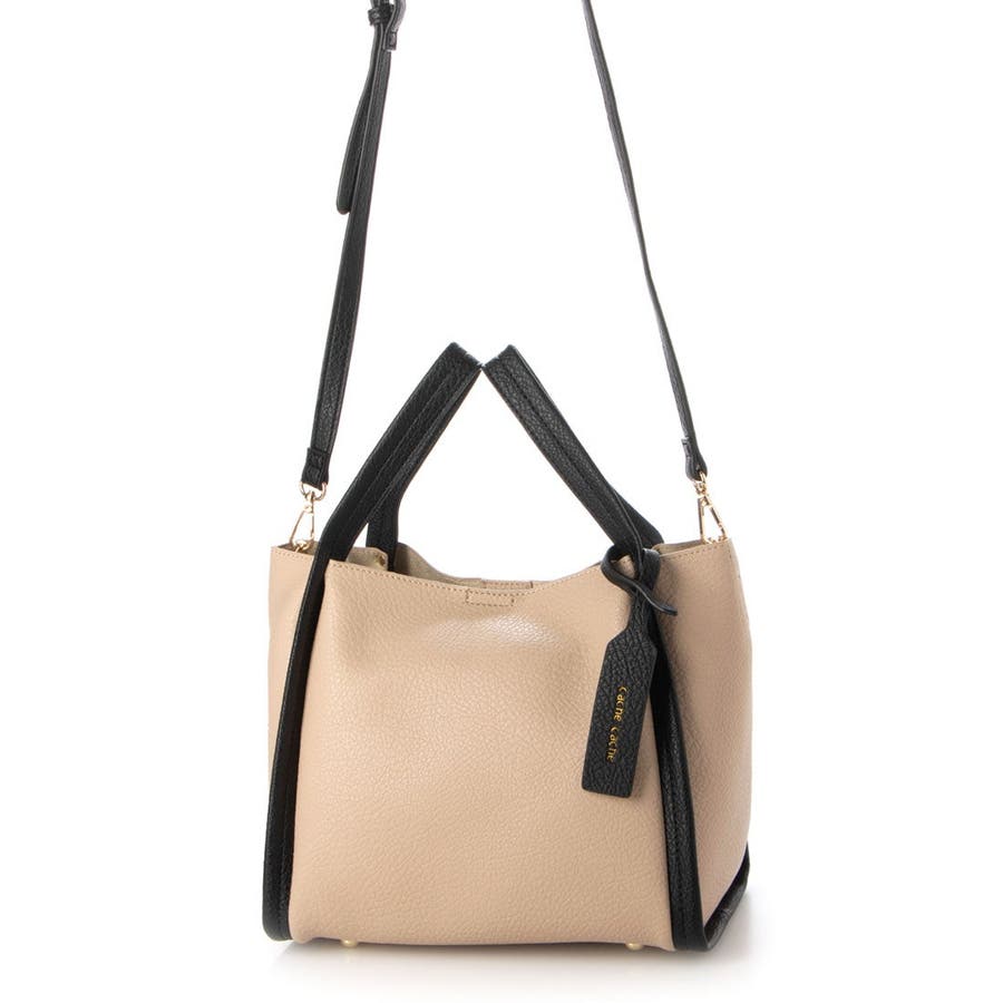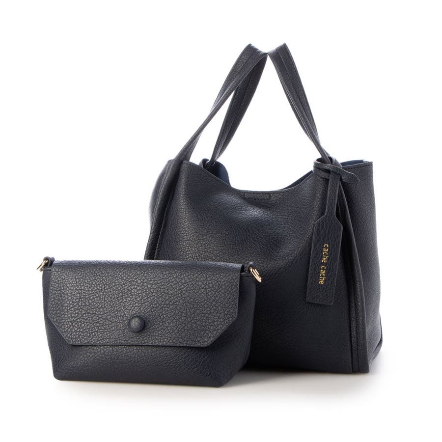 カシュカシュ cache cache / ミニショルダー付きソフトレザー調ミニトートバッグ