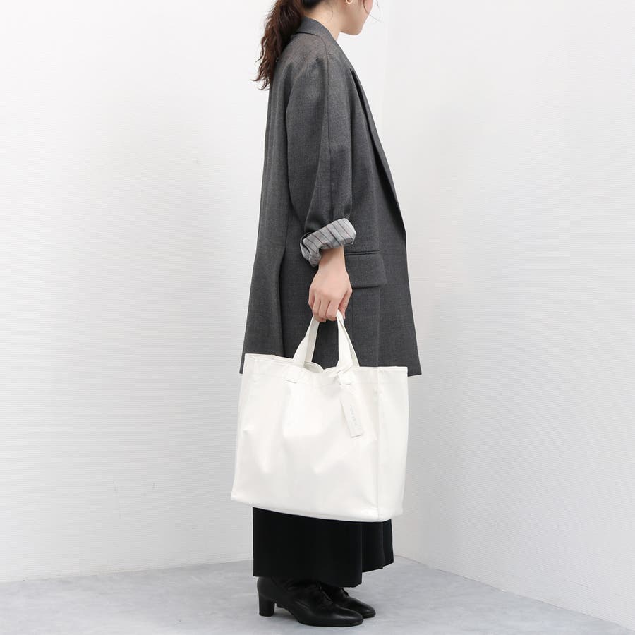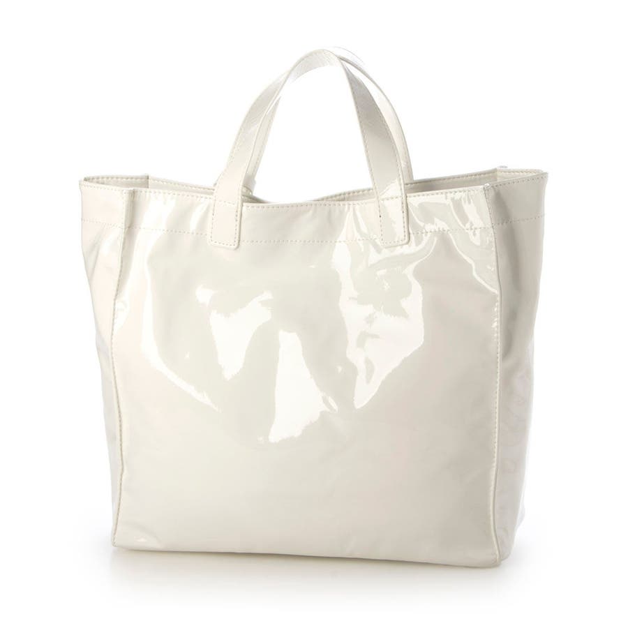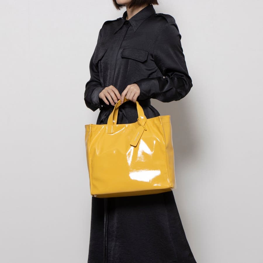 衣料用の高級感のあるソフトエナメルを使ったスクエアトートバッグ。