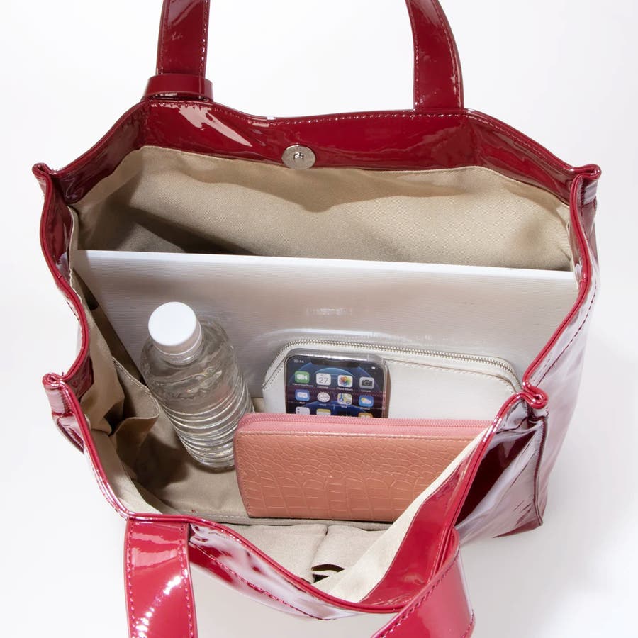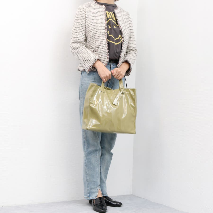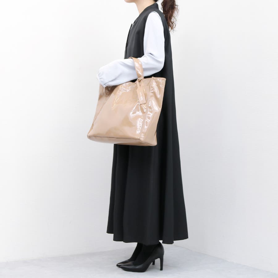 カシュカシュ cachecache / ソフトエナメルスクエア手提げトート