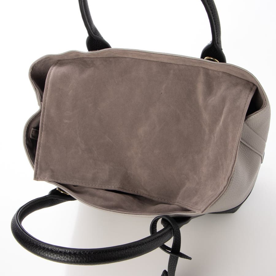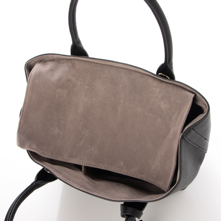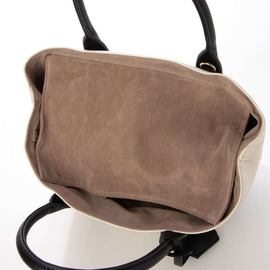 口元は目隠しフラップで中が見えないように配慮し、斜め掛けもできるショルダー付きの使いやすいトートバッグです。
