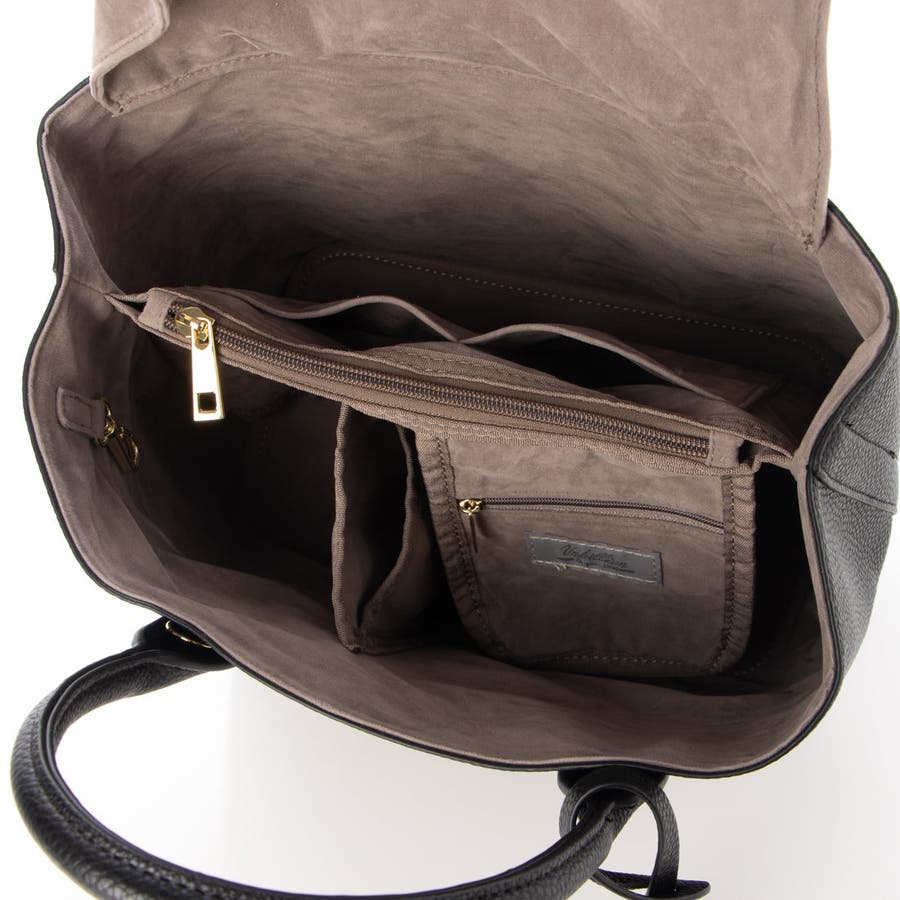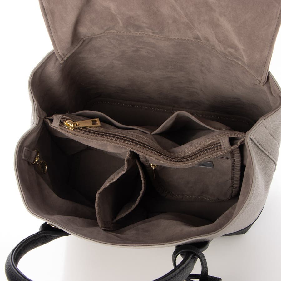 内側はパーテーションのように仕切られていて物が迷子にならないデザイン。
